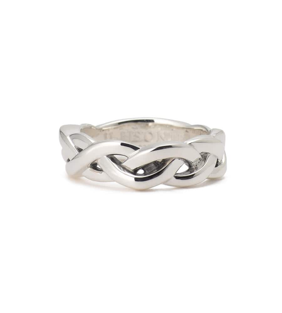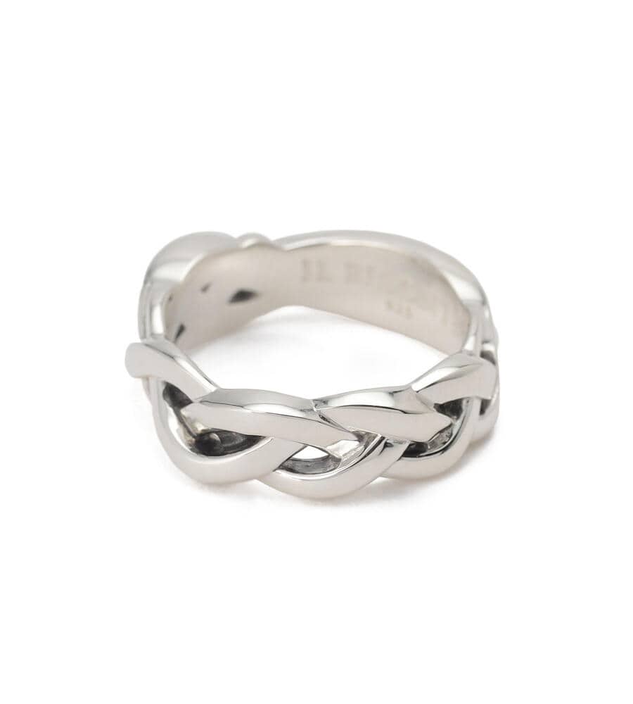 モダンで美しいシルバー925のリング。革を編み込んだような凹凸は、創業当時から作られているメッシュレザーのブレスレットやキーホルダーから着想を得たもの。職人へのリスペクトを込め、編み込みの技術をシルバーで表現した逸品です。