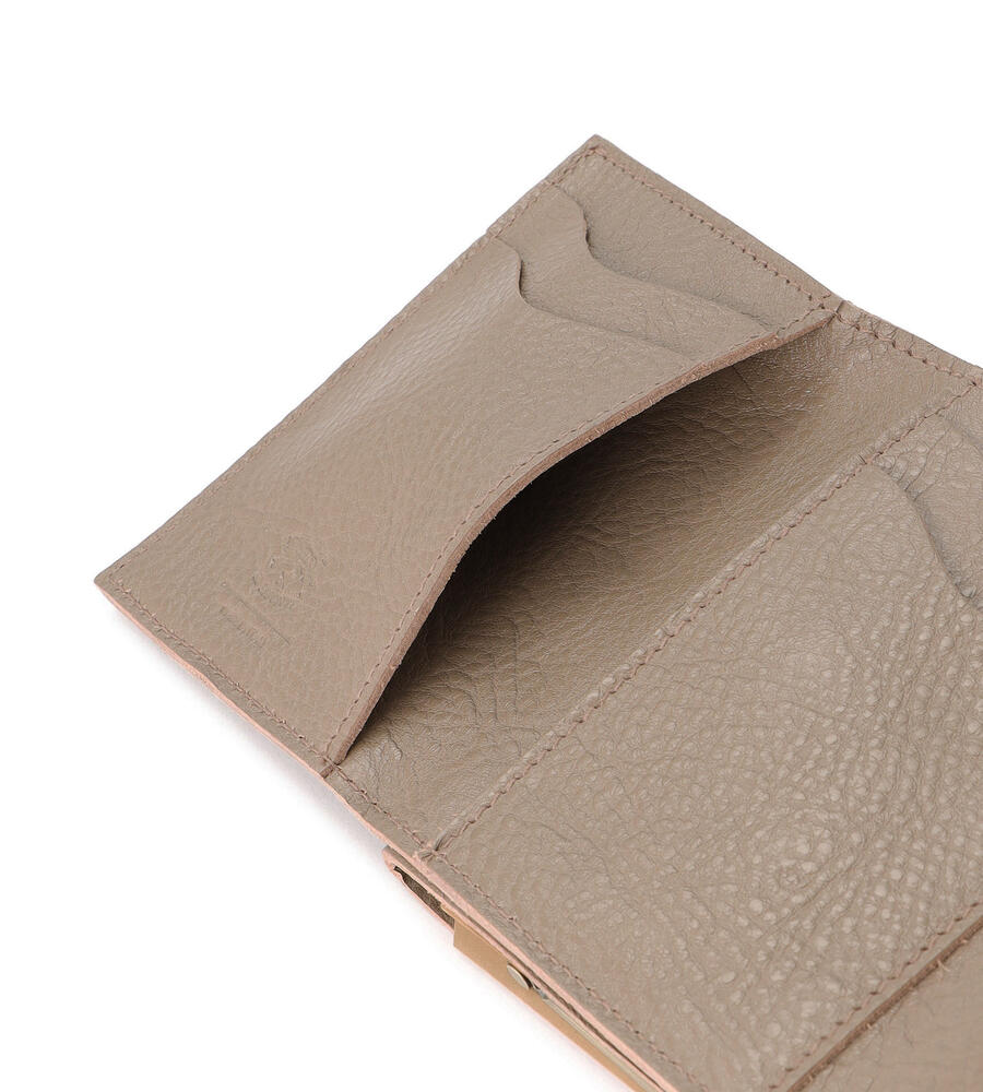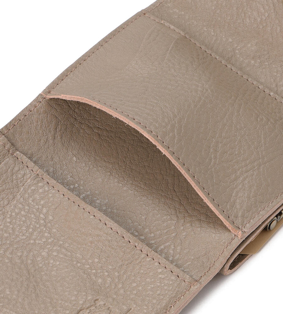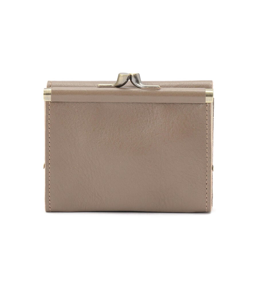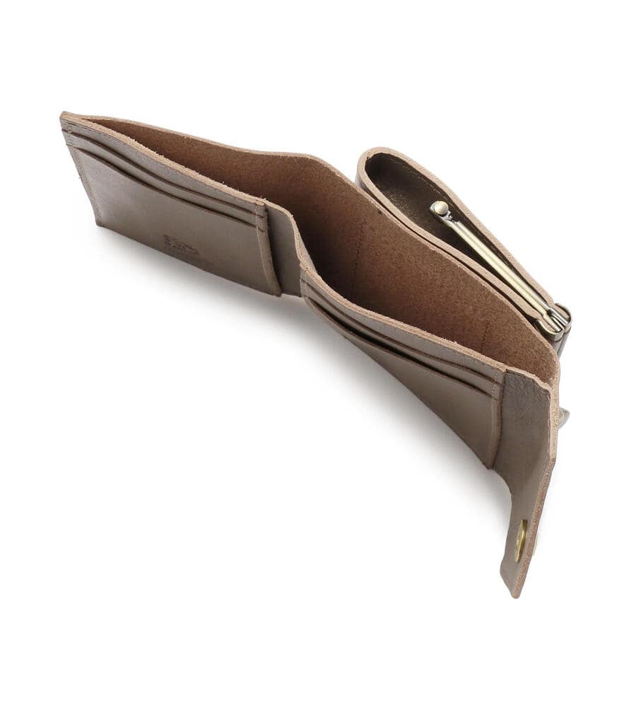 がま口デザインの小銭入れで、さりげない遊び心を楽しむことができる折財布。無駄のないコンパクトなボディのため、バッグやポケットに気軽に収納することができます。年代を問わず愛用できそうな、洗練された雰囲気が魅力です。