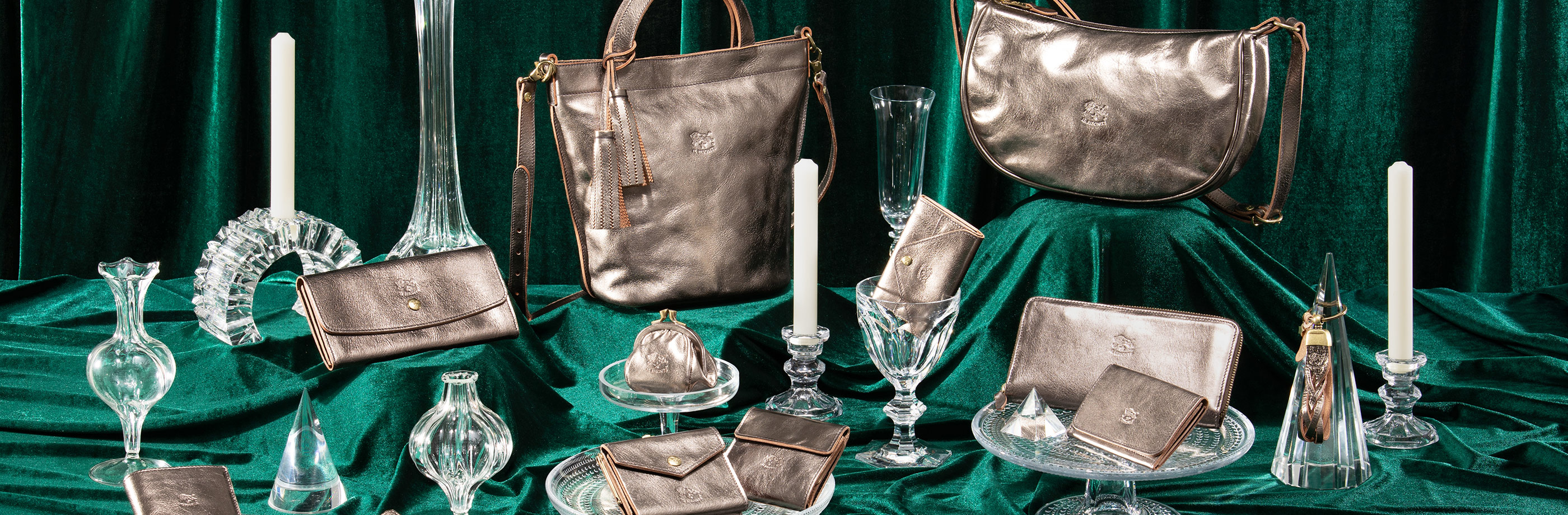 今年のイル ビゾンテのウインターギフトコレクションは、リッチで華やかなブロンズレザーを採用。この時期だけのスペシャルカラーのきらめきが、幸せに満ちたひとときを盛り上げます。