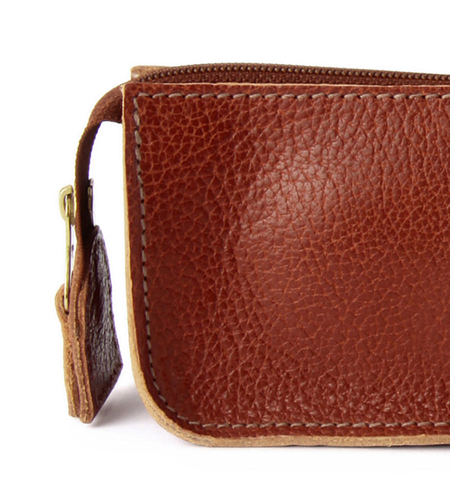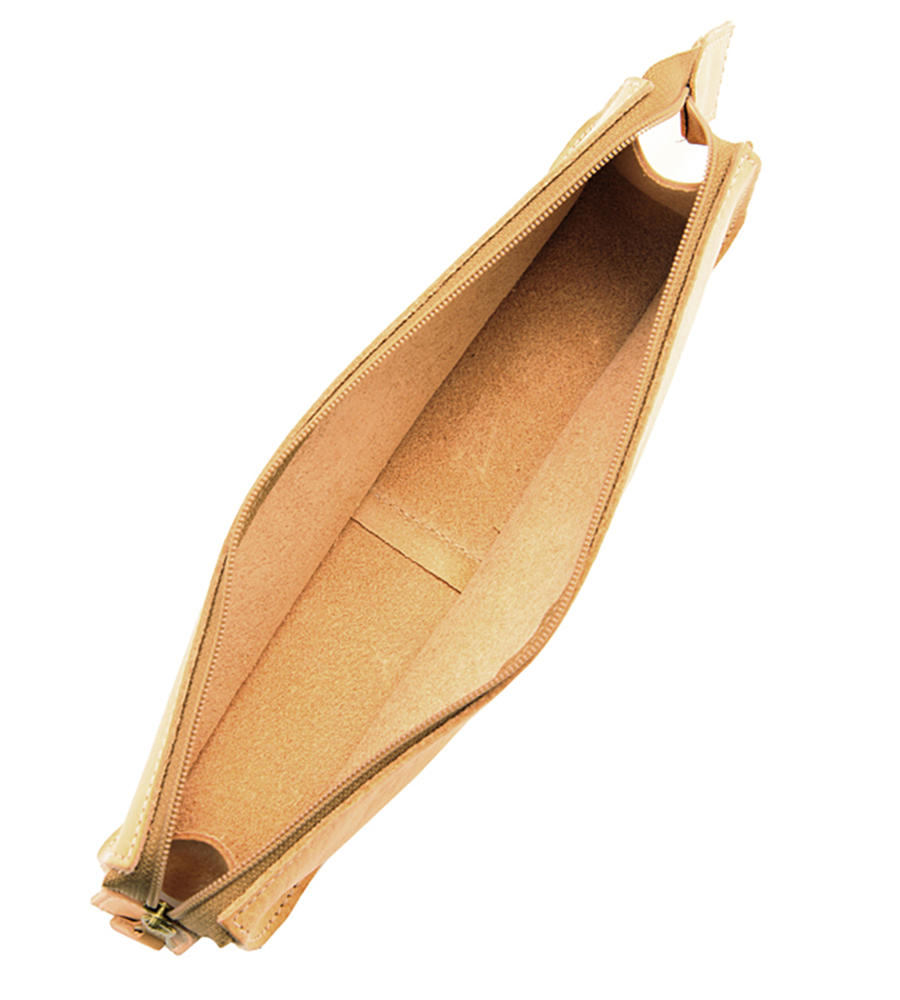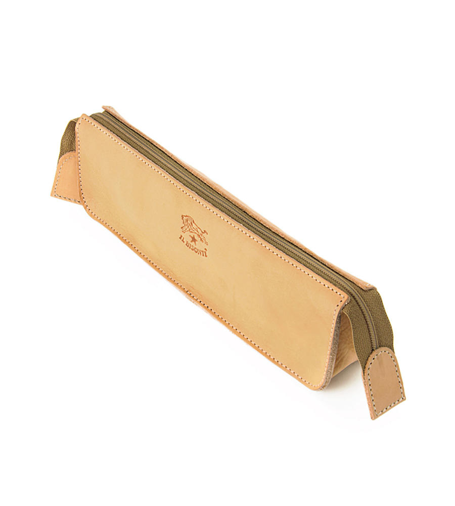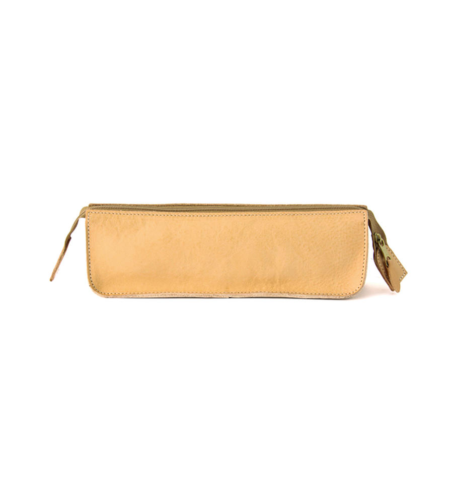 三角形のスリムなフォルムのレザーペンケース。裏地を貼ることなくレザーの良さが伝わるアイテムとなっています。男女問わず人気の定番商品です。