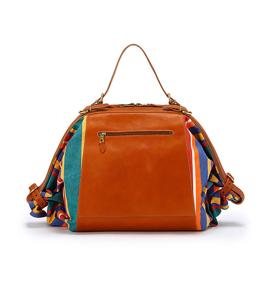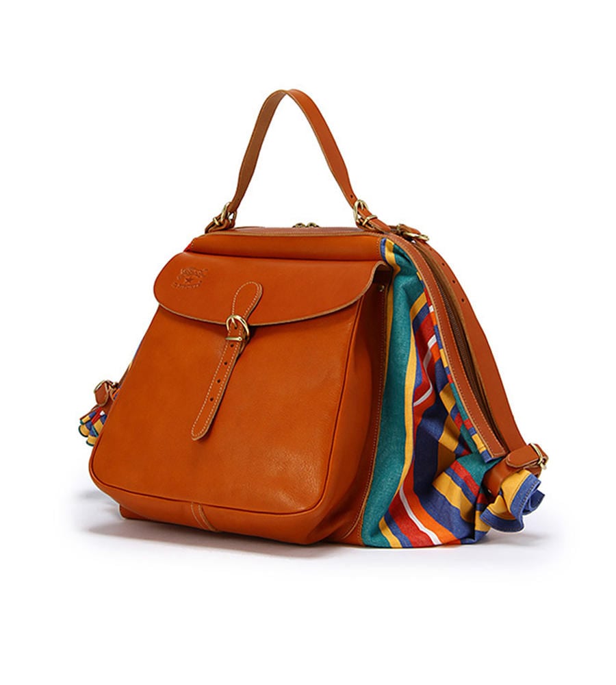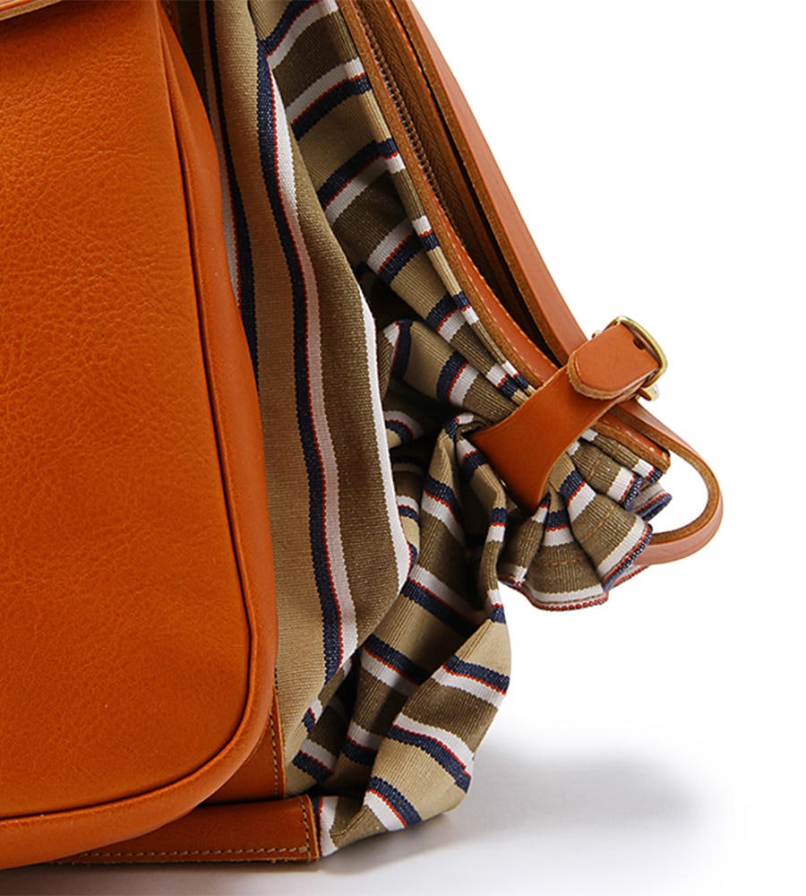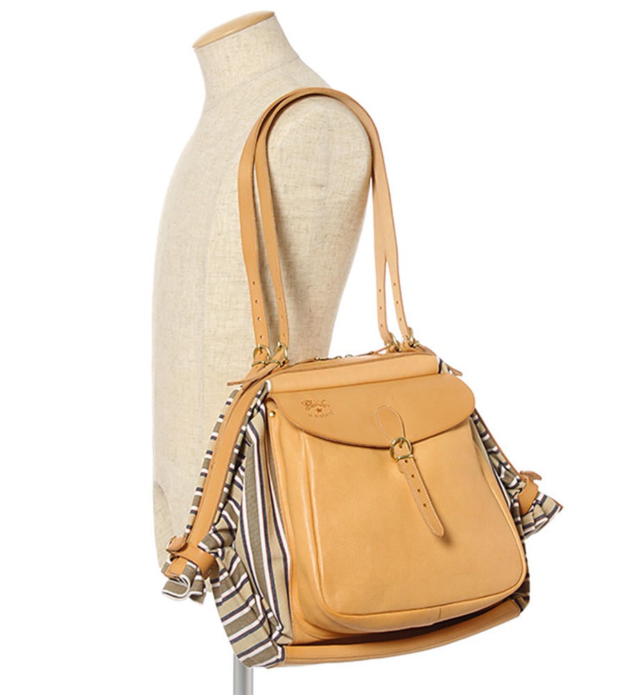サイドをストラップで絞ったデザインが特徴的なキャンディバッグです。大きく開くメインスペースは収納力があり、荷物の多いときにも便利。ストラップの付け方でリュックとしても使うこともでき、ユニセックスでお使い頂けるアイテムです。