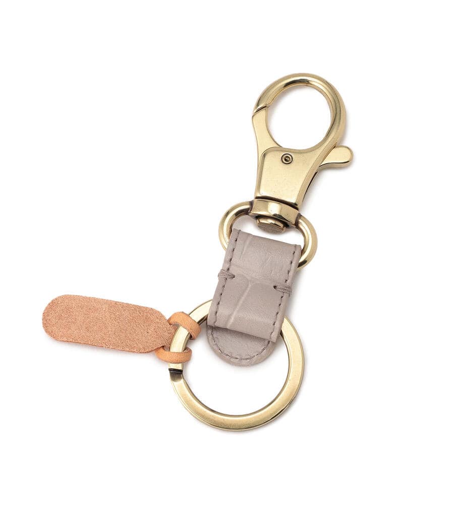 クロコの型押しレザーを採用した人気の定番キーリング。オリジナルレザーとは一味違った上品な雰囲気に仕上がっています。ギフトとしてもお勧めです。