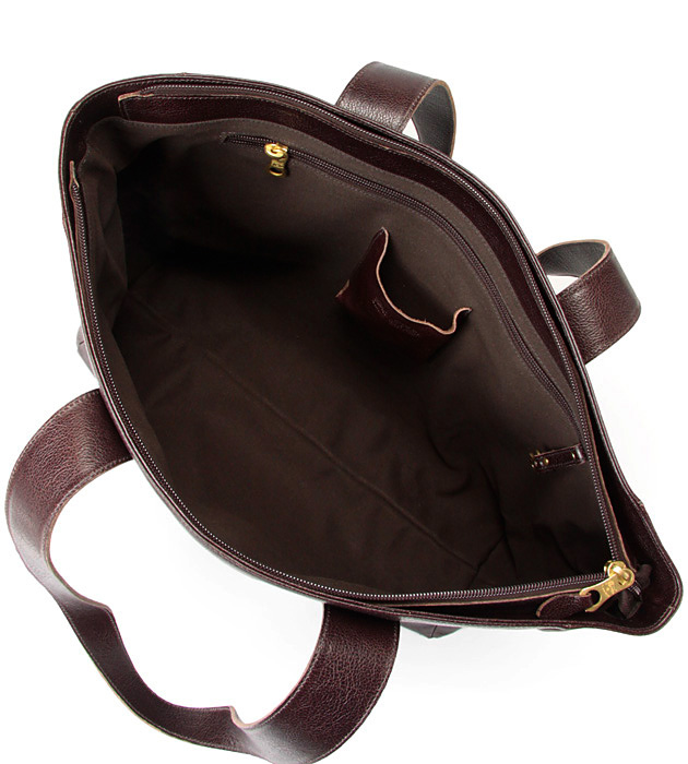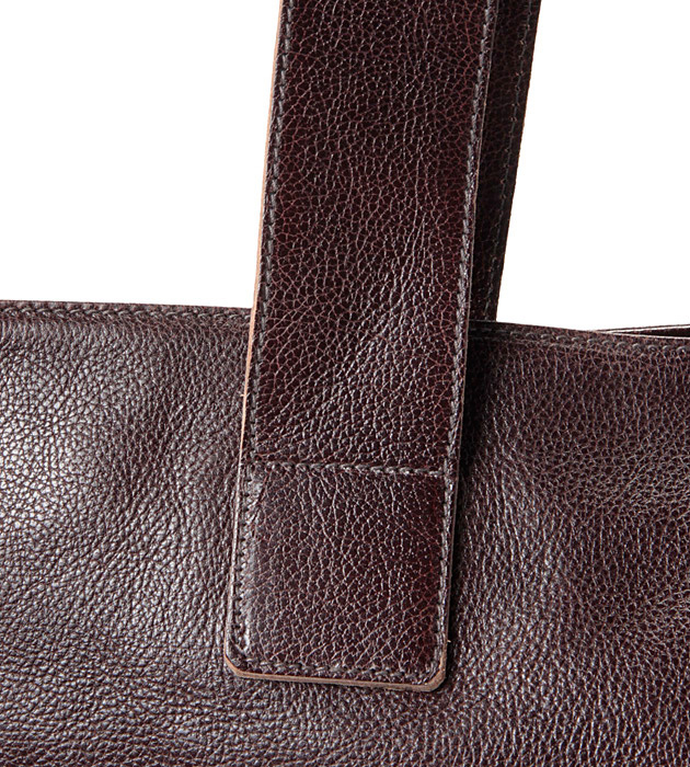 オリジナルレザーのトートバッグは、ノートPCや重い書類を入れても問題なく使えるように、厚みのあるレザーと幅広の持ち手を採用しています。シンプルなデザインなので、ビジネスシーンから普段用まで幅広く活躍するアイテムです。内側にはジップポケットほか、携帯収納スペースもあり機能性も充実しています。