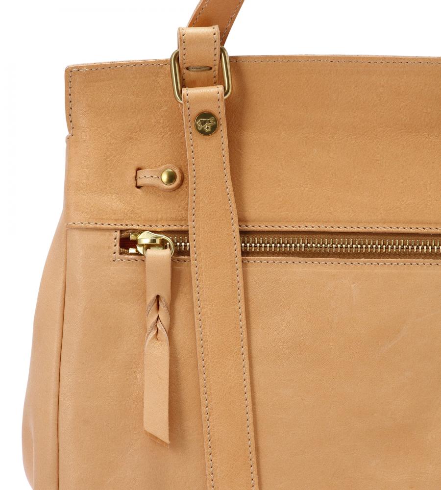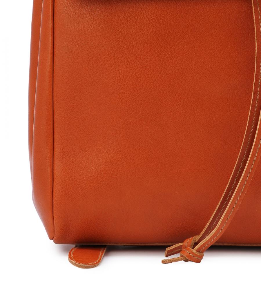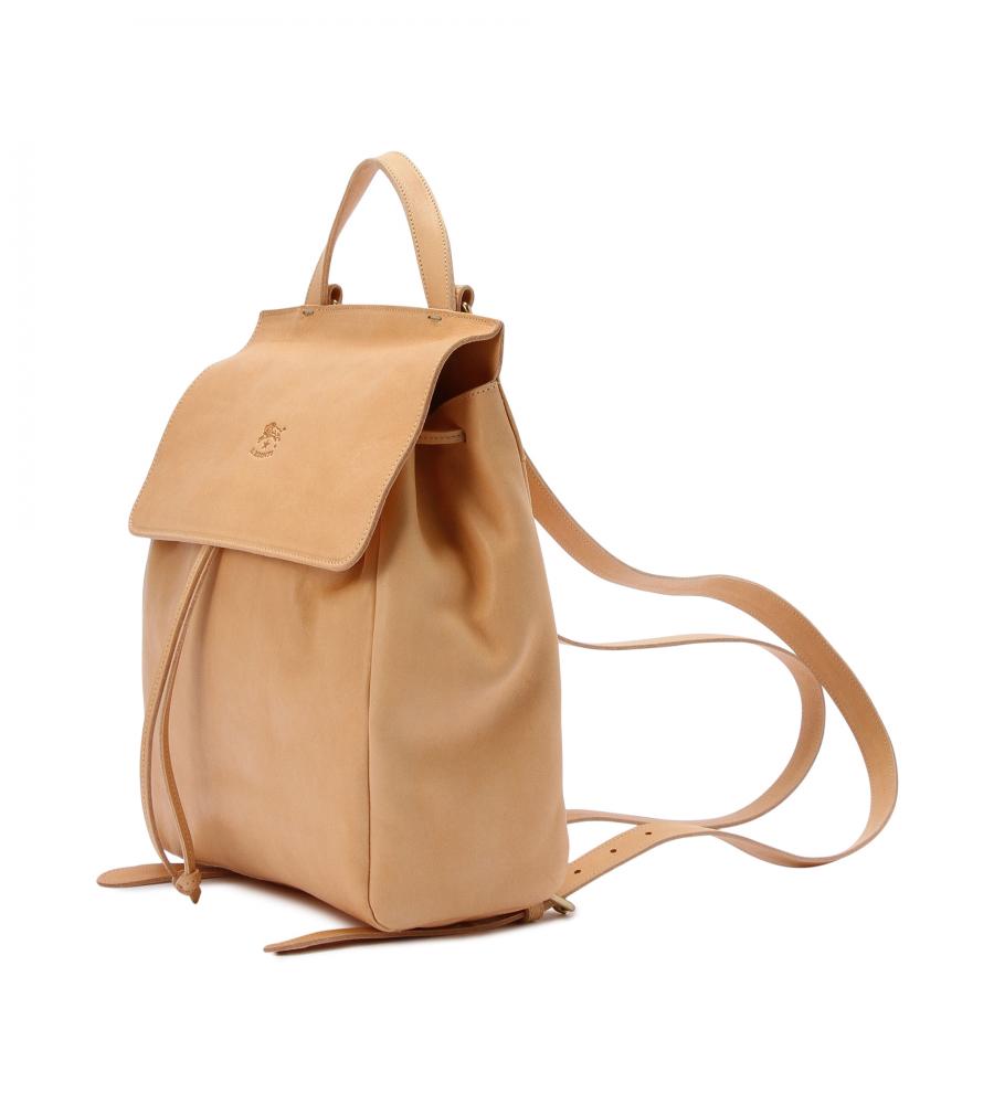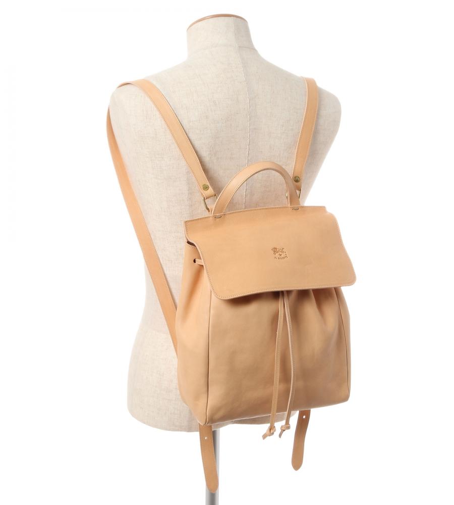 バイソンの刻印がアクセントになった、スクエアフォルムのバックパック。巾着タイプなので中身の出し入れもスムーズ。背面のファスナーポケットは、すぐに取り出したいパスケースや鍵の収納に便利です。