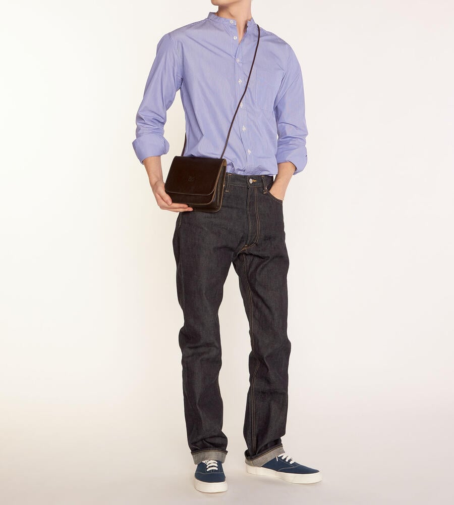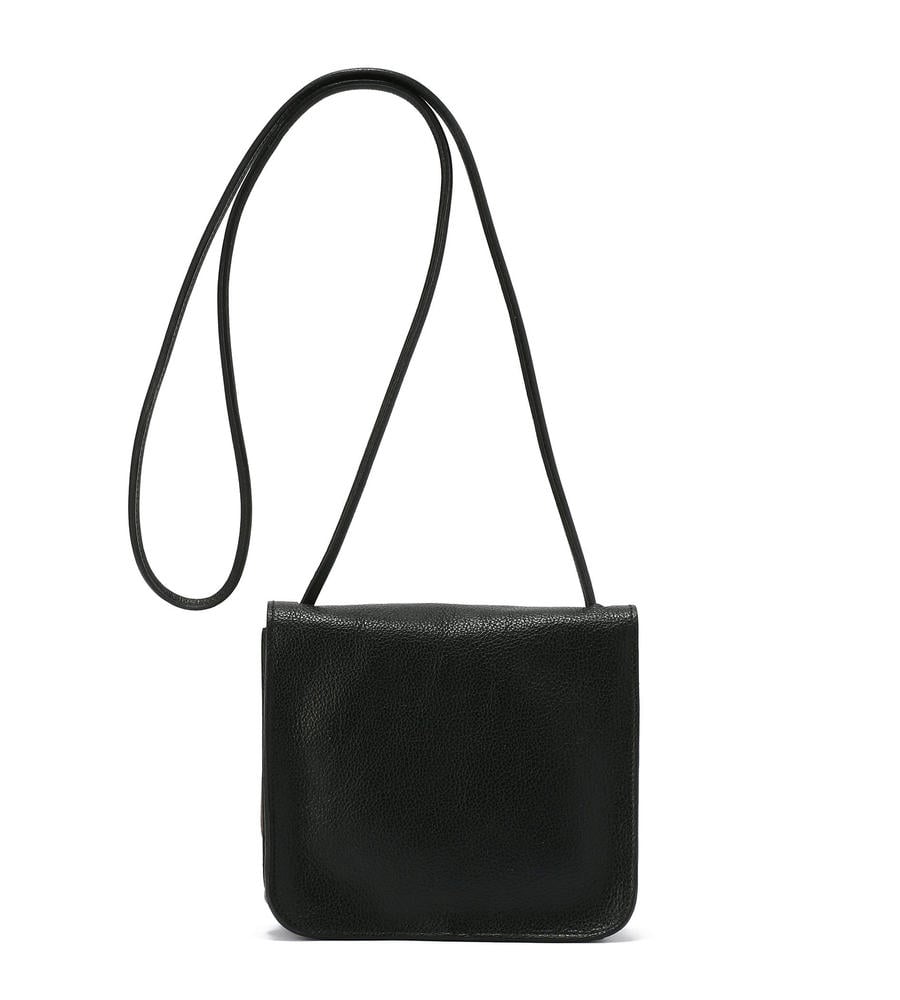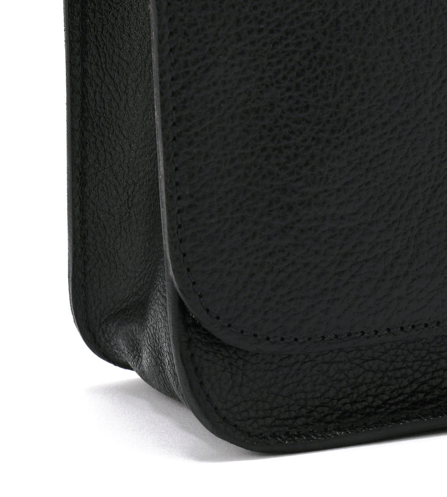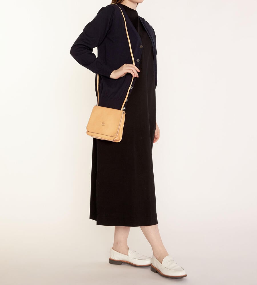 スリムなショルダーがスタイリッシュなムードを放つ、マチありスクエアフォルムのバッグ。マグネット仕様のフラップを開けると、内側にはスターモチーフがデザインされています。大人の遊び心が溢れる一品。