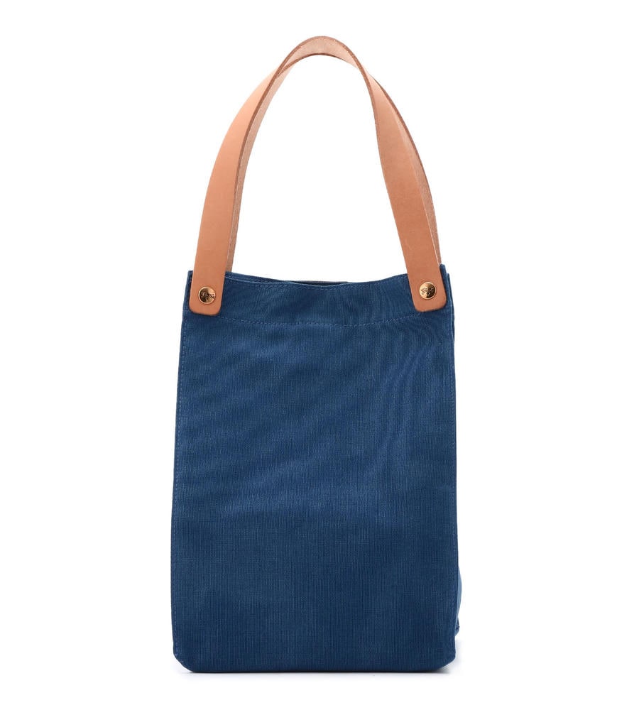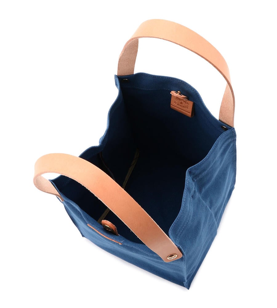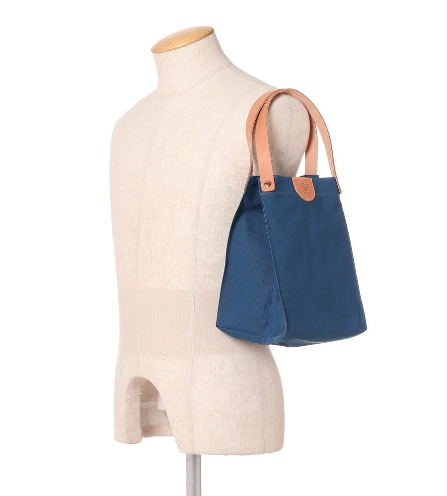 幅広のマチありフォルムがたっぷり収納できるキャンバストートバッグ。持ち手はレザーで切り替え、ブランドロゴ入りのレザーパッチがポイントに。開口部はスナップボタン仕様で中身の出し入れもスムーズに行なえます。