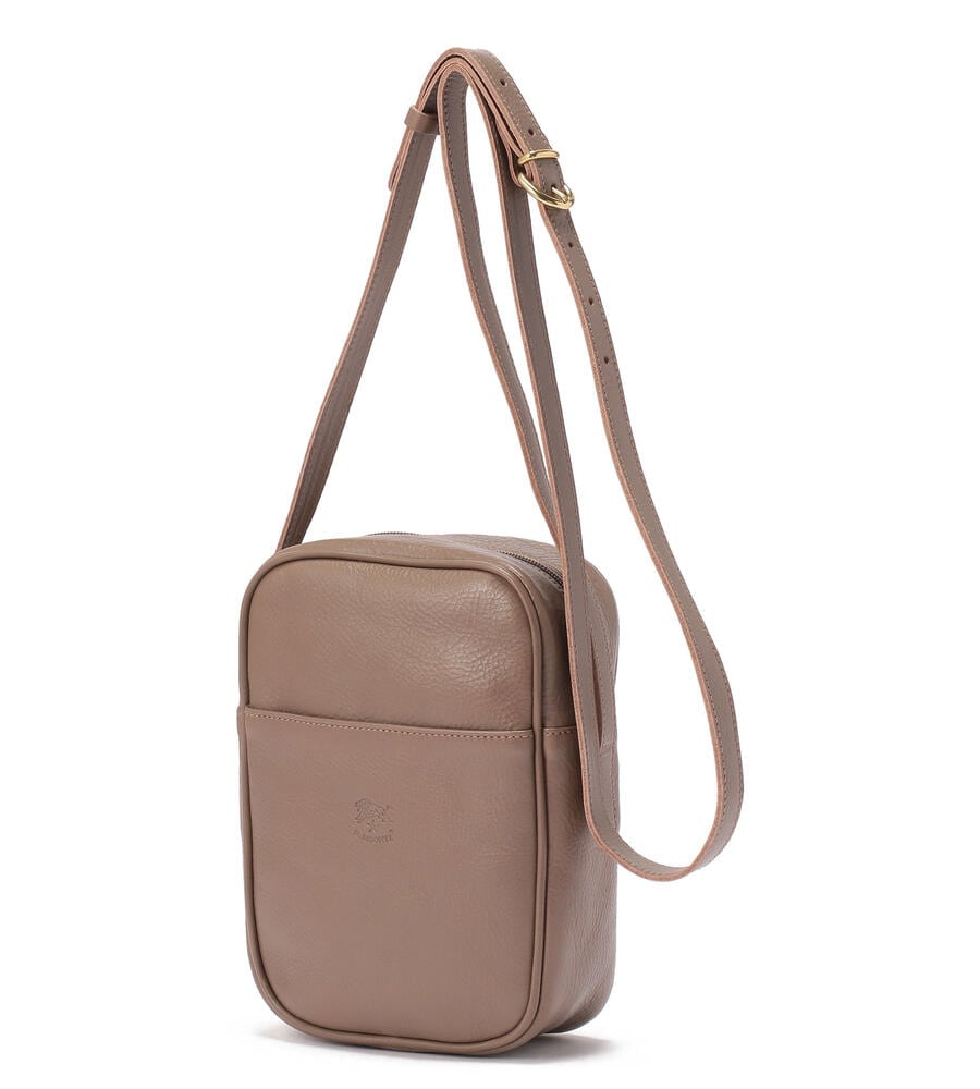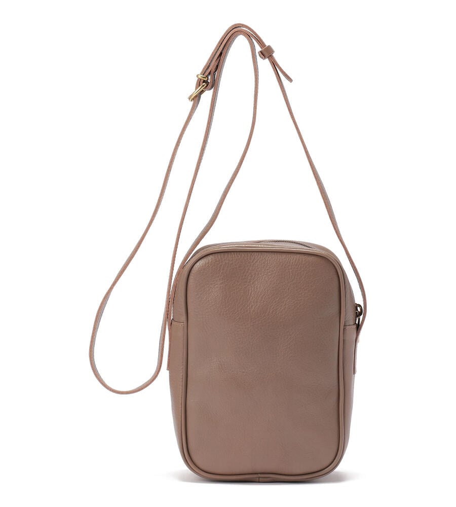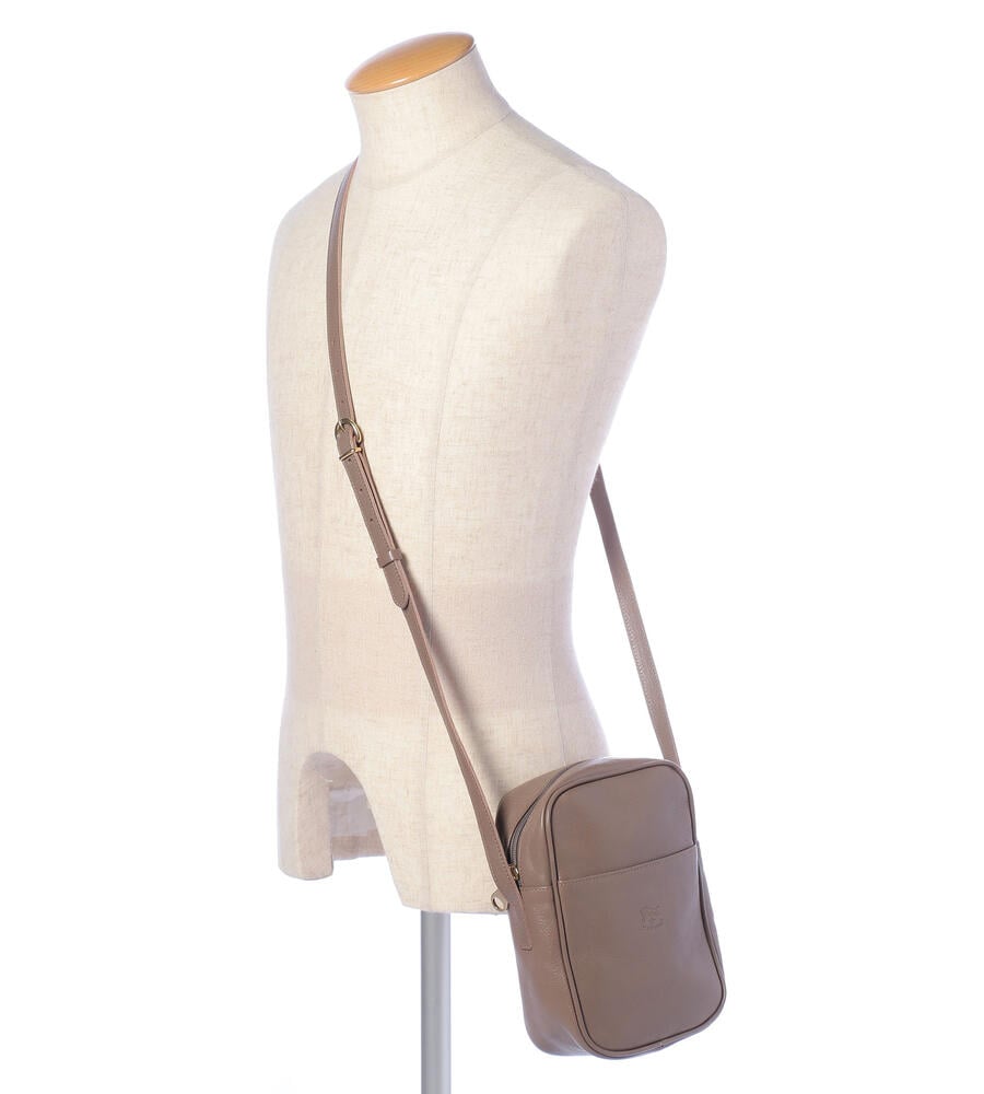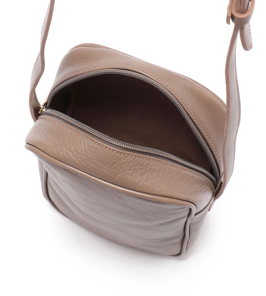 フロントにあしらったブランドロゴの型押しがワンポイントになった縦長のフォルムのクロスボディバッグ。使うほどに味わいを増すベジタブルタンニン鞣しのバケッタレザーを採用。間口はジップクロージャー、ショルダーの長さは調整が可能です。