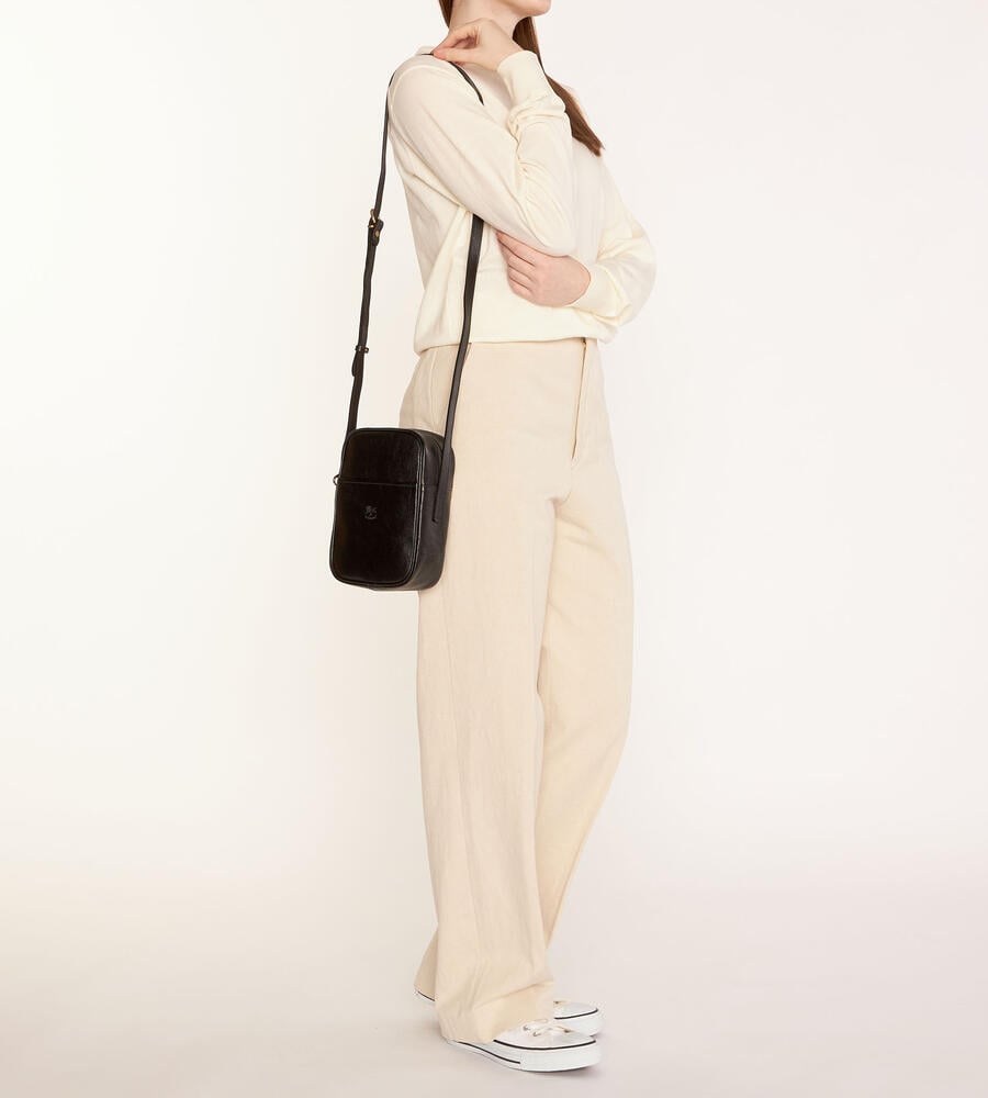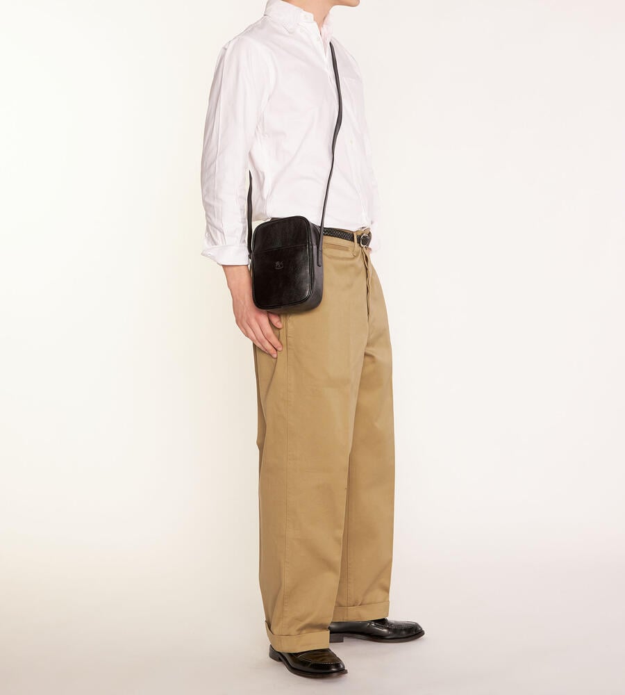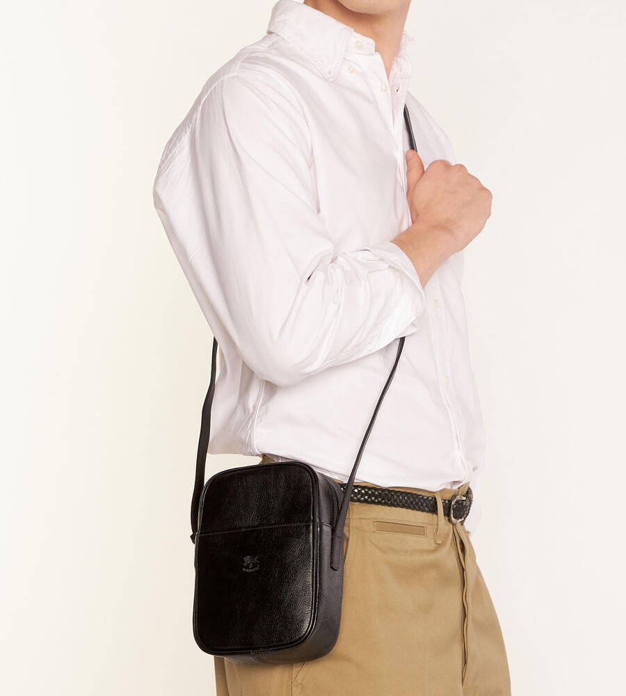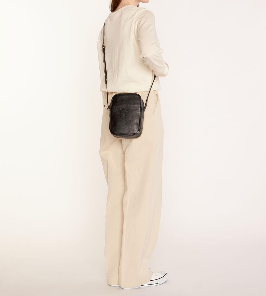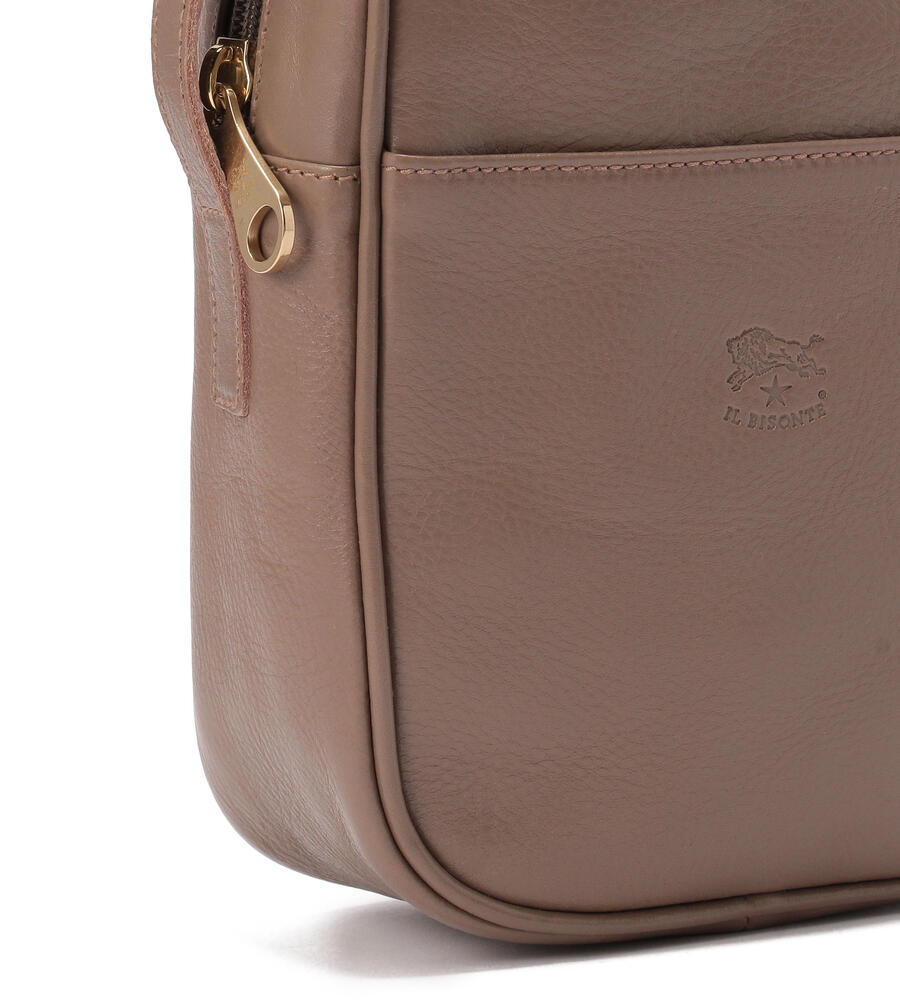 フロントにあしらったブランドロゴの型押しがワンポイントになった縦長のフォルムのクロスボディバッグ。使うほどに味わいを増すベジタブルタンニン鞣しのバケッタレザーを採用。間口はジップクロージャー、ショルダーの長さは調整が可能です。