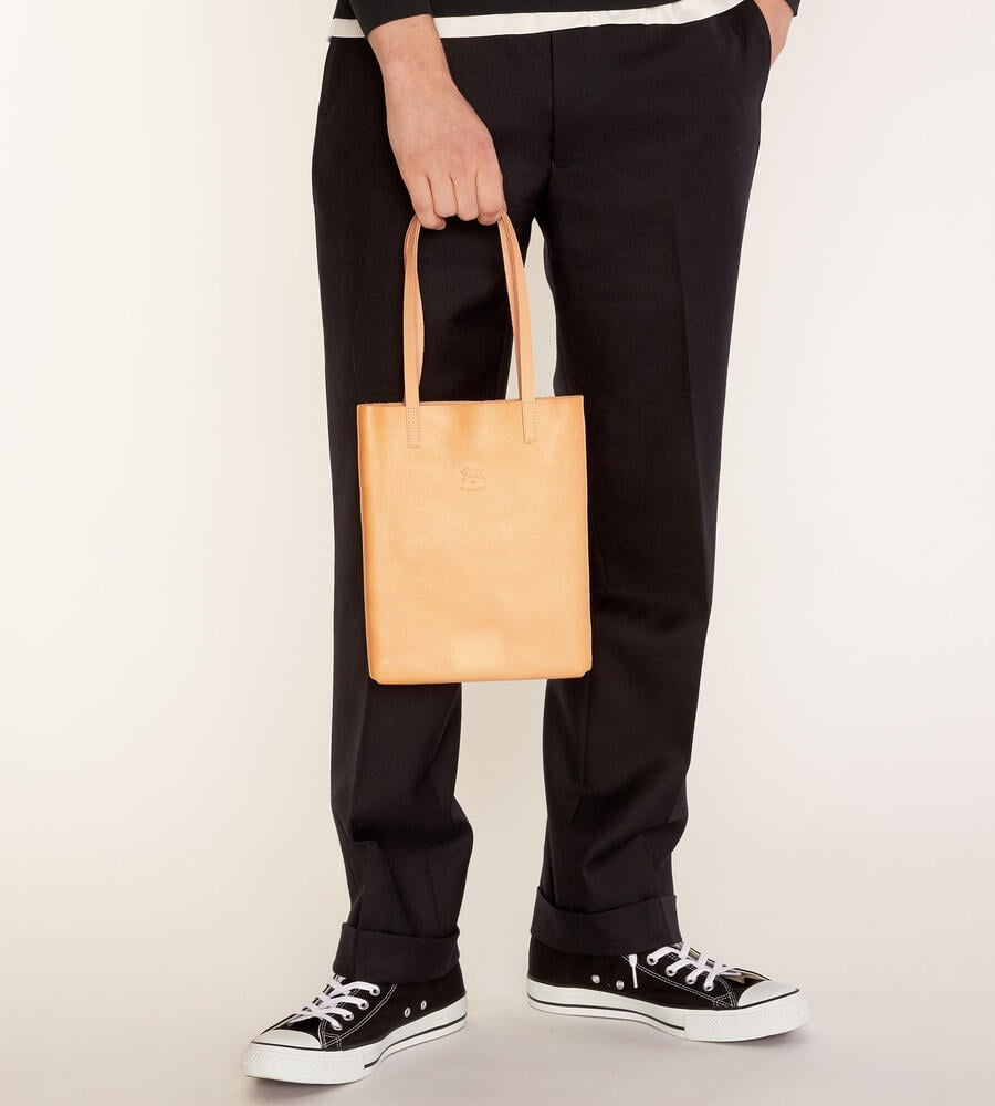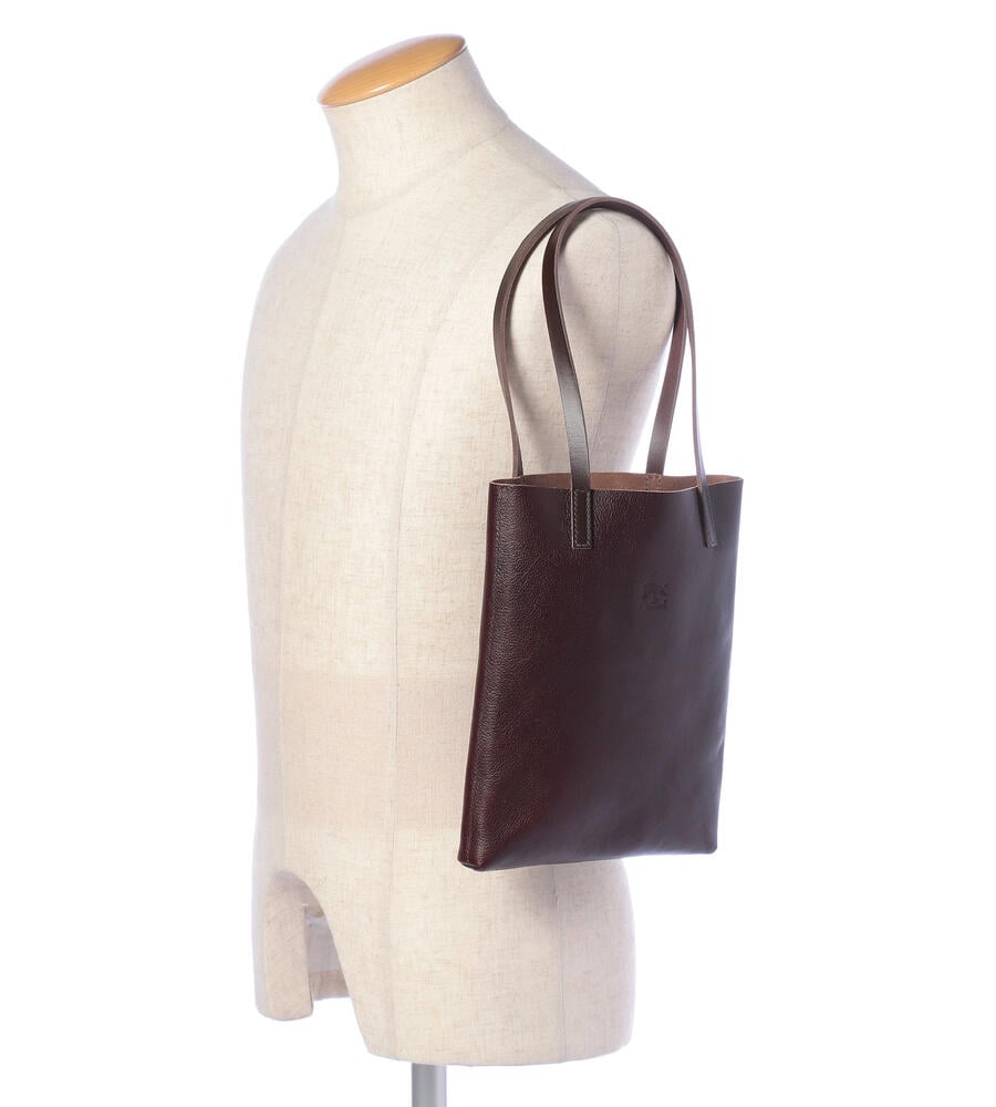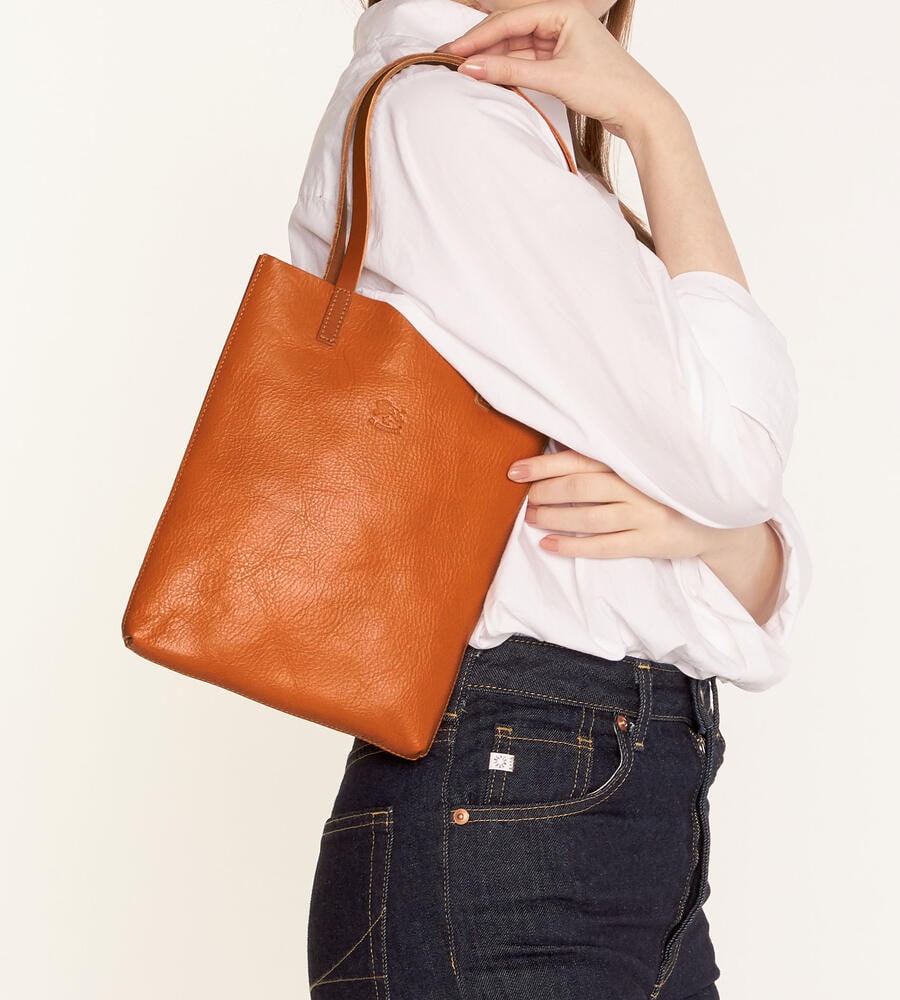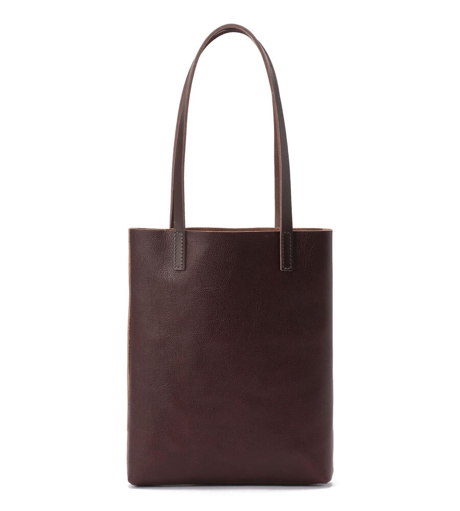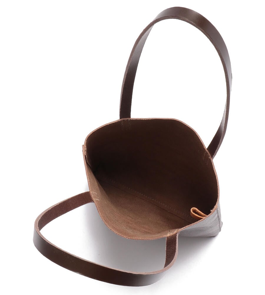 シンプルなデザインから洗練されたムードが漂うトートバッグ。使うほどに味わいを増すベジタブルタンニン鞣しのバケッタレザーを採用。肩掛けも、手持ちもできる程よい長さのハンドルに仕上げています。ブランドロゴの型押しがワンポイントに。