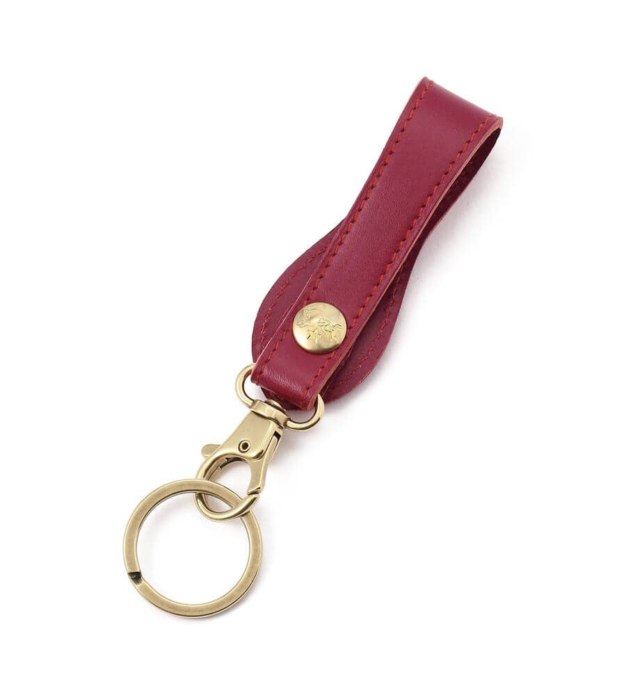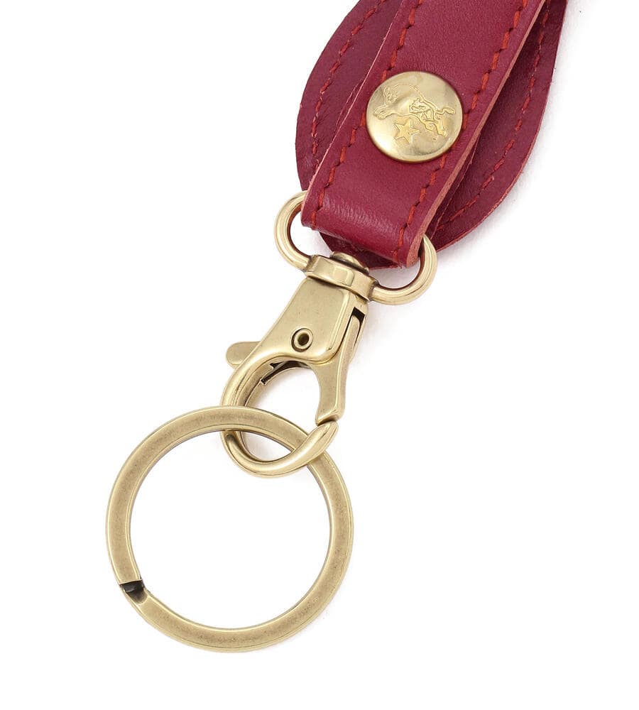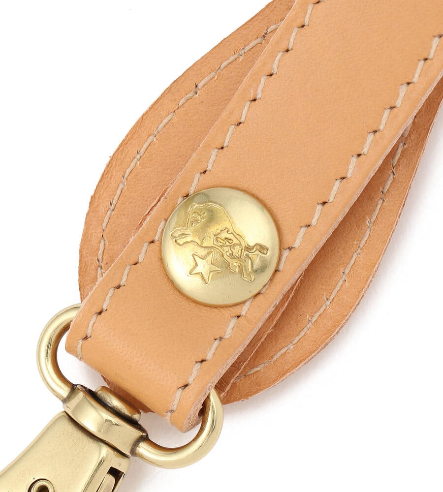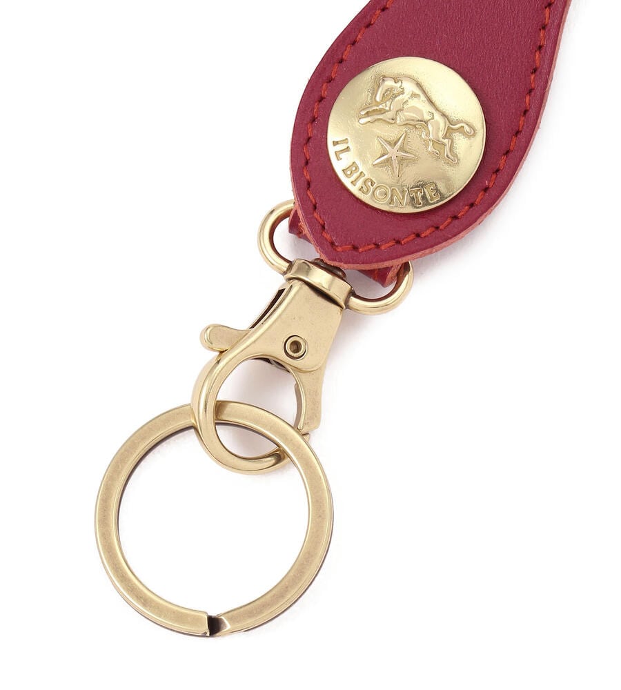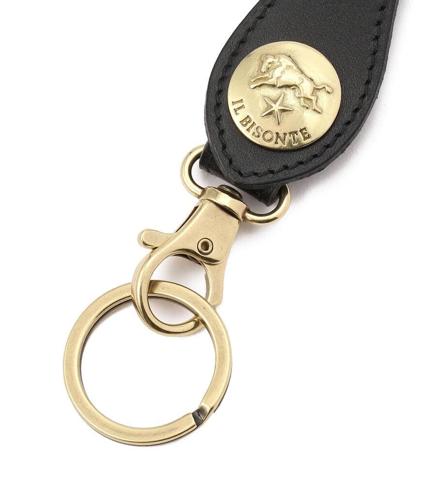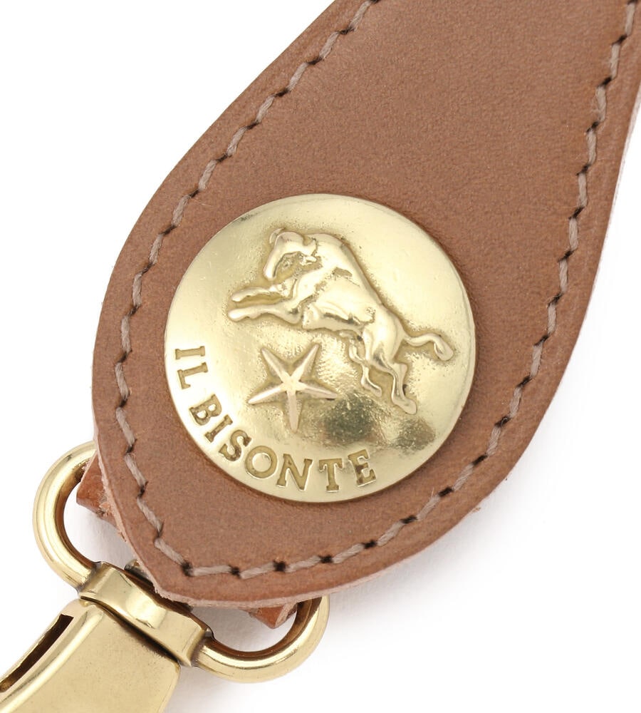 バイソンロゴがあしらわれたメタルボタンとループ状にしたレザーを組み合わせたキーリングが登場。ナスカンにキーリングを通したデザイン。手に馴染みやすい程よいサイズ感が使いやすさの決め手に。