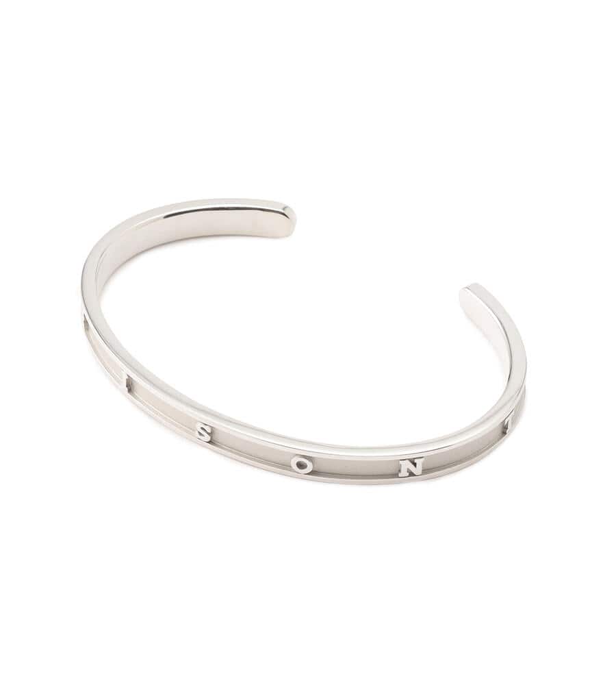 ルネサンス建築のアーチを彷彿させる、しなやかなシルエットが印象的なバングルです。石造りをイメージするマットな地金に、立体感のある艶やかなロゴを配置しました。美しい印影が、スタイリッシュなムードを高めてくれます。