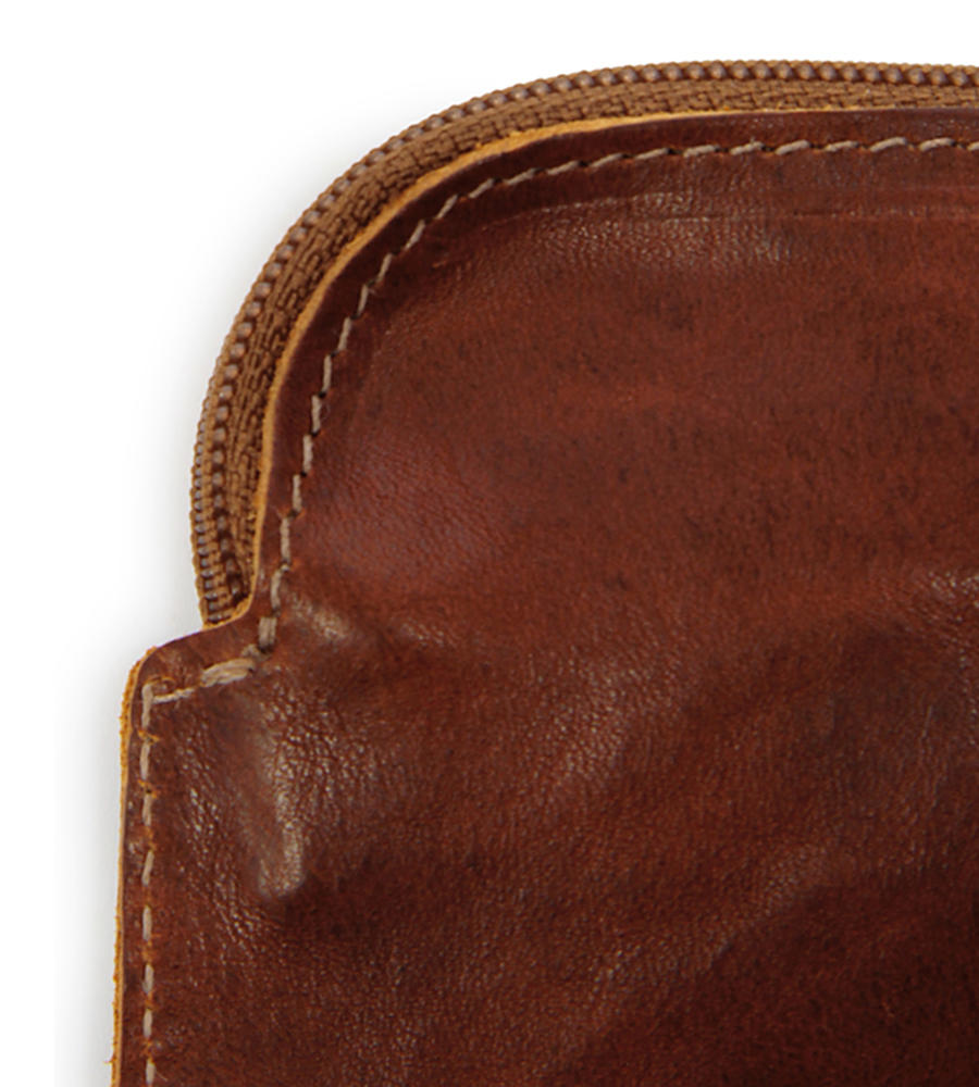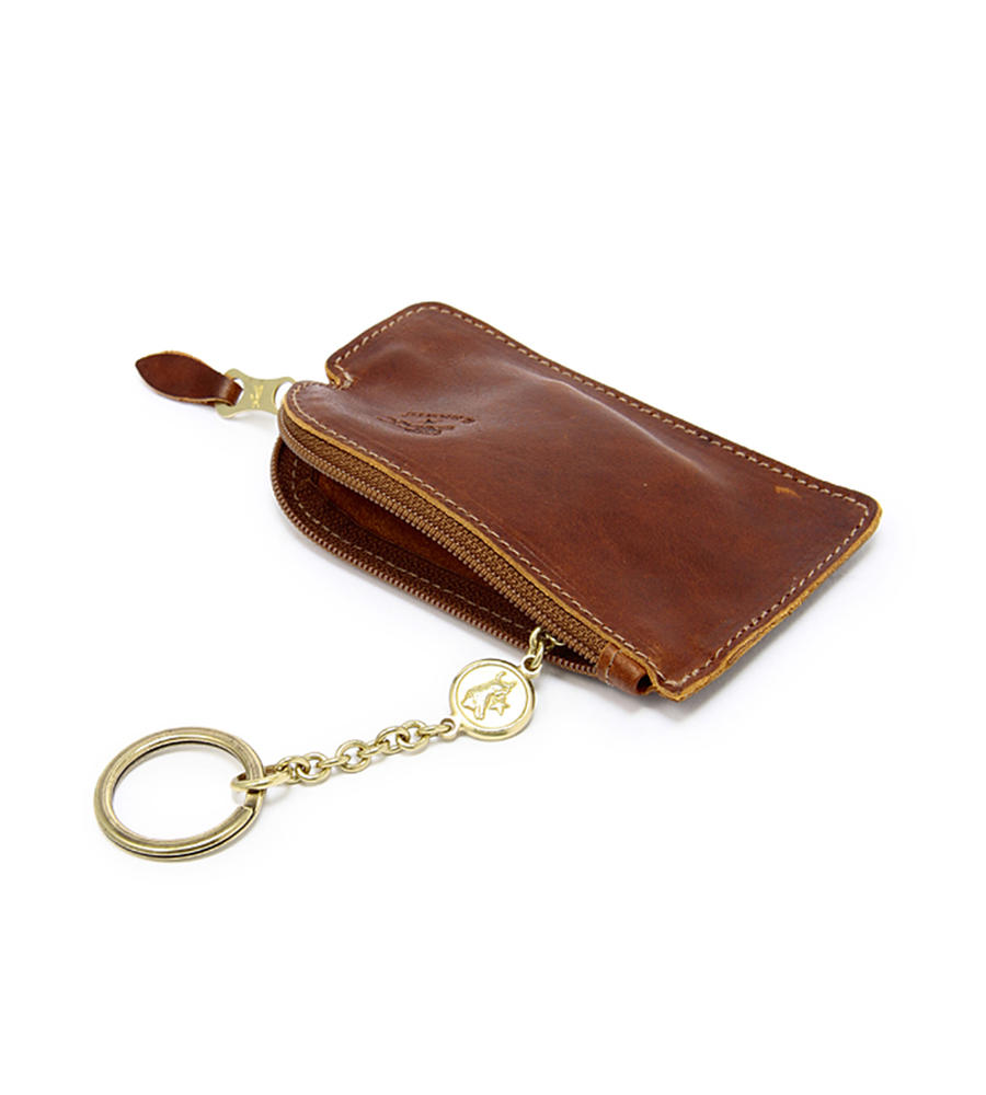 変形したフォルムがほんのりユニークな、コインパース。ヴィンテージライクな深みのあるレザーが上質感をあたえるから、小さめサイズでも存在感は抜群です。ファスナー仕様で出し入れがしやすく、キーリングつきだからどこにでも好きな場所へつけることができます。一つ持っていると重宝するアイテムです。