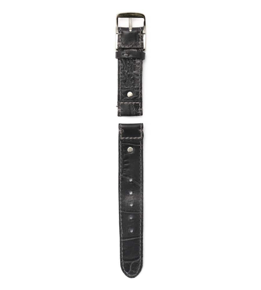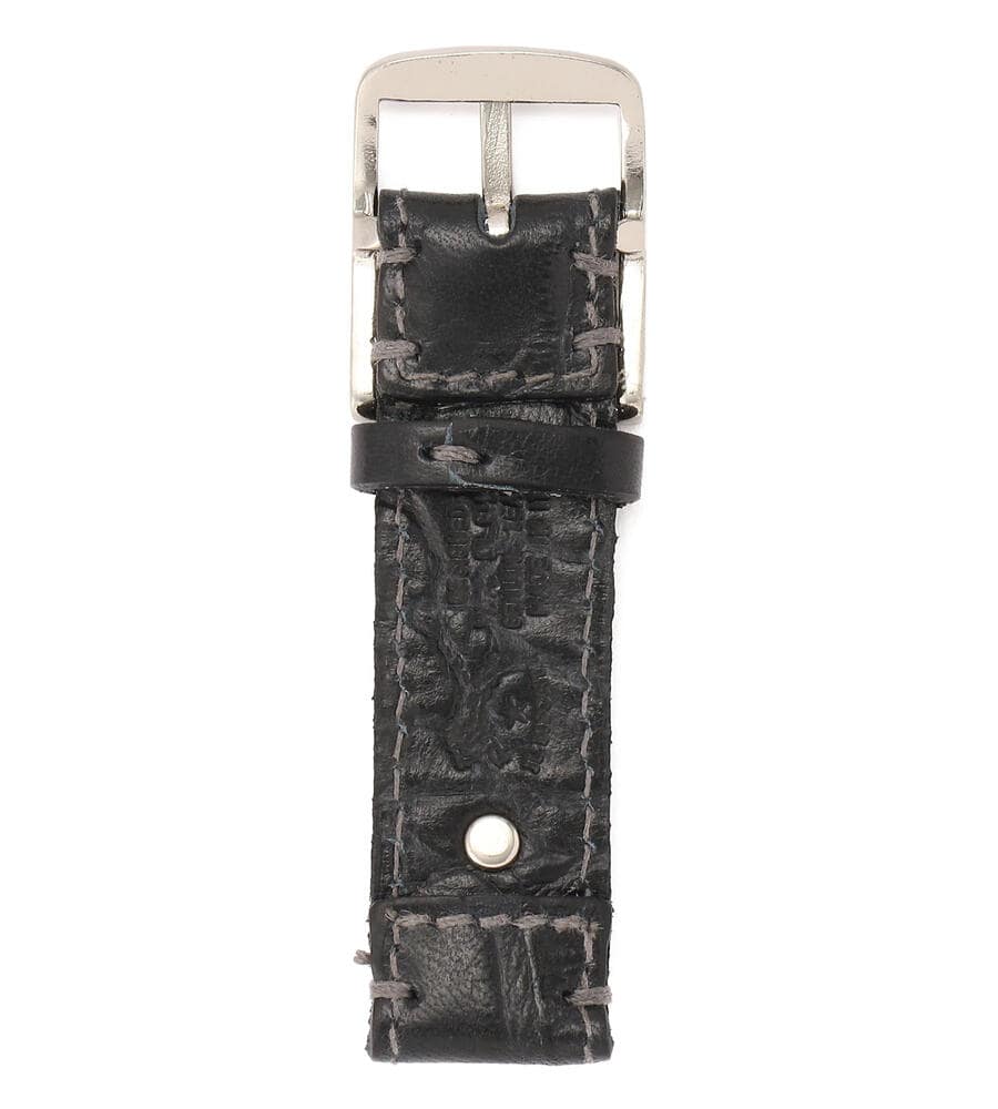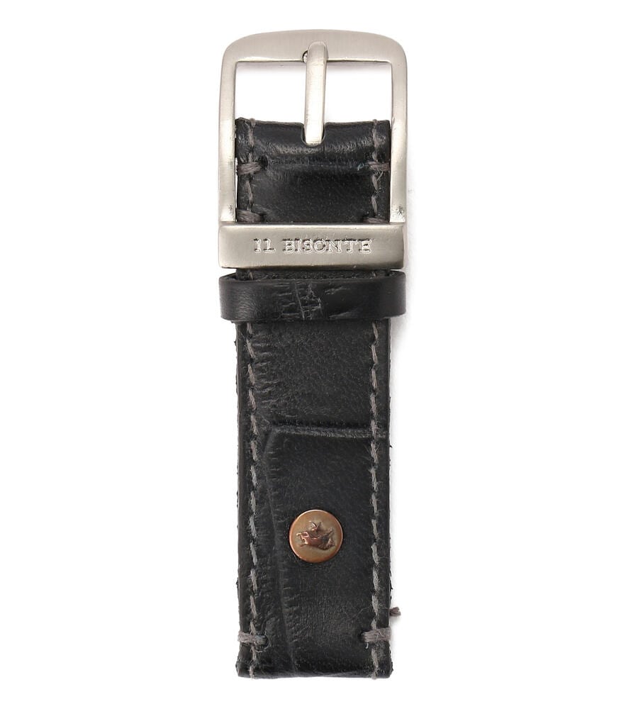 メンズウォッチの付け替え用クロコベルトです。サークルモチーフにバイソンロゴをあしらったディテールがワンポイントに。手元に存在感を与える表情豊かなレザーは、使うほどに質感の変化を楽しめます。