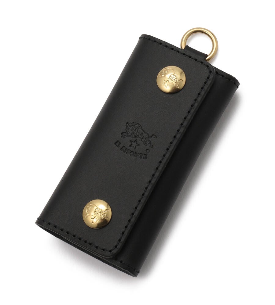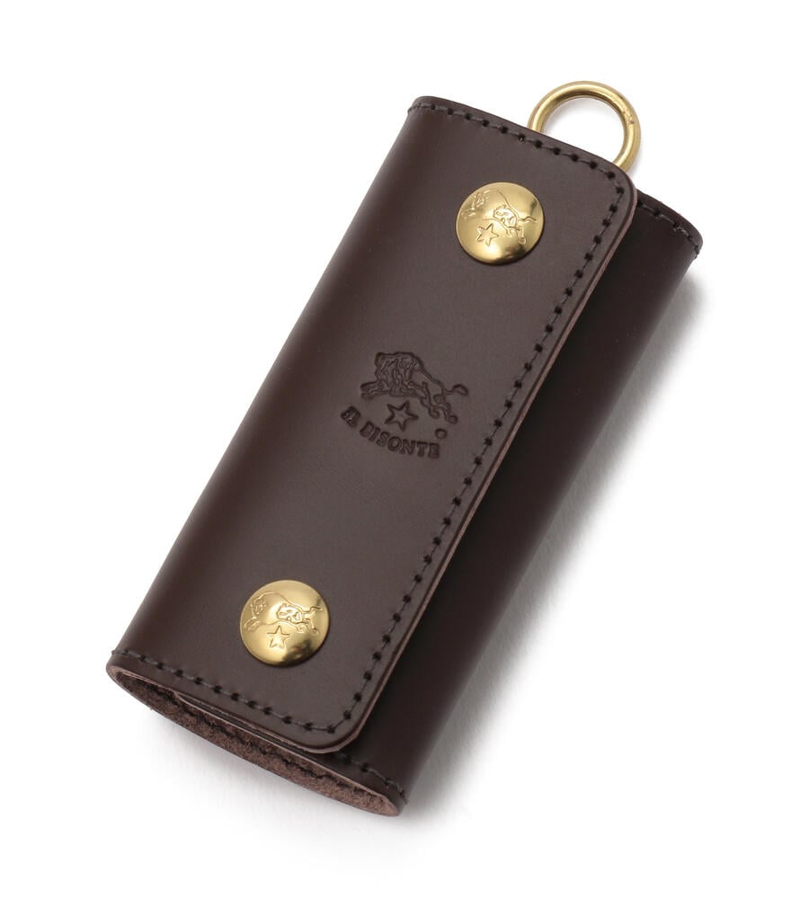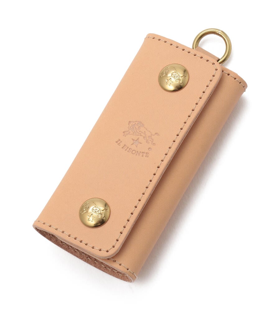 キーケースは、ブランドロゴがポイントのシンプルなデザイン。ボタン留めで包むタイプで、鍵や周りの物を保護します。フックは4つ備え、カギの装着はとても簡単です。バイソンロゴ刺繍がワンポイントのミニタオルは、デイリー使いに最適でコンパクトに畳めるのでポケットの中でも嵩張りません。