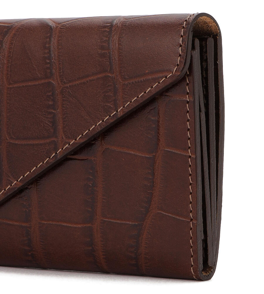 エンボス加工されたクロコダイル柄が特徴の“CROC EMBOSSED LEATHER(クロコ エンボスドレザー)”ライン。クロコ特有の凹凸が美しく表現され、色の濃淡や艶感まで丁寧に調整し、リアルクロコを再現。深みのある色調がクラシカルで、大人の落ち着きのある表情を演出します。