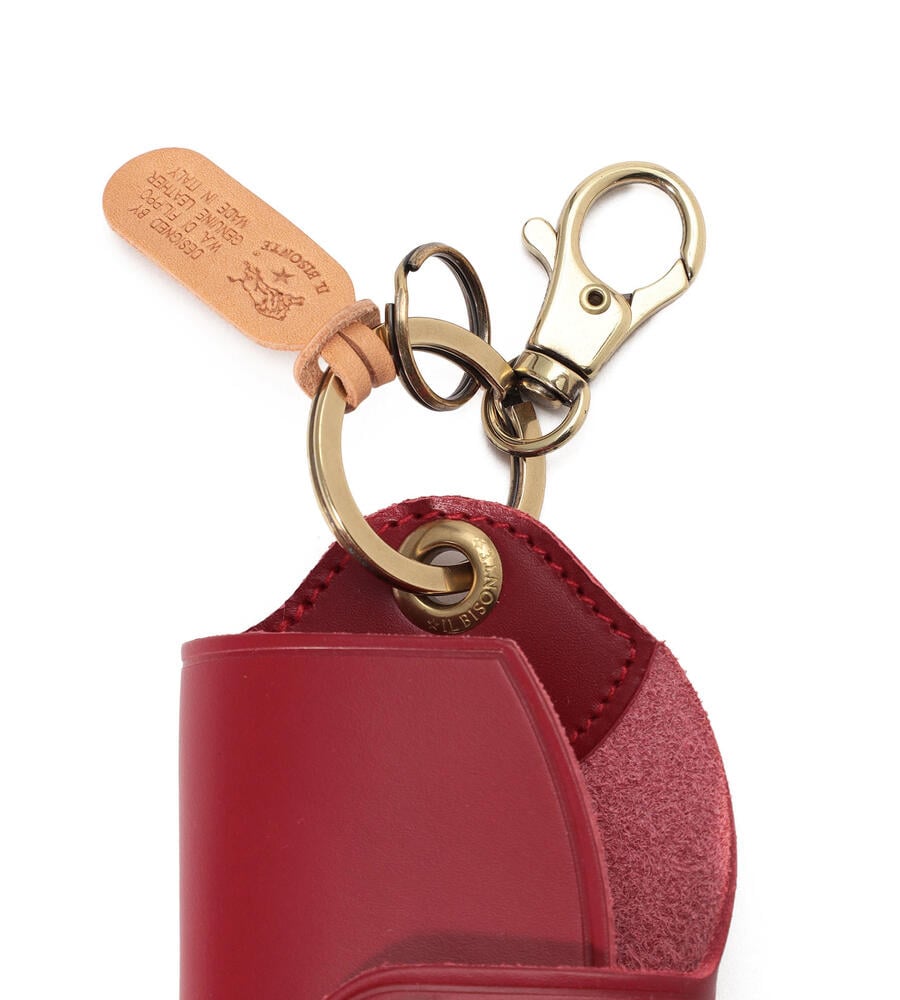 フックとリングを備えたレザーキーケース。車のリモコンキーにも対応するよう、厚みをとってデザインされています。シンプルな表情で年齢や流行に左右されないため、ギフトとしてもおすすめ。豊富な色展開もポイントです。