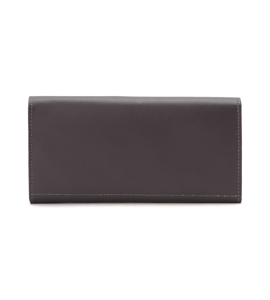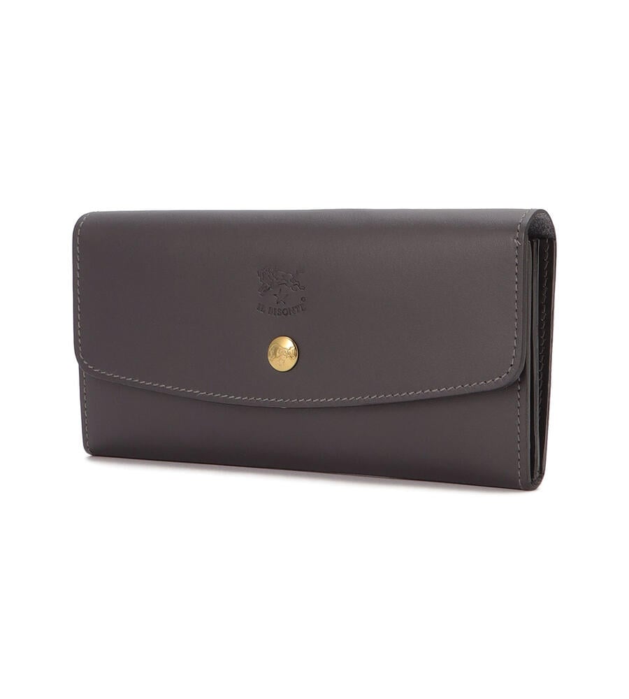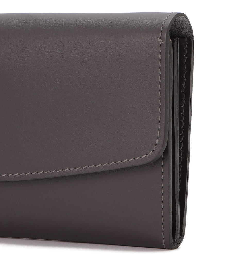開閉しやすいフラップタイプのロングウォレット。シンプルで洗練されたフォルムはバックの中にすっきりと収まります。内部中央にファスナーコインポケットを配置。両側に札入れとカード収納を備えています。