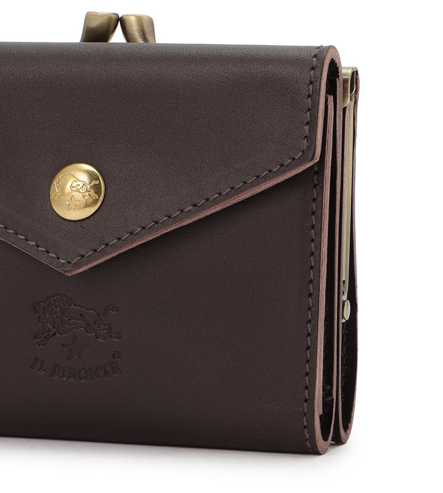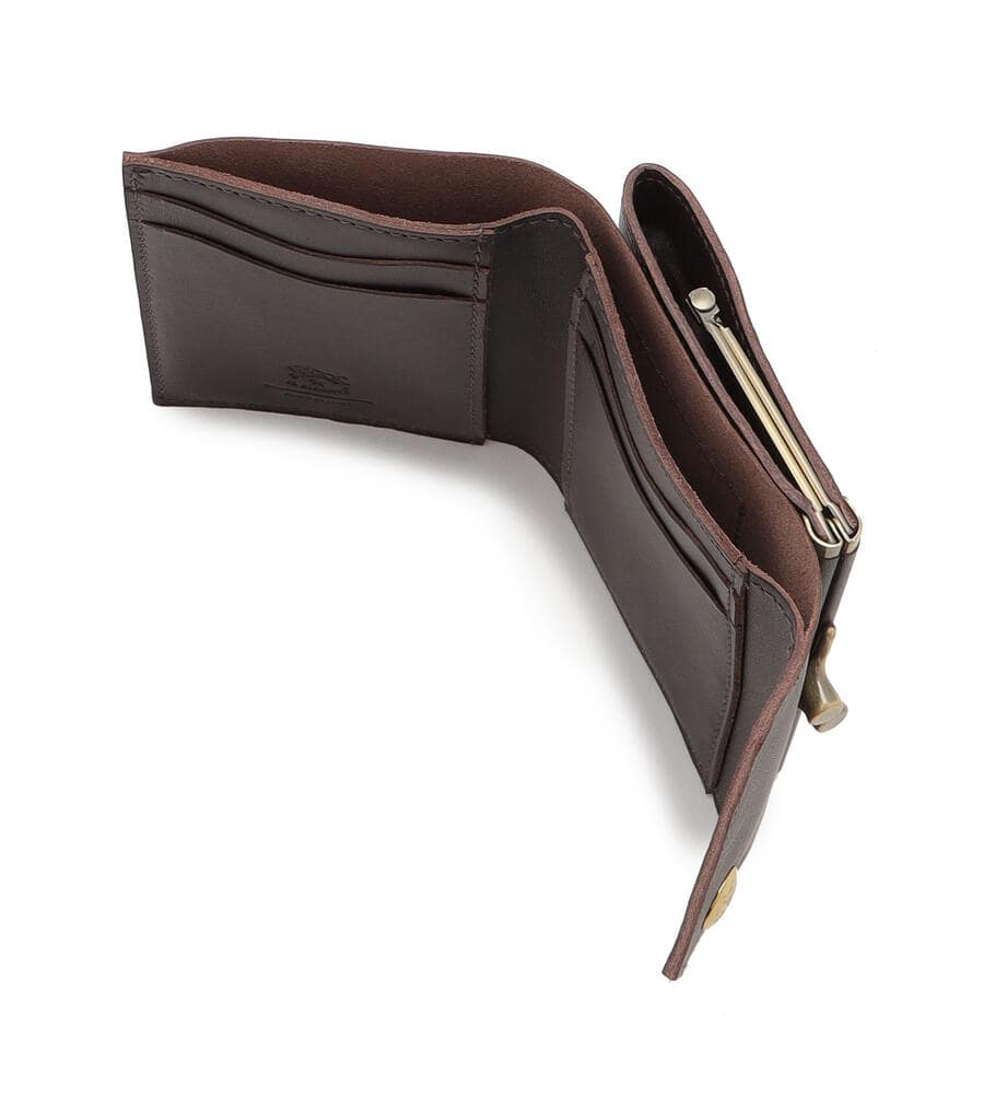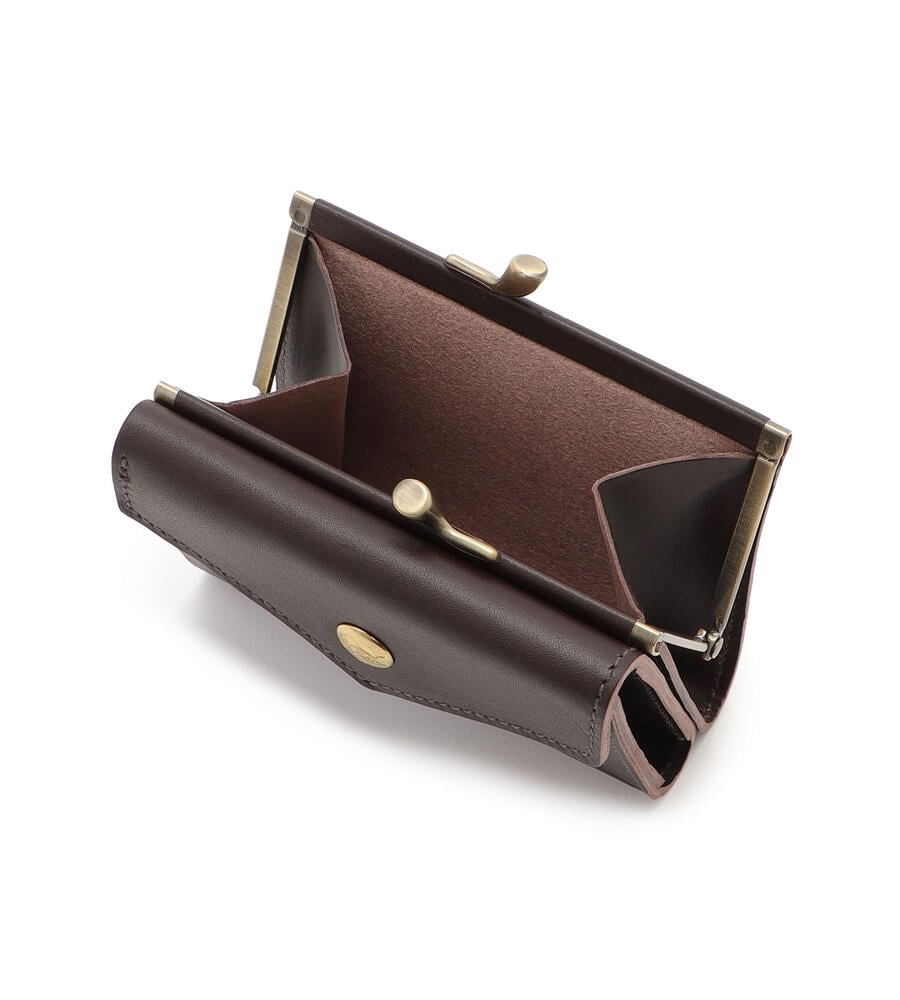 女性の手にも収まるサイズ感、コンパクトながらも収納力に優れたウォレット。札入れ、カードポケットに加えて、ちょっぴりレトロながま口コインケースを配置。マチ付きで中身が見やすく、小銭が取り出しやすいのもポイントです。