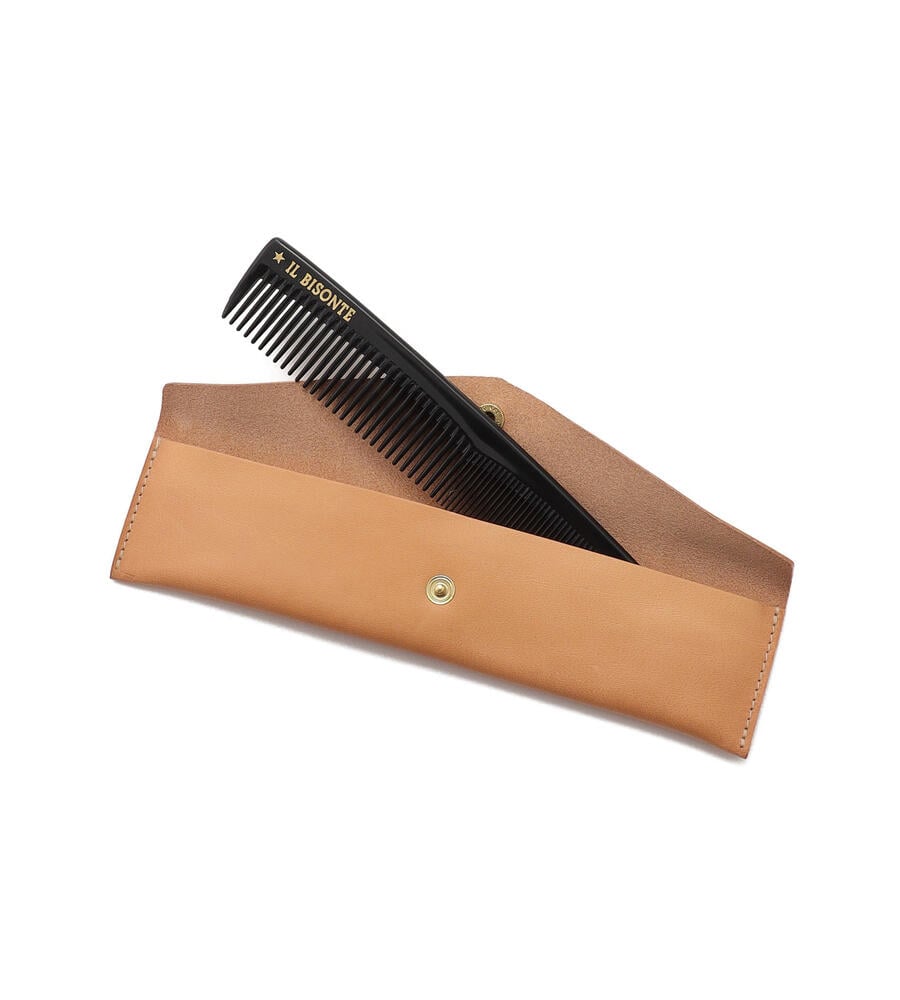 やわらかで上質なレザー素材で仕立てた専用ポーチ付きのコーム。フロントにはブランドロゴの型押しがスタイリッシュなアクセント。コームに合わせたコンパクトでミニマムなフォルムはカバンの中でかさばらず、携帯に便利。実用性とおしゃれを兼ね備え、プレゼントにもぴったりなセンス抜群のアイテムです。