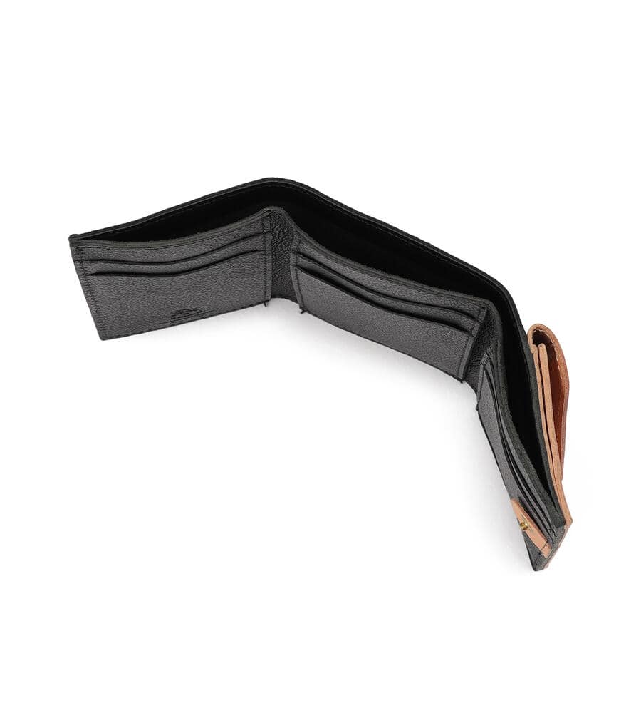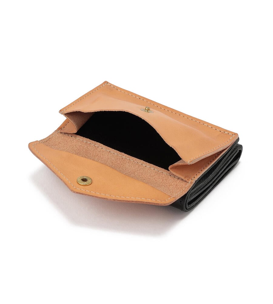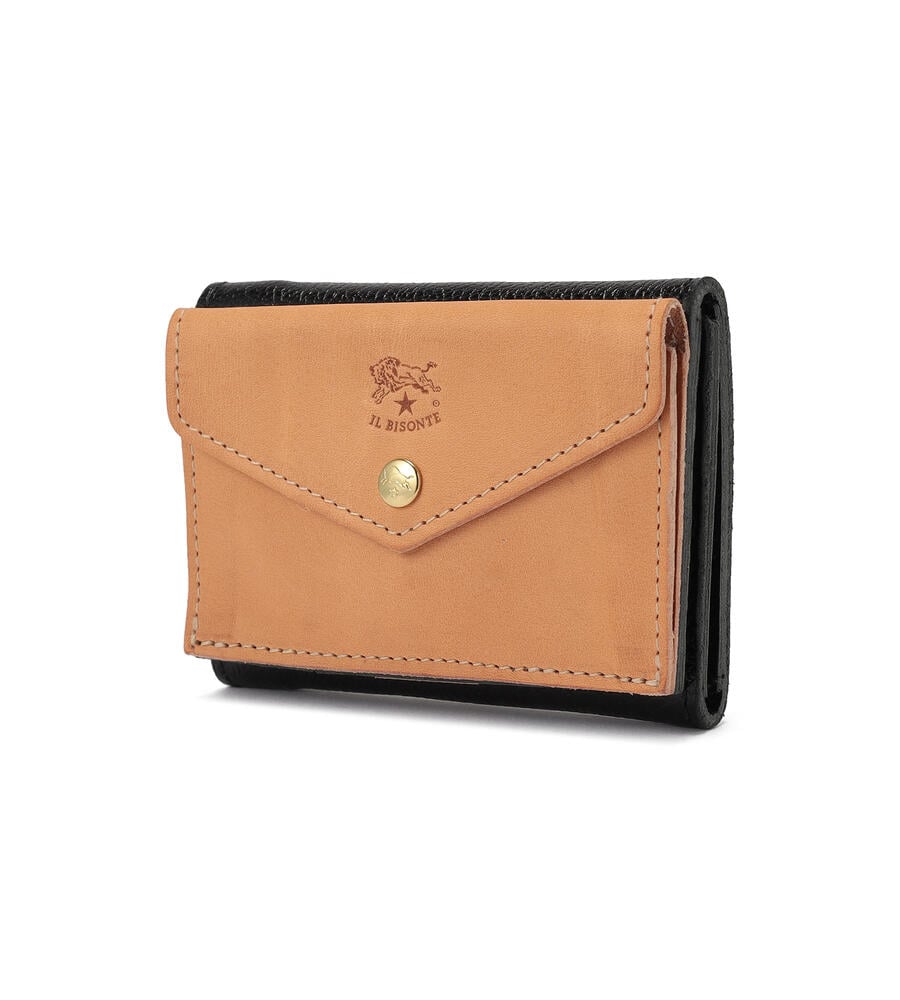 ブラックレザーにアイコニックなヌメ革のポケットを配した、遊び心あふれるデザイン。イル ビゾンテの職人技を活かした立体的なつくりは、ユニークな見た目と使いやすさを両立。ヌメ革ならではのエイジングもお楽しみいただけます。