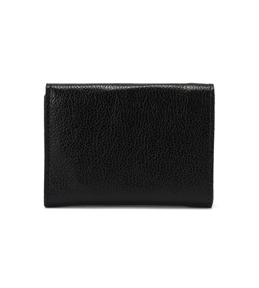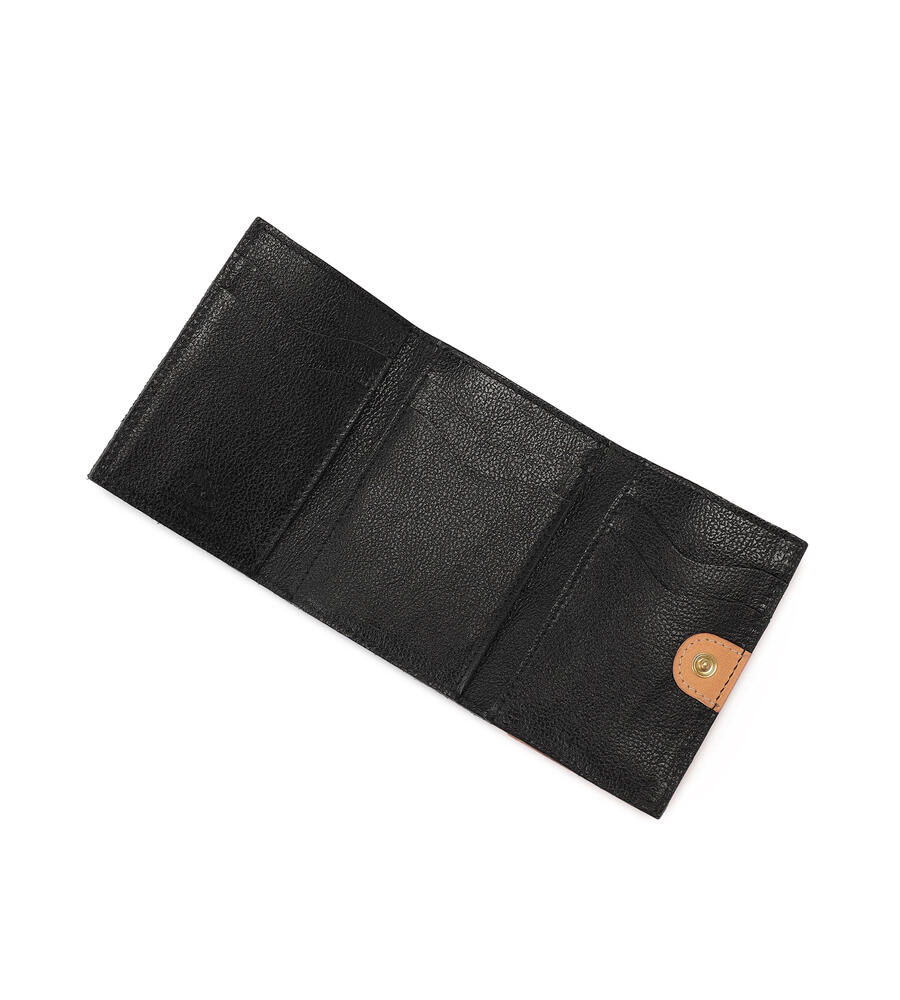 カラーが異なるコインケース部分がスタイリッシュなデザインの3つ折りウォレット。ブランドロゴの型押しがおしゃれなアクセント。マチのある小銭入れ、充分なスペースのあるお札入れとカード収納で実用性抜群のアイテムです。