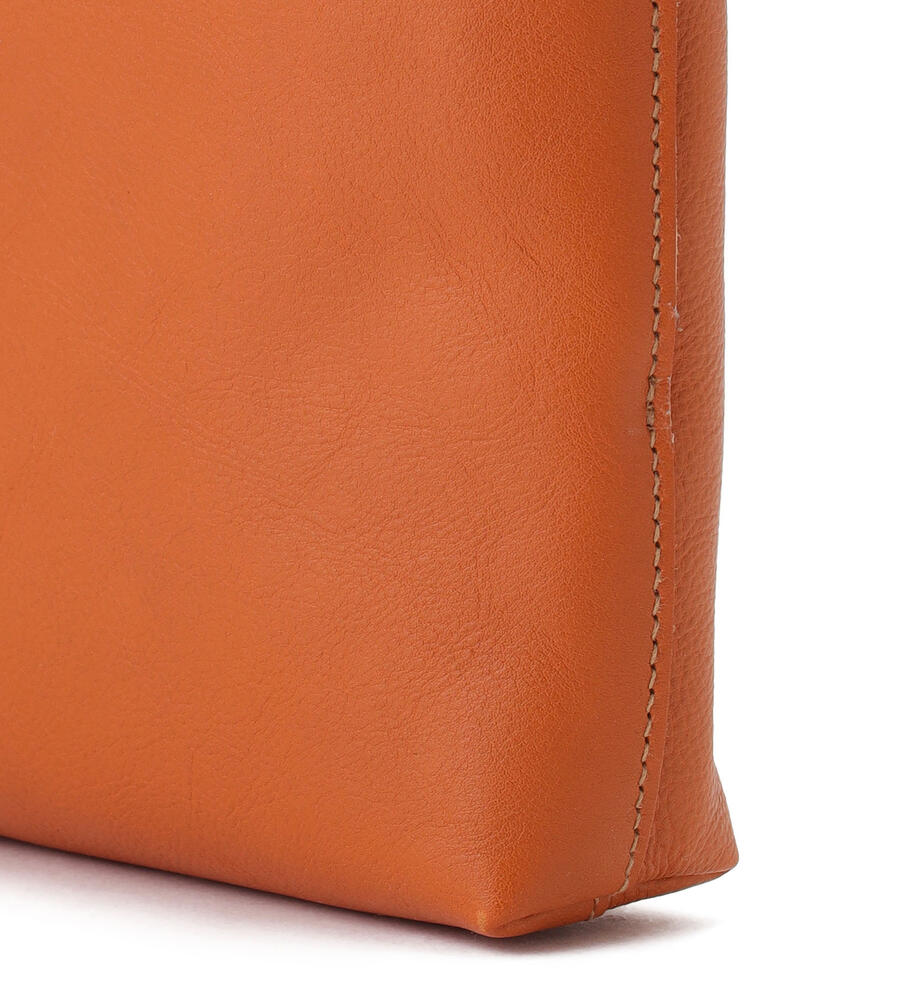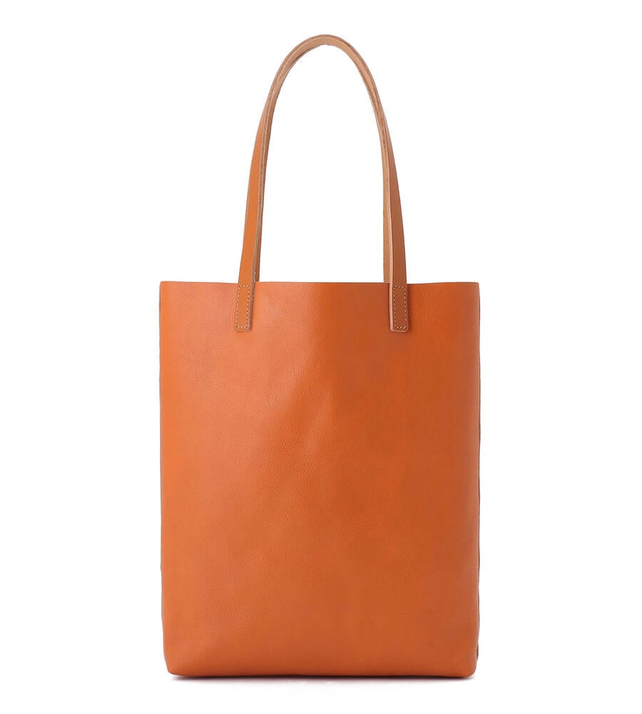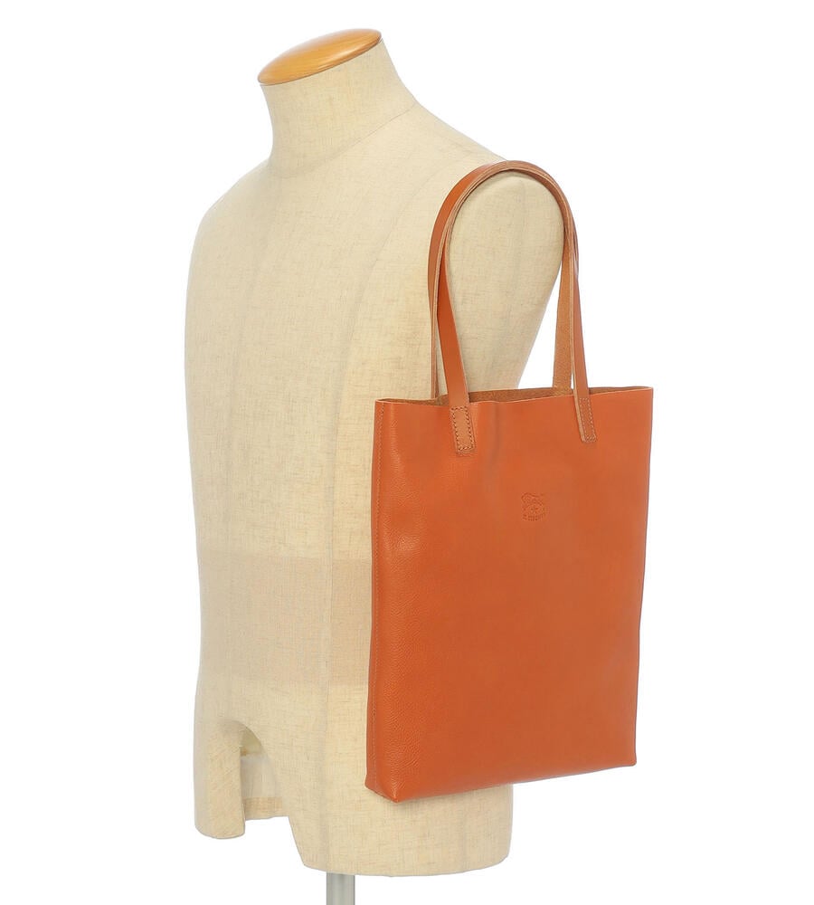 大きめのサイズ感ながらも薄型の作りですっきりと持ち運べるトートバッグ。ロゴマークの型押しをワンポイントにした、飽きの来ないシンプルなデザインです。手で持っても肩掛けしてもバランスが良いようこだわっています。