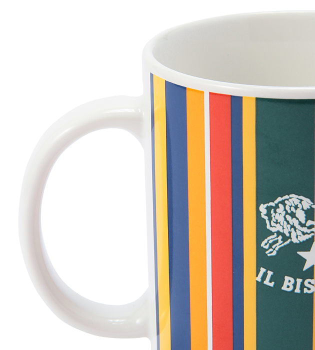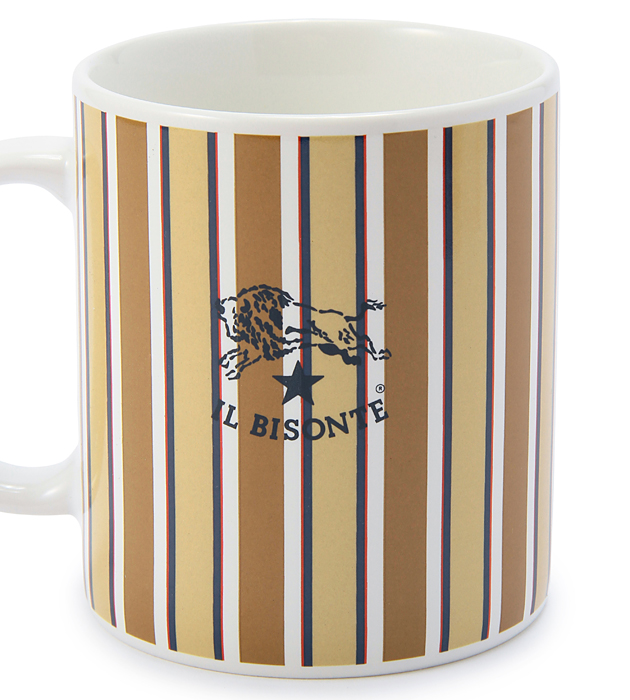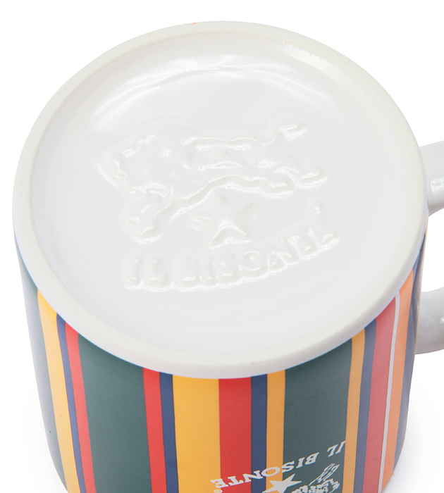 IL BISONTEオリジナルのストライプ柄マグカップです。底の部分にもモチーフがあり、ギフトアイテムとしてもおすすめです。