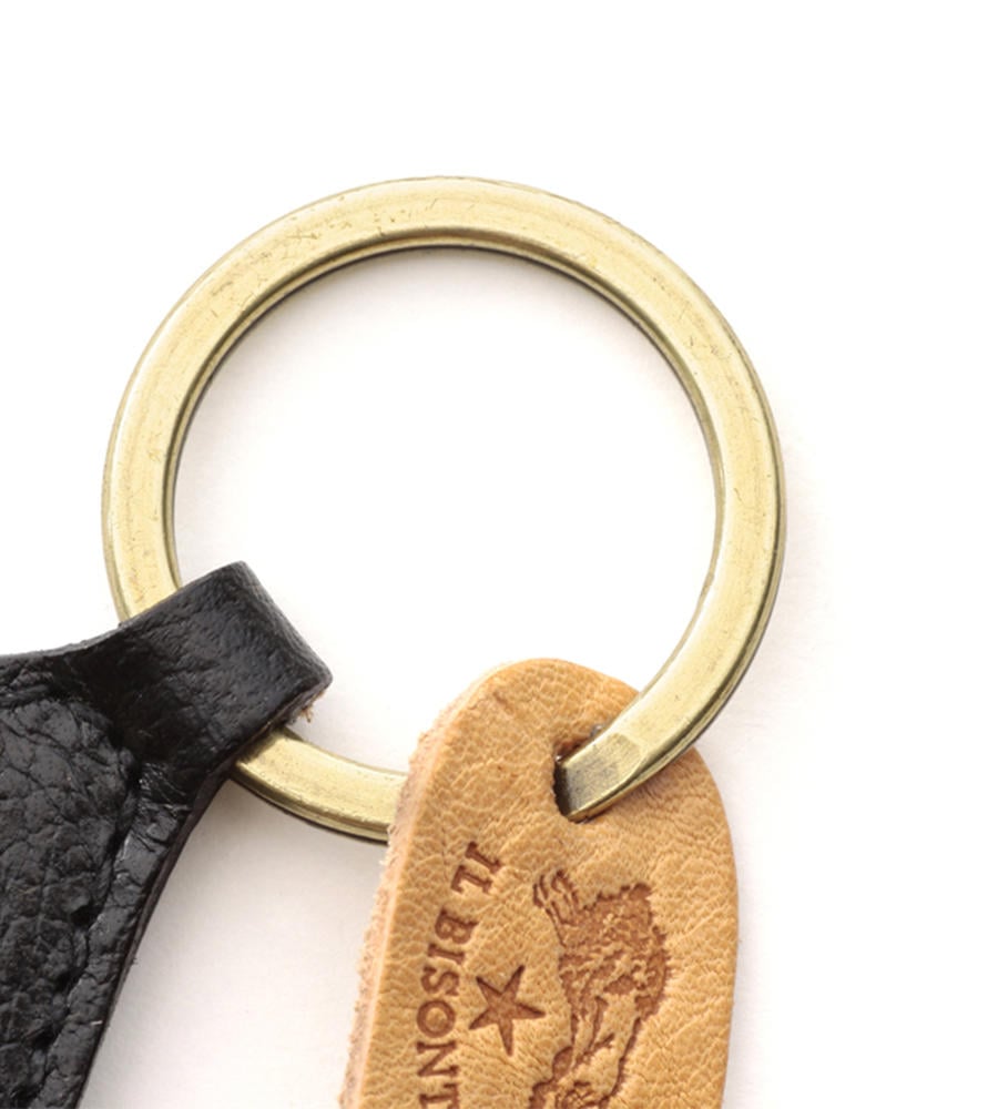 ブランドマークが中央で光るレザーキーリングです。小ぶりでシンプルなデザインなので、バッグの中でも邪魔になりません。手ごろな価格がプレゼントにもぴったり。