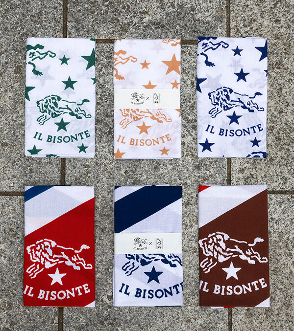 ランダムに配されたバイソンロゴ、イル ビゾンテを象徴するオーセンティックな柄と鮮やかな色彩で、暮らしの中にささやかな豊かさをもたらします。