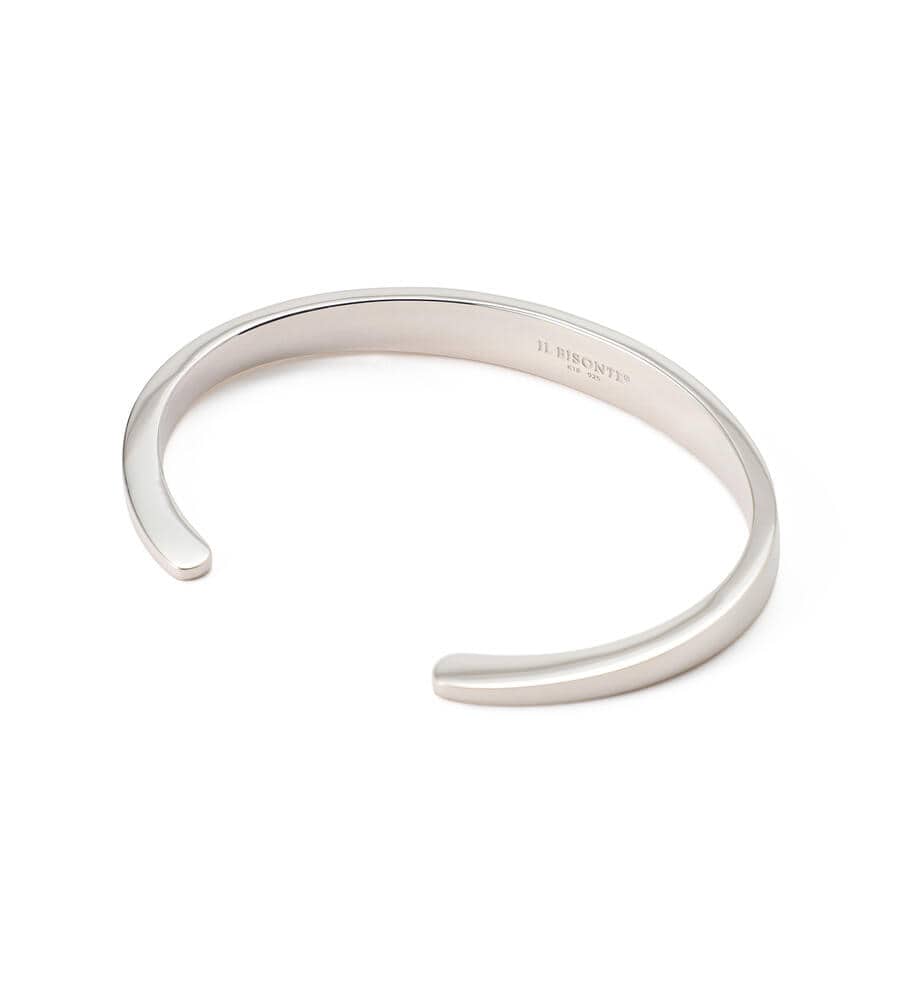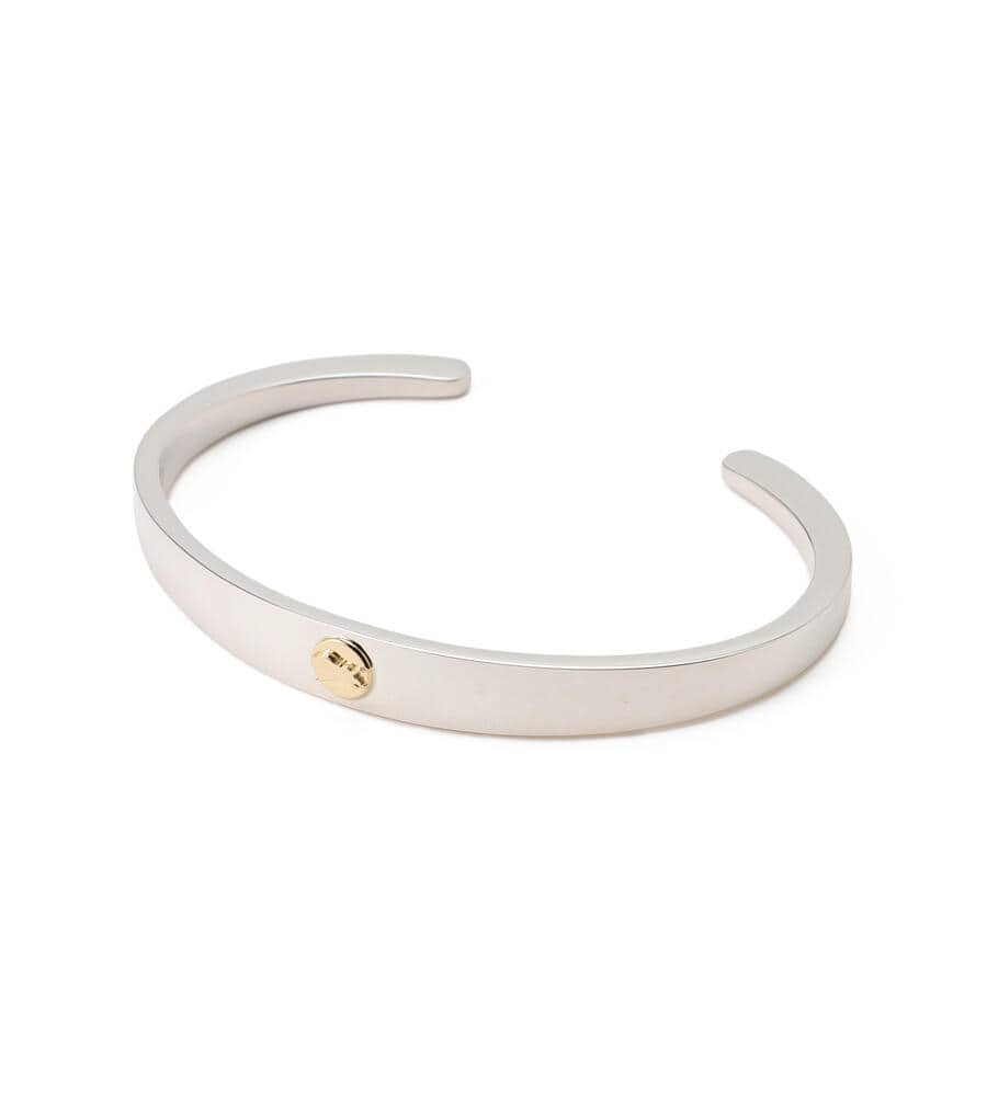 古代ローマの金貨や銀貨から着想を得て、コインを連想させる18Kの立体的なバイソンロゴを中央に配置したバングルはミニマルでありながら温かな印象。光沢のあるシルバーとゴールドを組み合わせ、洗練された美しいシルエットにデザイン。性別を問わず愛用でき、手元にエレガントでモダンなムードを添える逸品です。専用ケースとボックス付き。