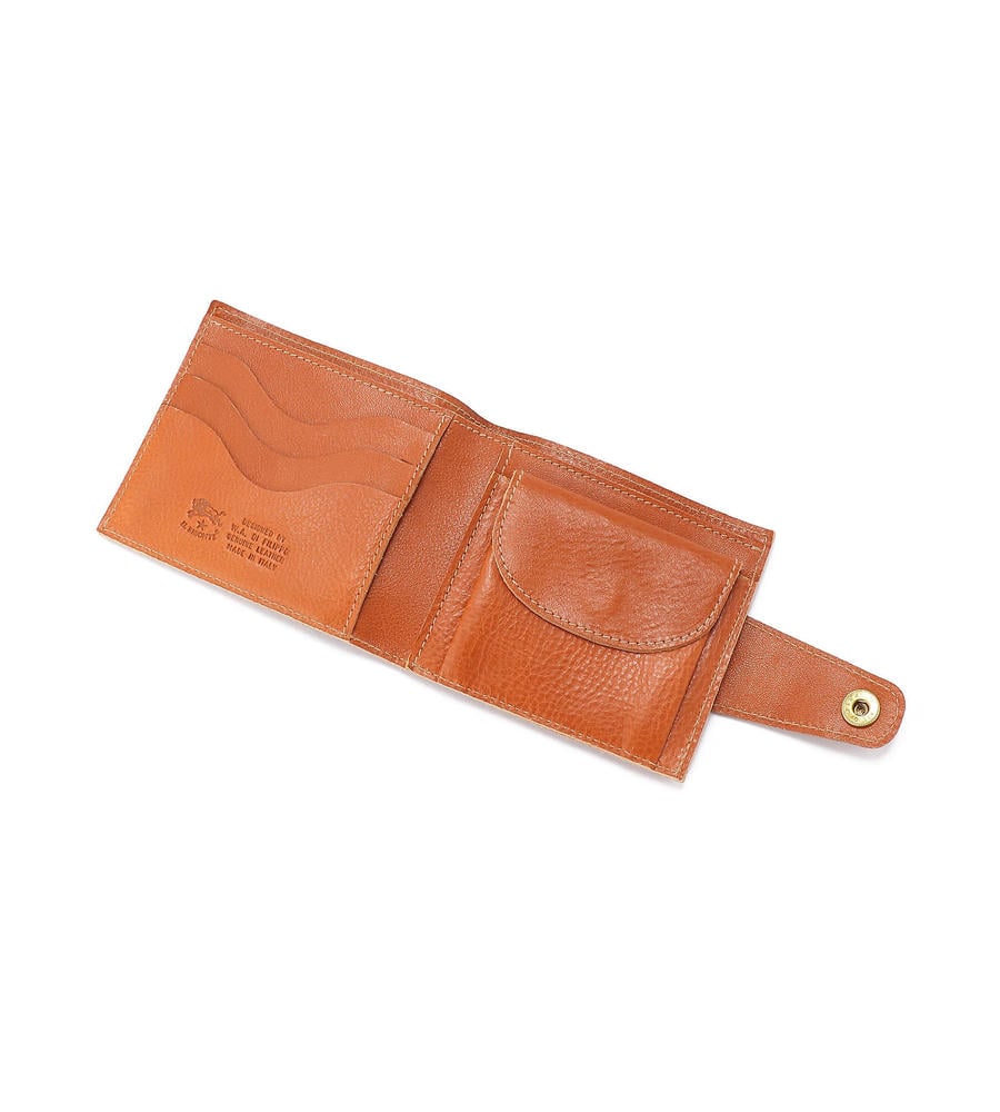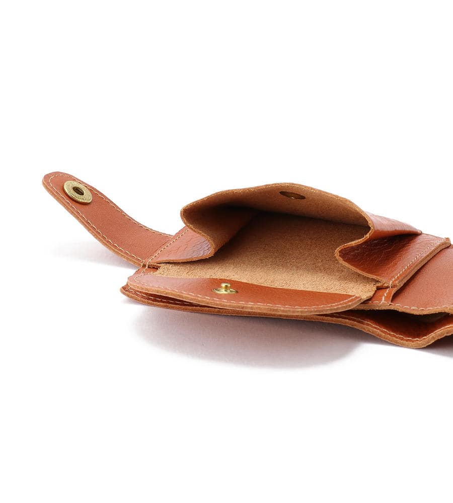 スリムなサイズで持ち歩きに便利な二つ折り財布。スナップを開くと立体感のあるコインポケットと、最低限のカードポケットを完備しています。トレンドのミニバッグにもスマートに収まる為、一つ持っていると重宝します。