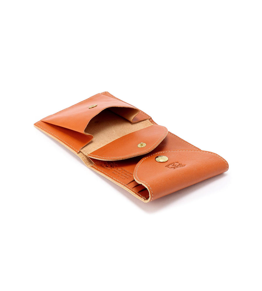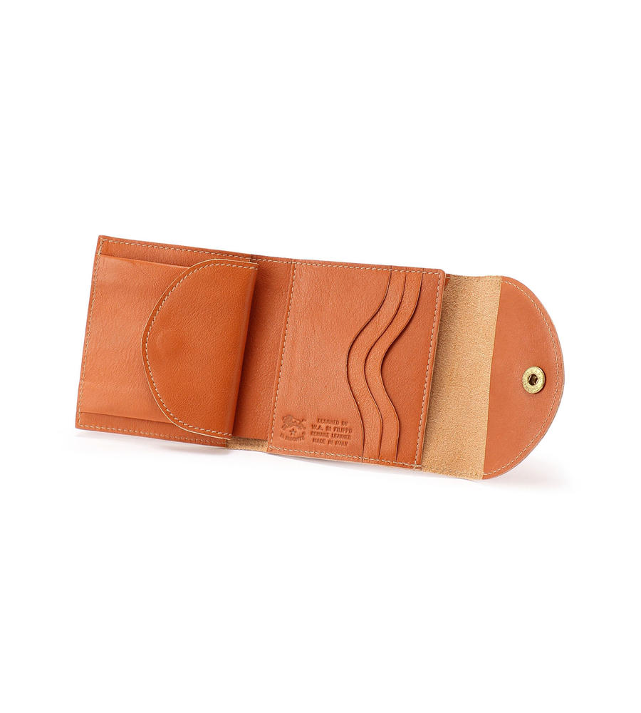 多彩な色展開を揃えたスモールサイズの2つ折り財布。フラップを開くと、小銭・札・カードの収納スペースが設置されています。ポケットや小さなバッグにも収まりやすく、必要最低限のものを機能的に持ち運ぶことができます。