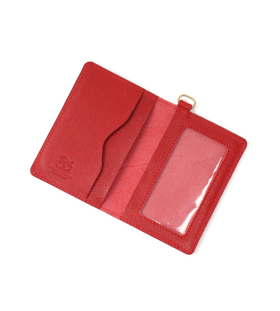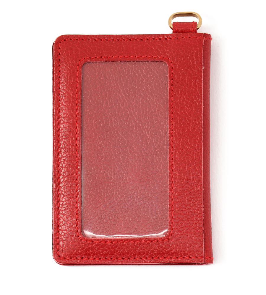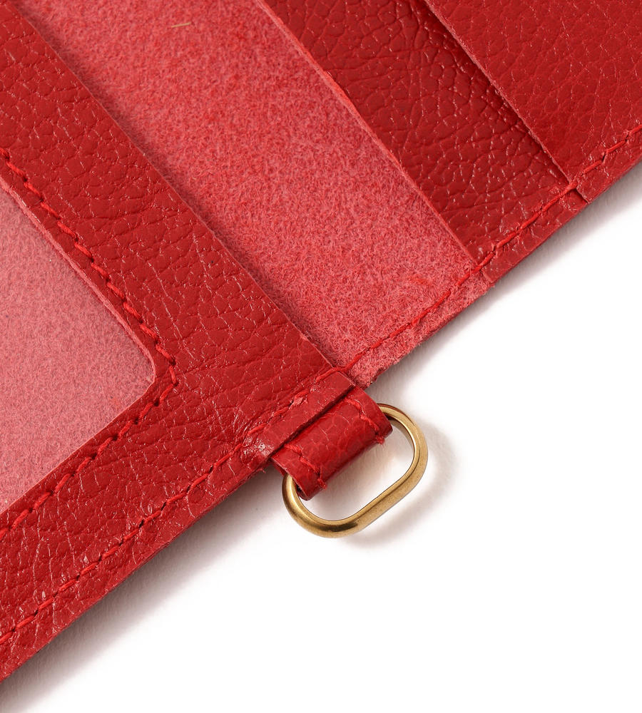 定期券等のICカードの他に通常のカードも収納可能なパスケース。表面と内側にさりげなくロゴを型押しし、こだわりを感じさせるアクセントに。さらにサイドにはストラップを掛けるためのリングも取り付けています。