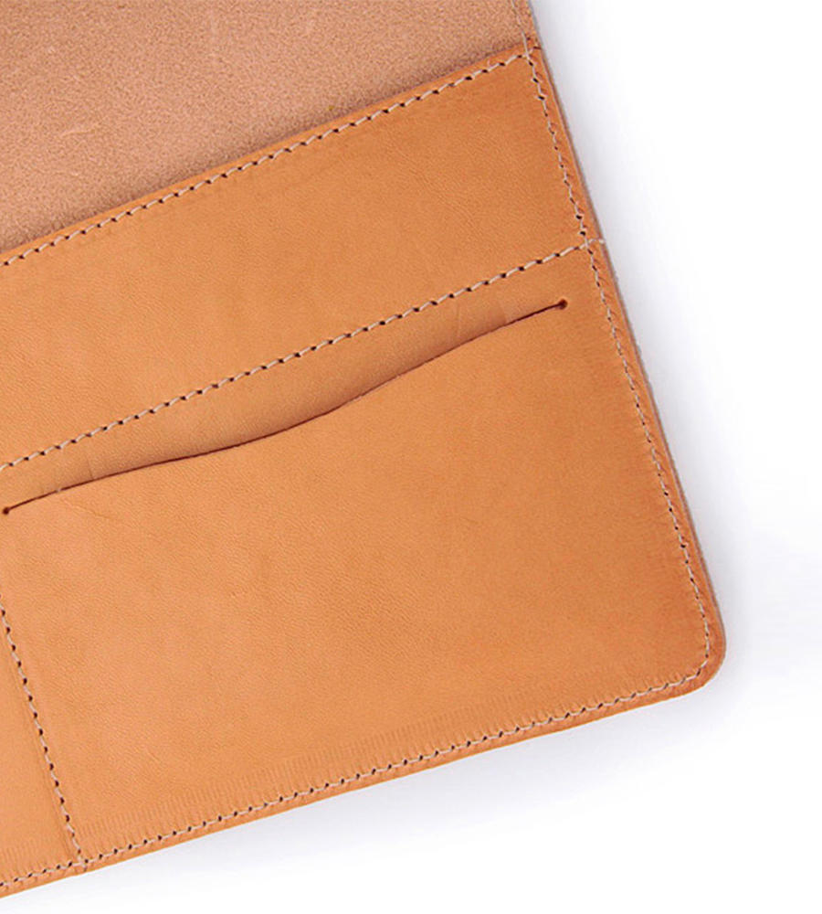 オリジナルレザーのA5サイズ用のノートカバー。ベジタブルタンニンなめしのレザーが手に馴染み、使うごとに愛着が涌いてきます。内側にはカード入れを配置しているので、ビジネスシーンで名刺を入れたりできるのも魅力です。