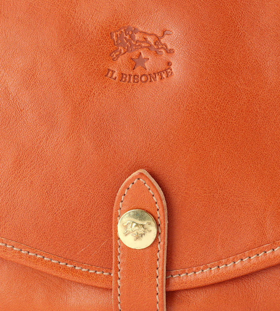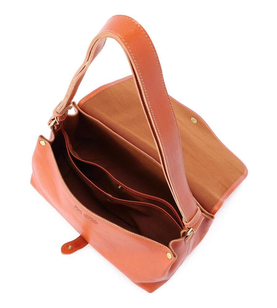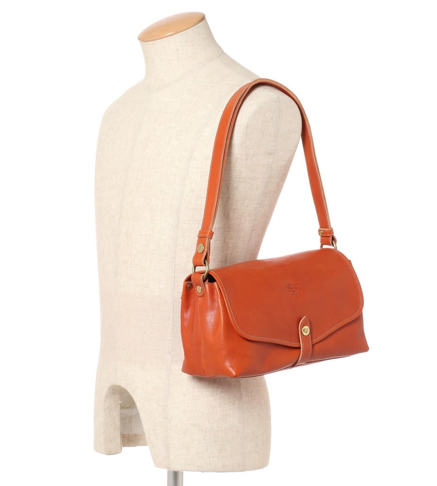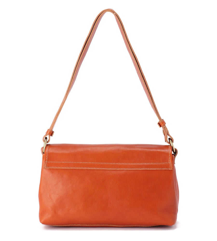 程良いサイズ感で見た目以上に収納力に優れたレザーショルダーバッグ。内側の中央には仕切りがあり、荷物をスマートに収納できます。フラップにはバイソンロゴの刻印を施し、クラス感のある仕上がりになっています。