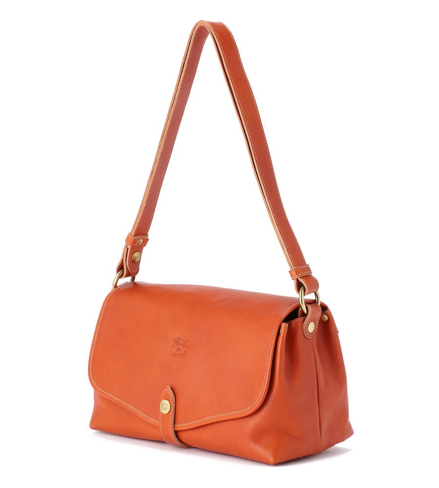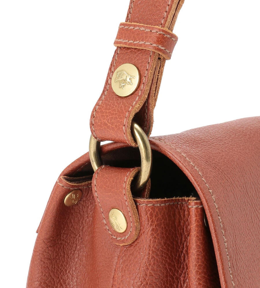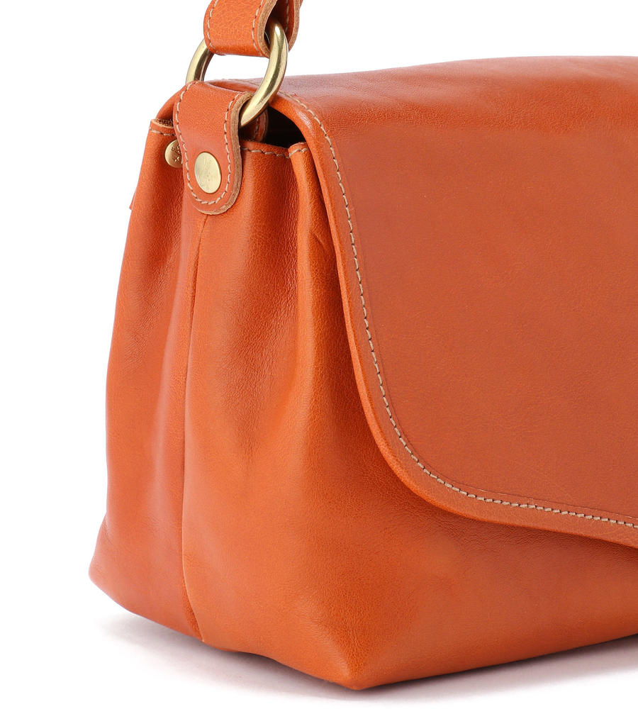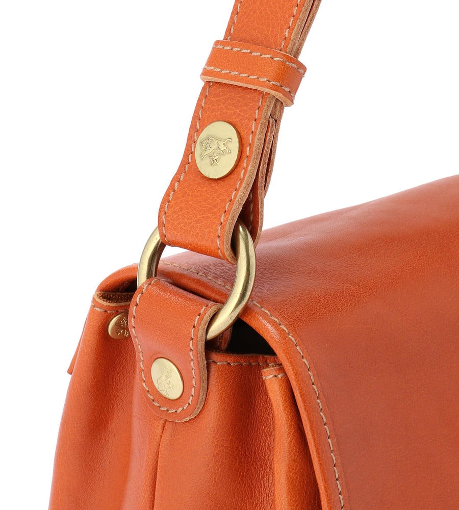 程良いサイズ感で見た目以上に収納力に優れたレザーショルダーバッグ。内側の中央には仕切りがあり、荷物をスマートに収納できます。フラップにはバイソンロゴの刻印を施し、クラス感のある仕上がりになっています。