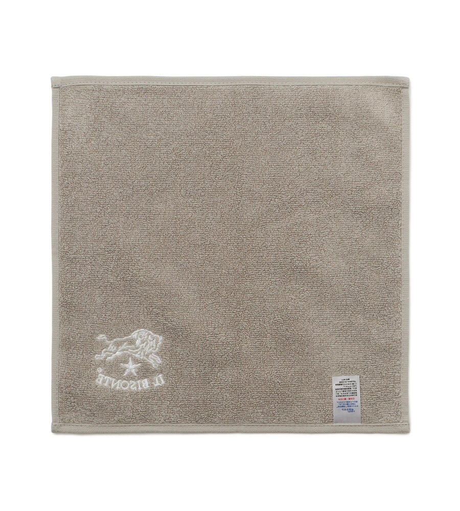 デイリー使いに最適なミニタオル。コンパクトに畳めるのでポケットの中でも嵩張りません。バイソンロゴ入りのデザインです。