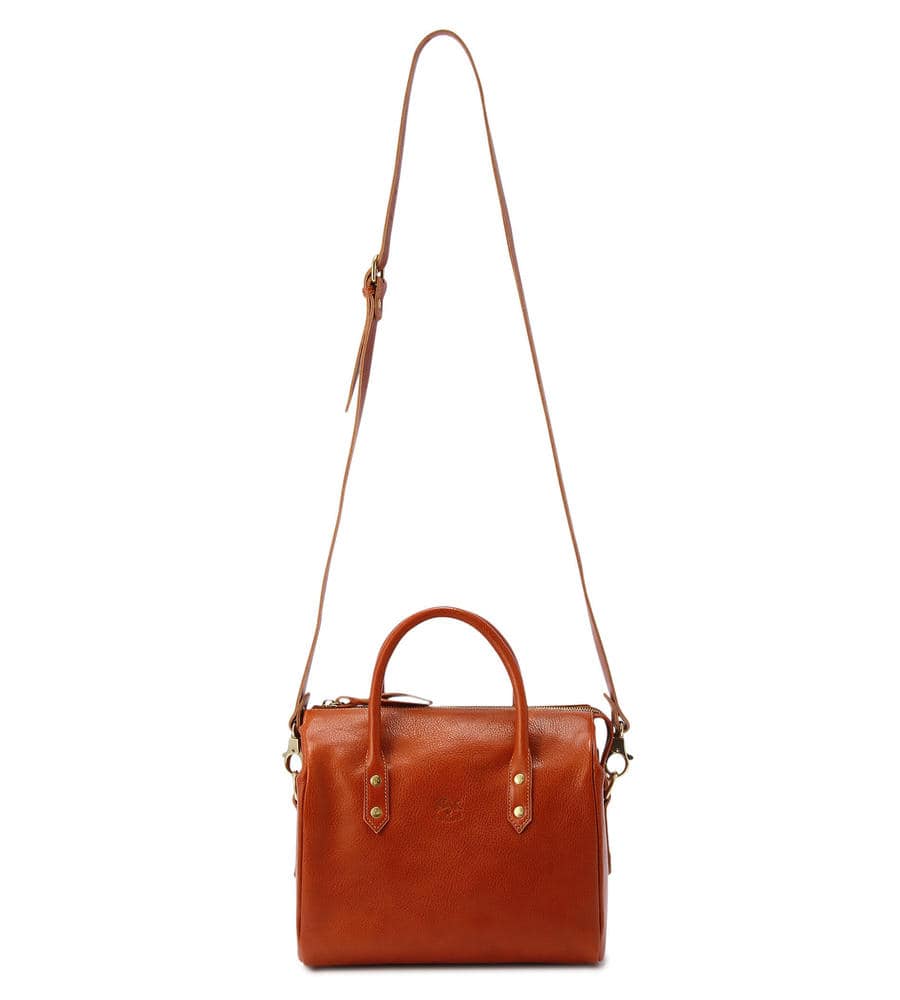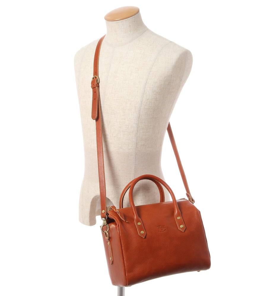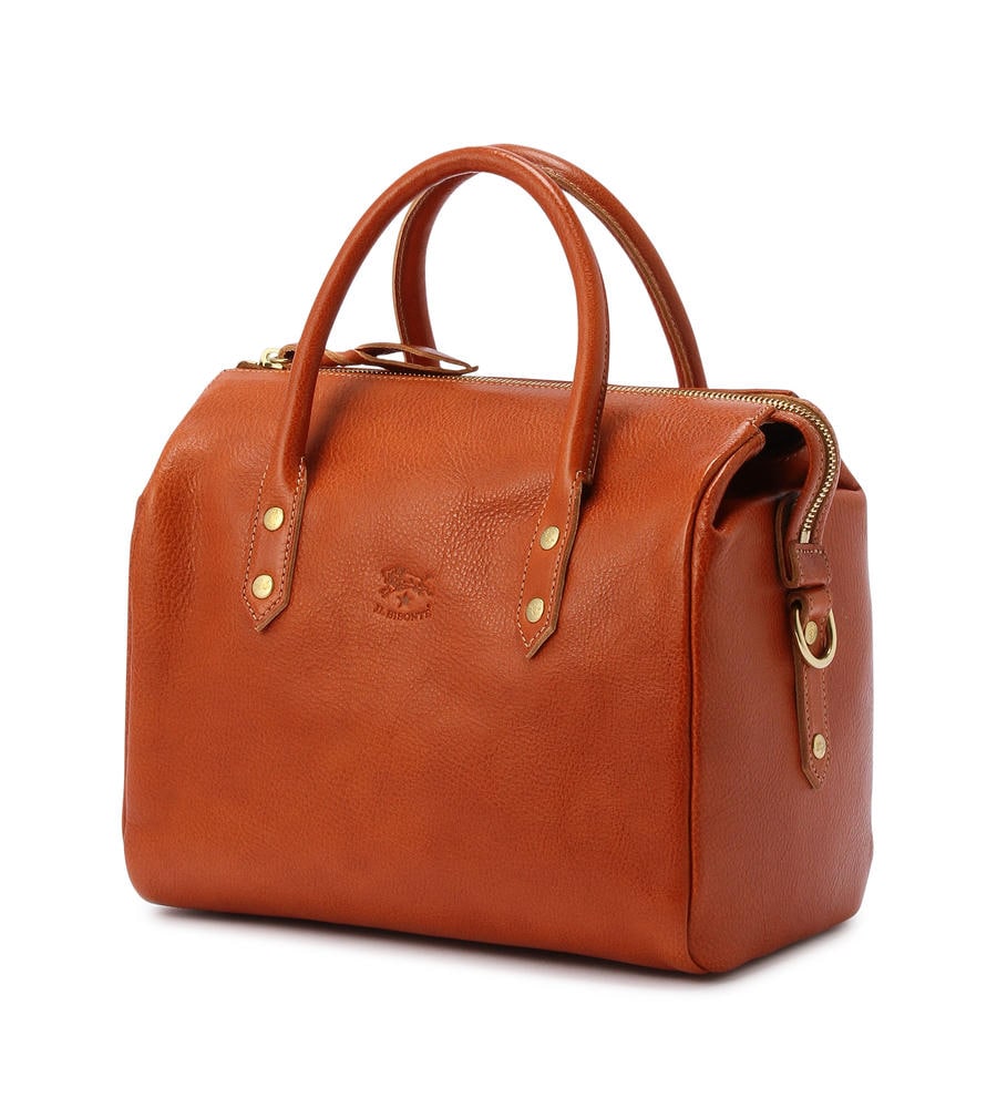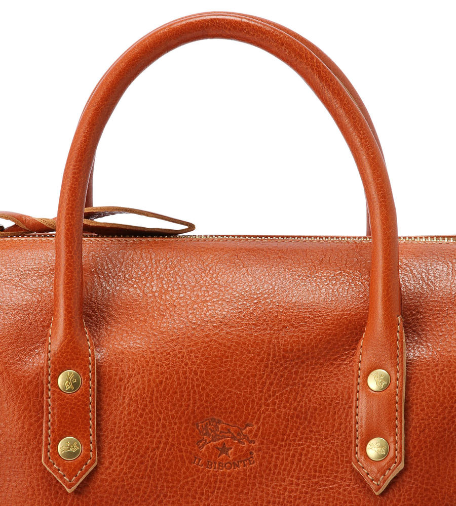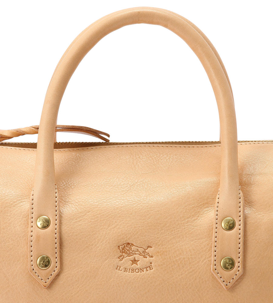 フロントに刻印されたバイソンロゴがポイントになったミニボストンバッグ。ショルダーベルトはスタイルに合わせて取り外しが可能になっています。収納力が高いマチつきデザイン、中身が見渡せるファスナー開きと、実用性も備えた設計になっています。