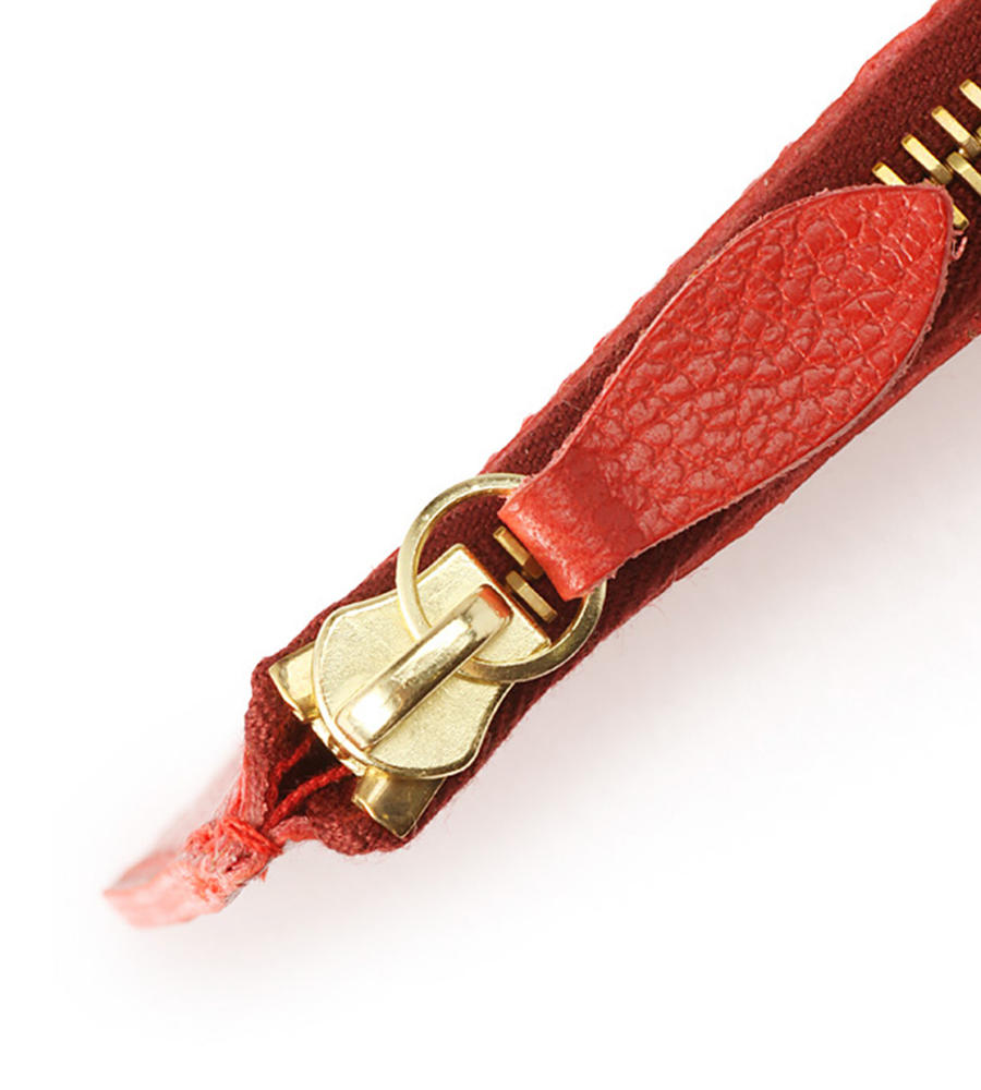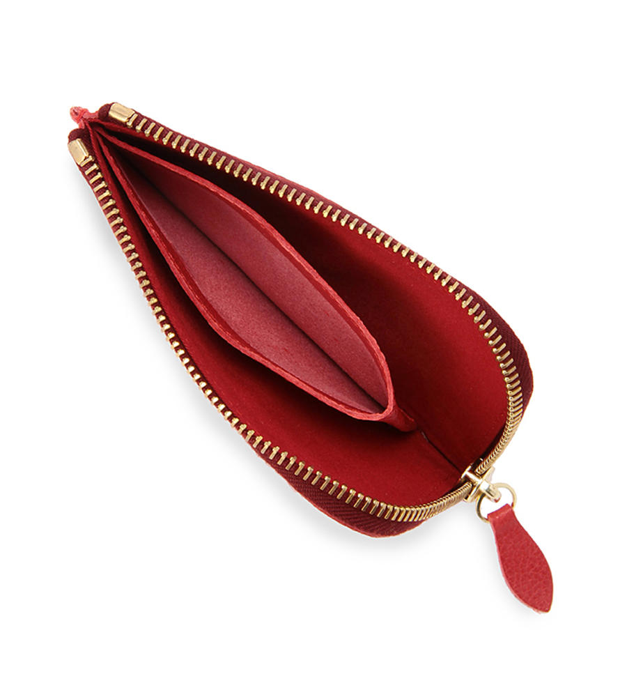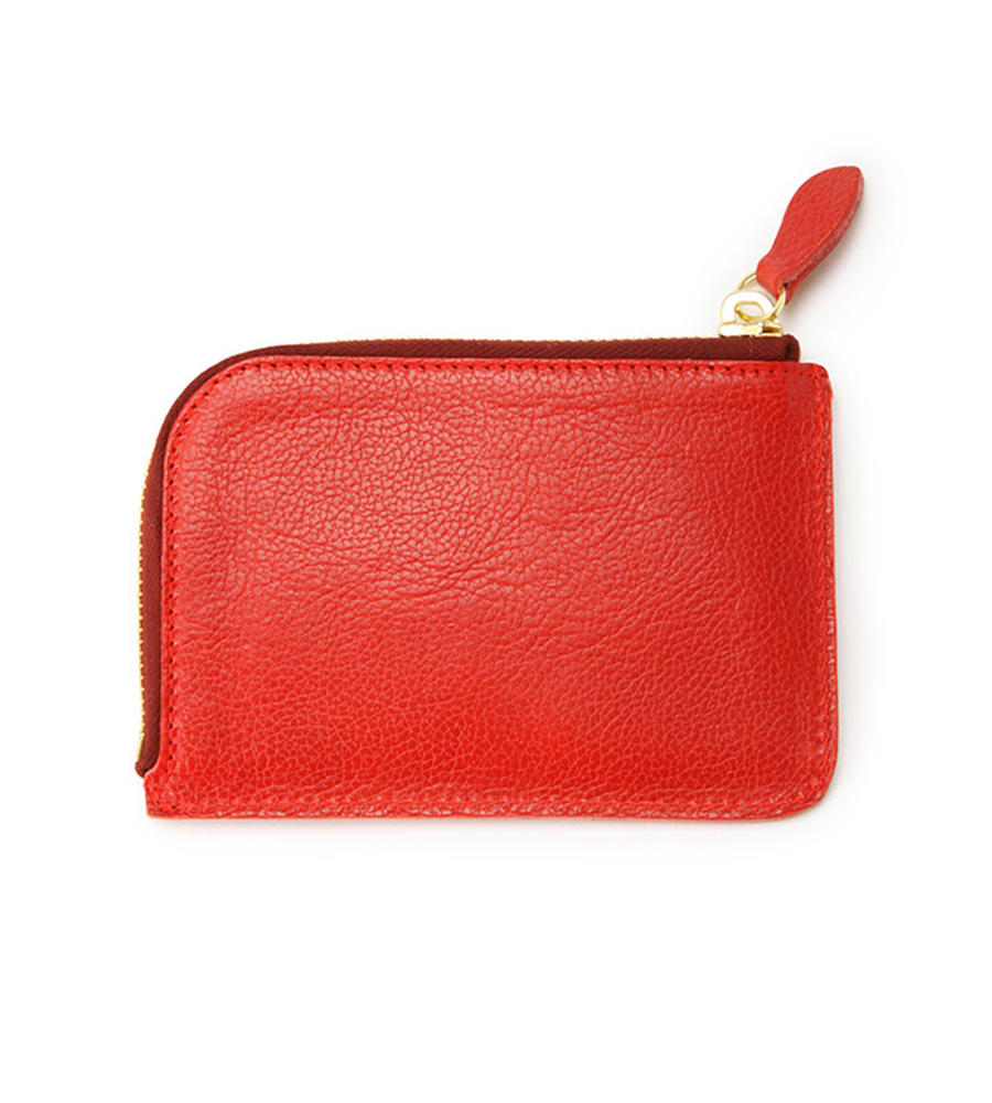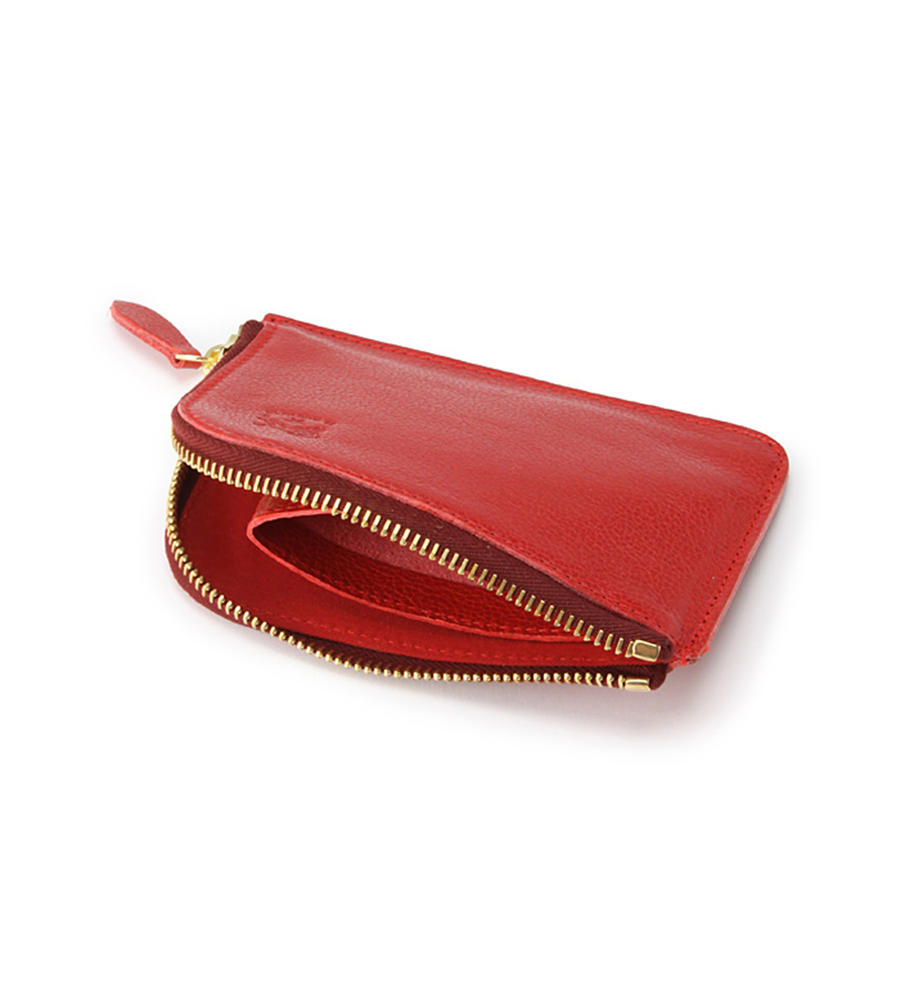 カードや二つ折りにしたお札も収納できる薄型のウォレットです。ジップが大きく開いて中身が取り出しやすく、内側には小銭入れにもなるポケット型の仕切りがついているので機能面も充実しています。