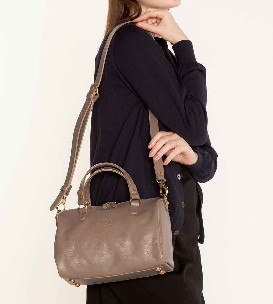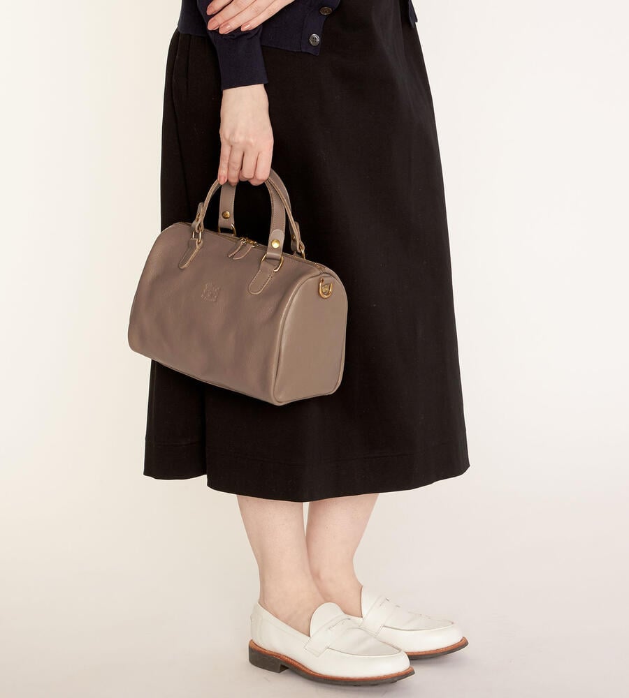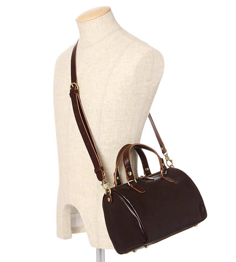 ほどよい大きさのボストンバッグは、取り外し可能なストラップ付きの2WAYタイプ。ダブルスライダーで開け閉めしやすく、内部にはジップつきのポケットがあります。ストラップは7段階に調節できます。