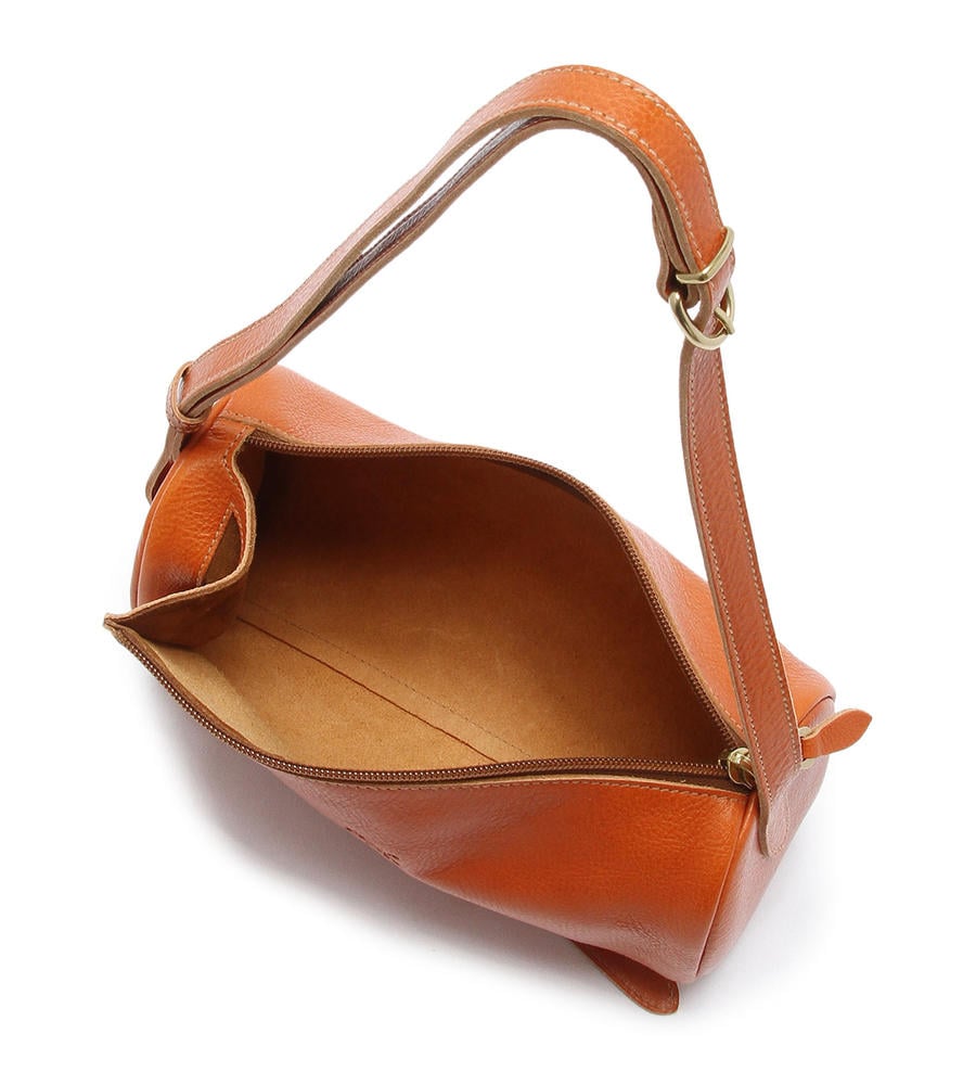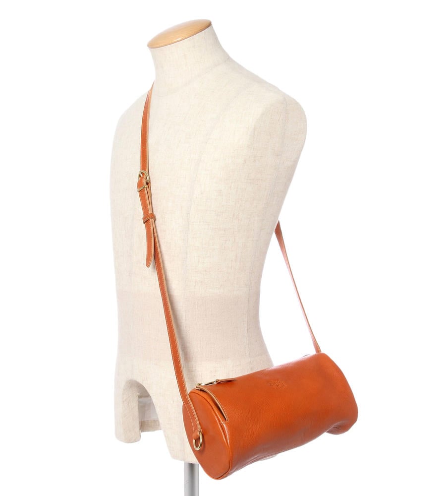 丸みのあるドラム型が斜め掛けを愛らしく演出するバッグです。開口部のサイドにマチを持たせ、荷物の出し入れをスムーズにアシスト。バケッタレザーの風合いを活かしたシンプルなフェイスは、コーディネイトを問わず幅広く合わせて頂けます。旅行にも最適です。