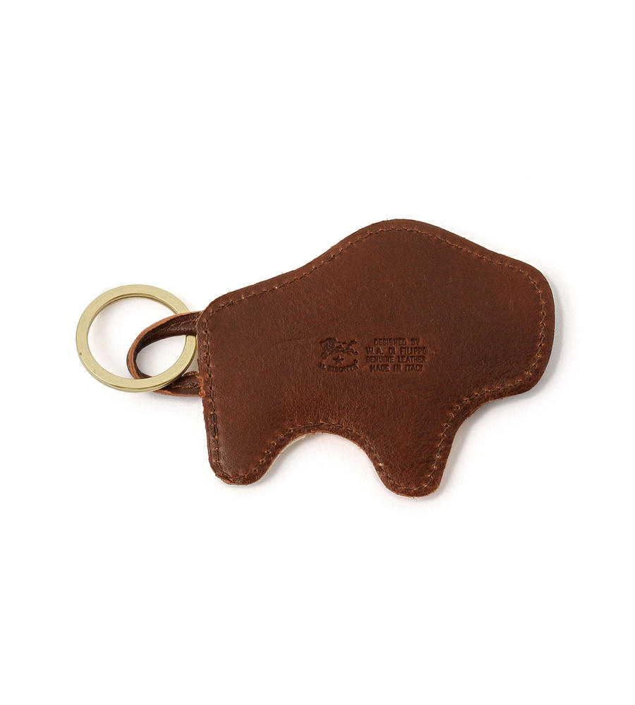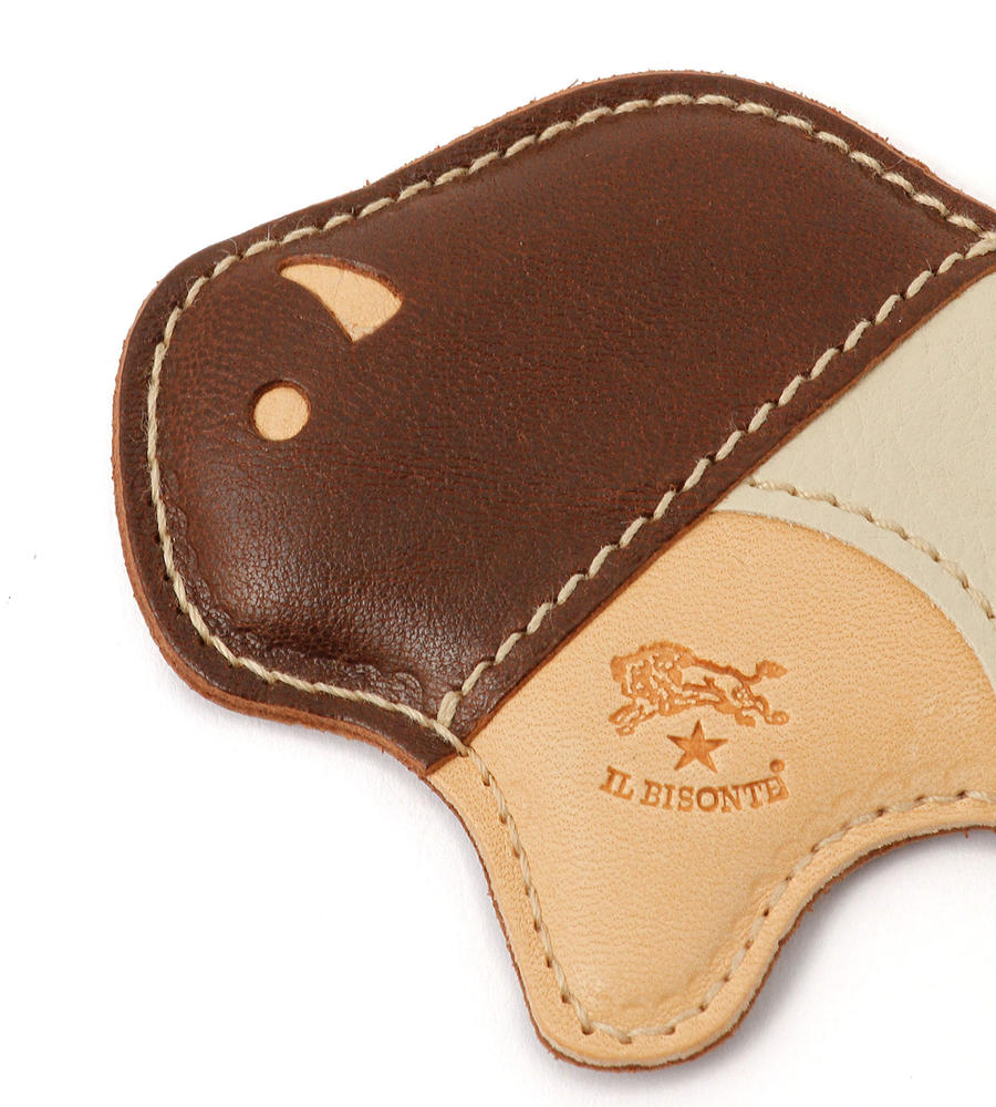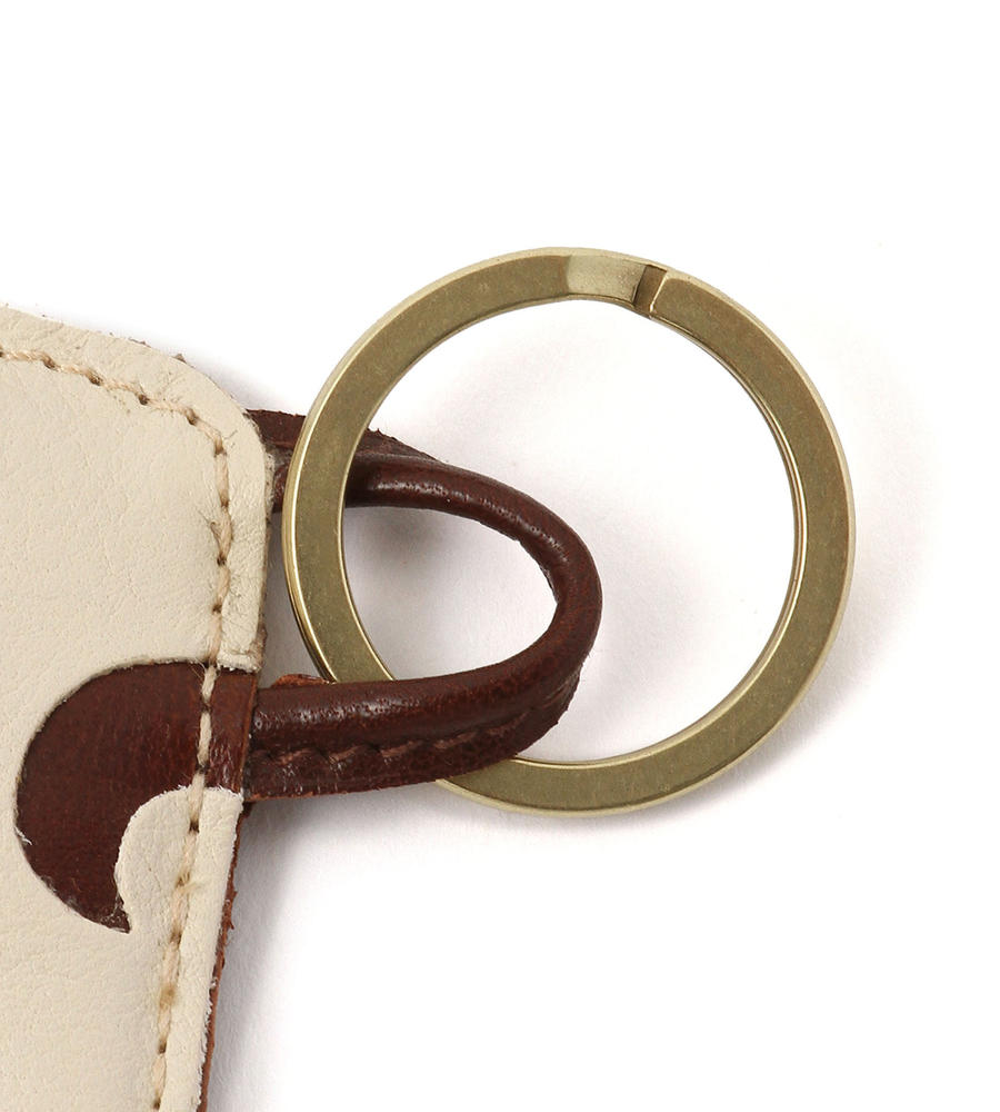 ユニークなアニマルモチーフのキーリングです。上質なレザーをミックスし、今年らしい配色も効かせています。お腹部分のエンボスロゴがさりげないアクセント。どこかヴィンテージ感のあるリングの質感もポイントです。