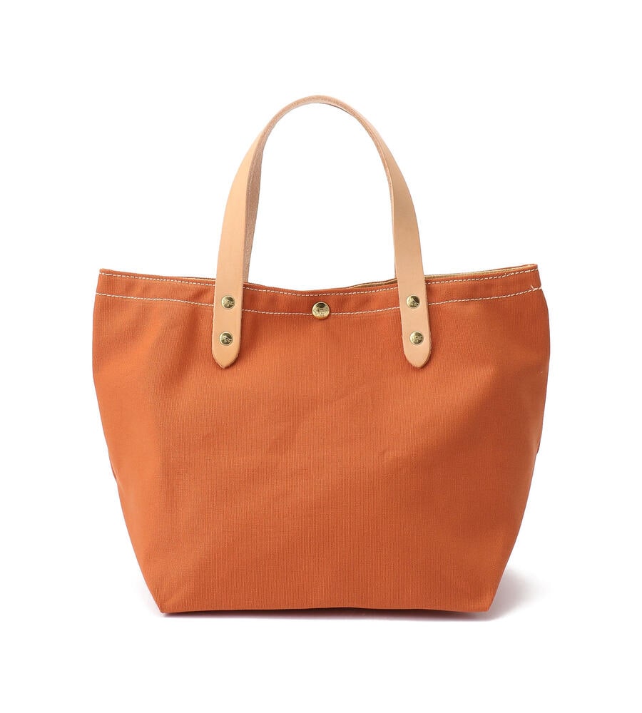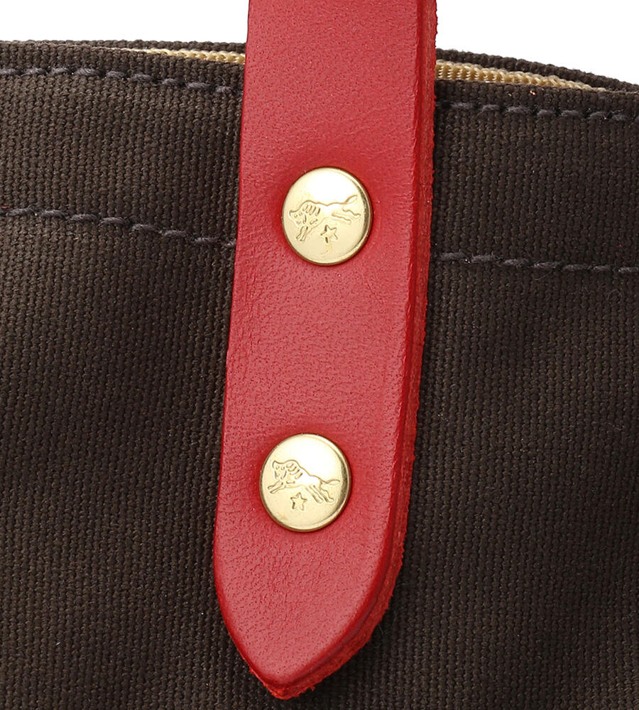 手描きのイラストがプリントされたコットン地のトートバッグ。ハンドルとブランドロゴ入りのタグはレザーを使用し、異素材のコンビで新鮮な表情に仕上げています。間口はスナップボタン仕様。マチつきフォルムで収納力も満足度大。