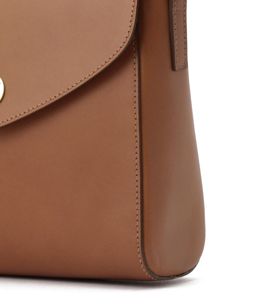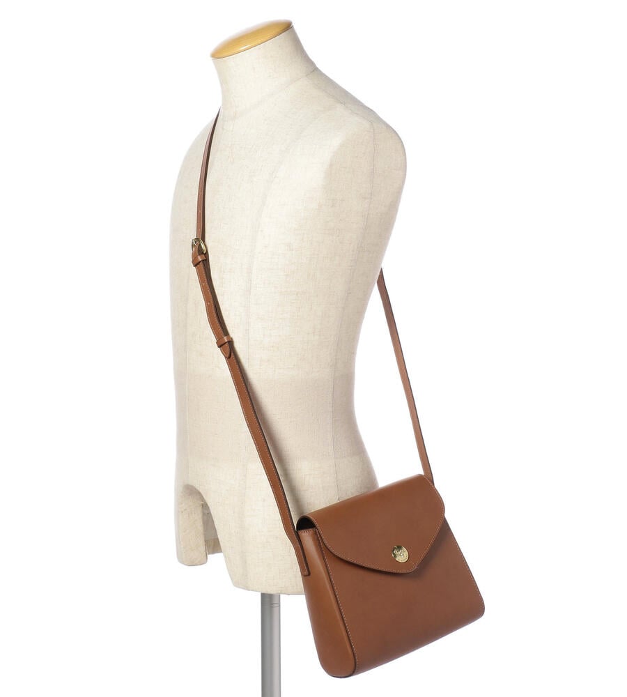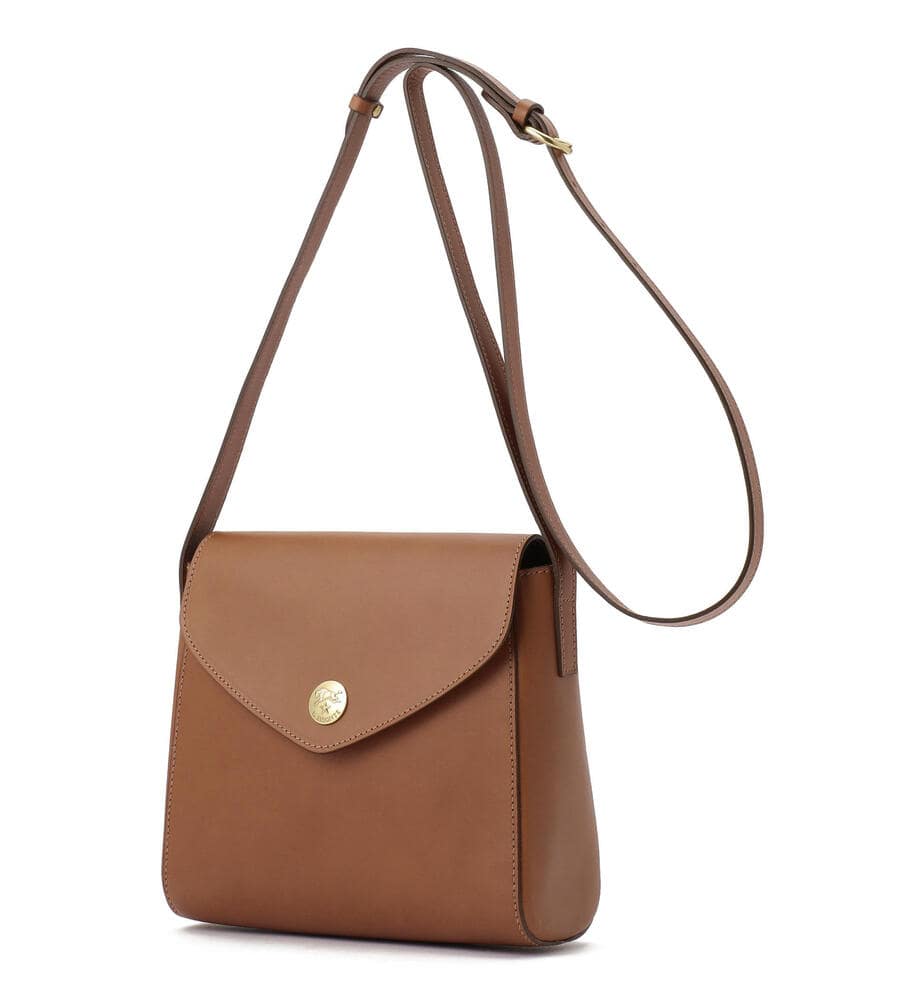 バイソンロゴ入りのゴールドボタンでリュクスな雰囲気を漂わせたクロスボディバッグ。底をカーブで仕上げたフォルムが特徴的なデザイン。フラップはマグネット仕様で開閉もスムーズ。ショルダーはお好みの長さに調整が可能です。