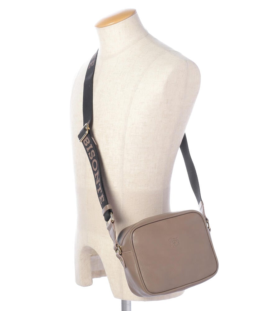 フロントにバイソンロゴの型押しがほどこされたスクエアフォルムのクロスボディバッグ。間口はジップクロージャー仕様。ショルダーベルトにはブランドロゴをあしらい、モダンな表情に仕上げています。ゴールドの金具使いでリュクスなエッセンスをプラスしたアイテムです。
