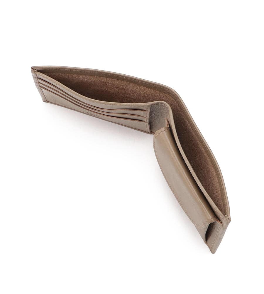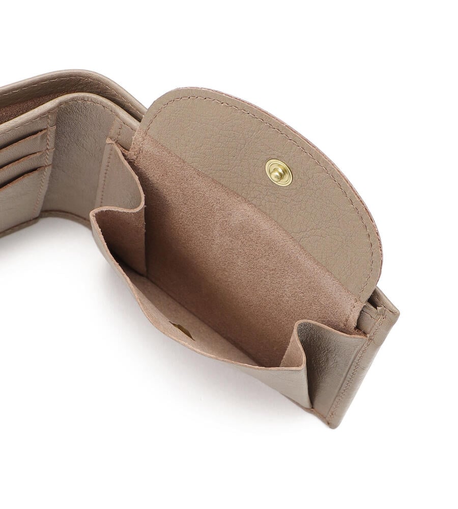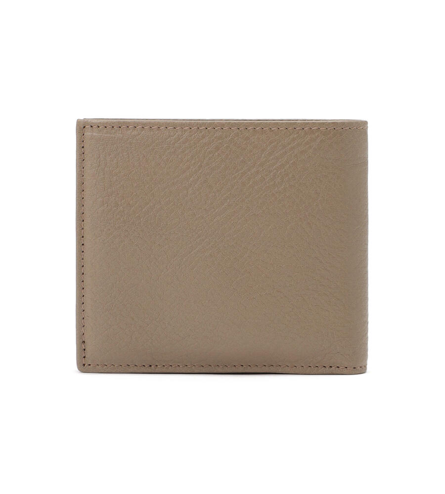 フレッシュなインパクトとなるサークルロゴの型押しがあしらわれた2つ折りウォレット。フラップコインケース、カードホルダーと札入れを備え、コンパクトながらも必要最小限をしっかり収納できる仕様となっています。