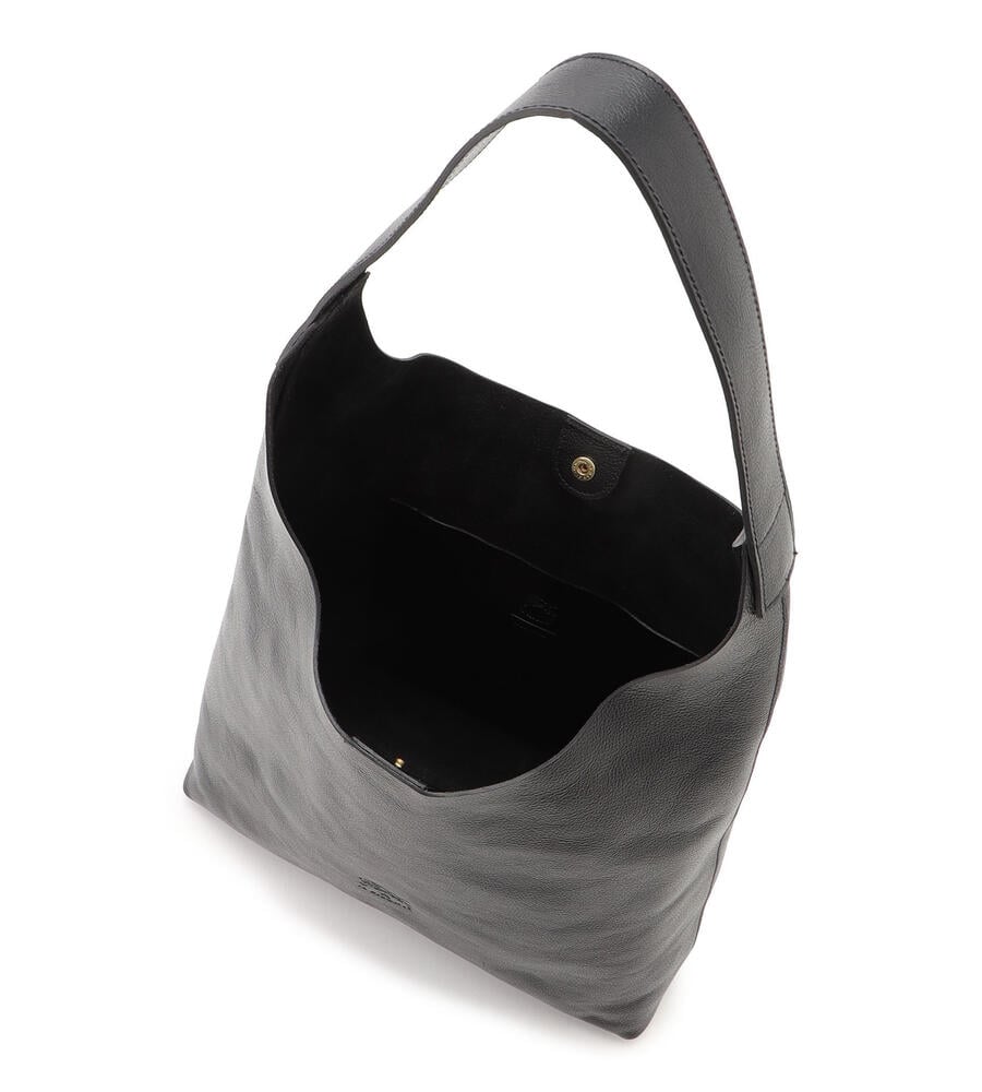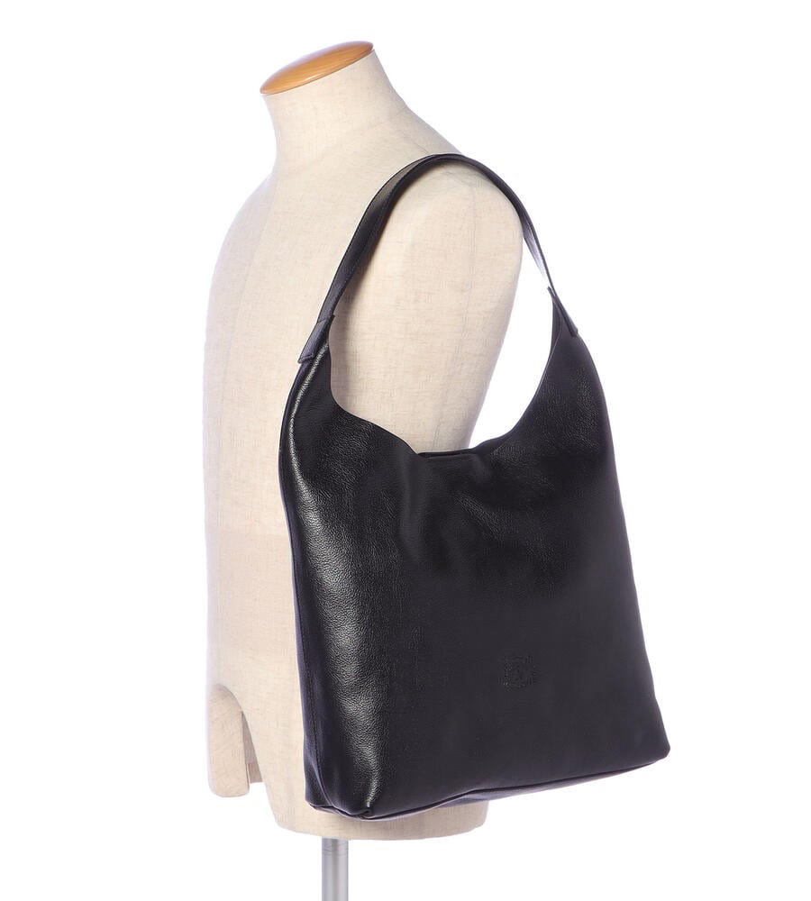 使うほどに風合いが出る、上品なカーフスキンで仕立てられたショルダーバッグ。ブランドロゴの型押しがスタイリッシュなワンポイント。開閉はシンプルなスナップボタン式。中面は大きめポケット付きで小物の整理がしやすく、機能面も優秀。マチがあり充分な収納力で、様々なシーンにマッチする便利なアイテムです。