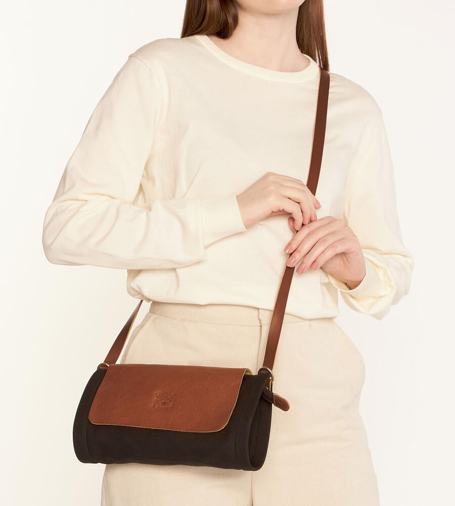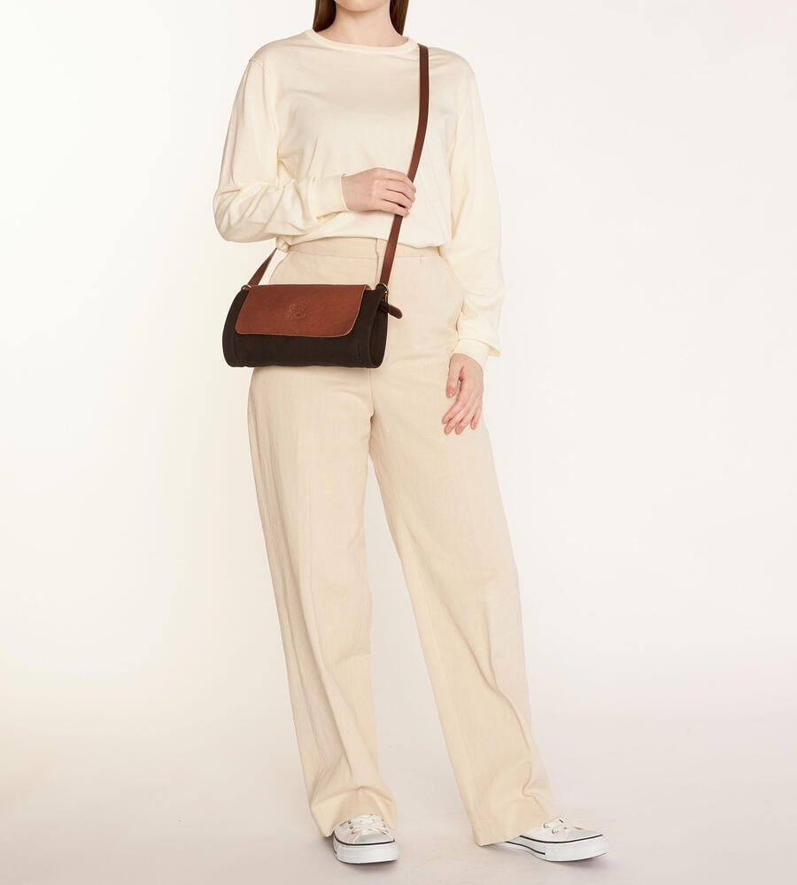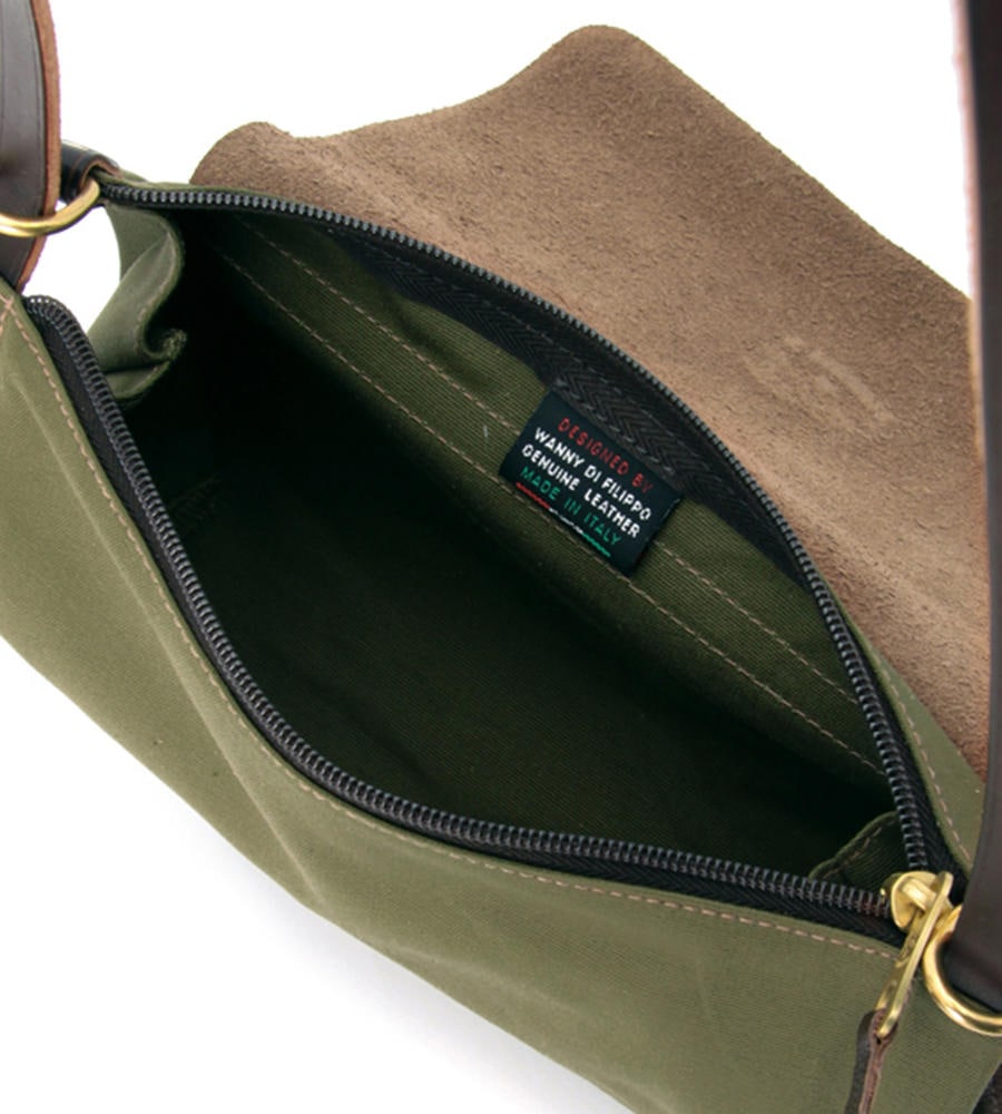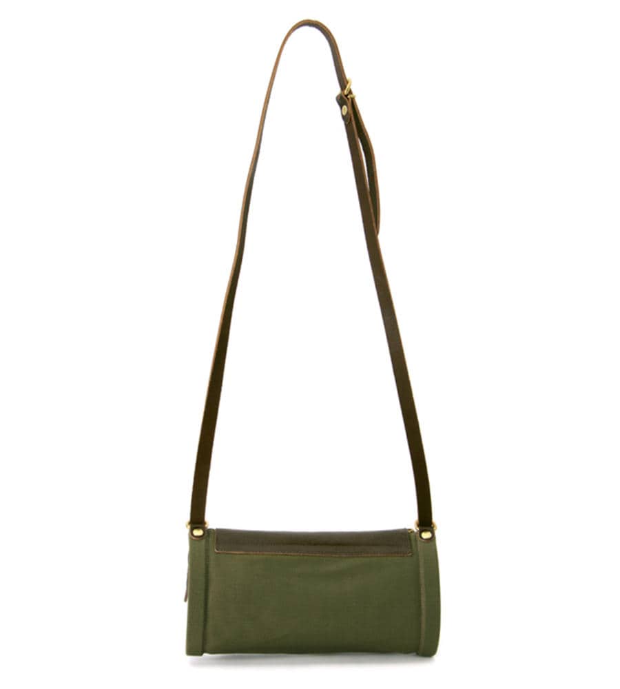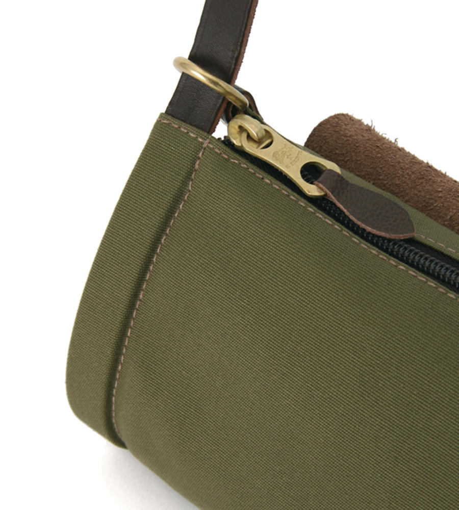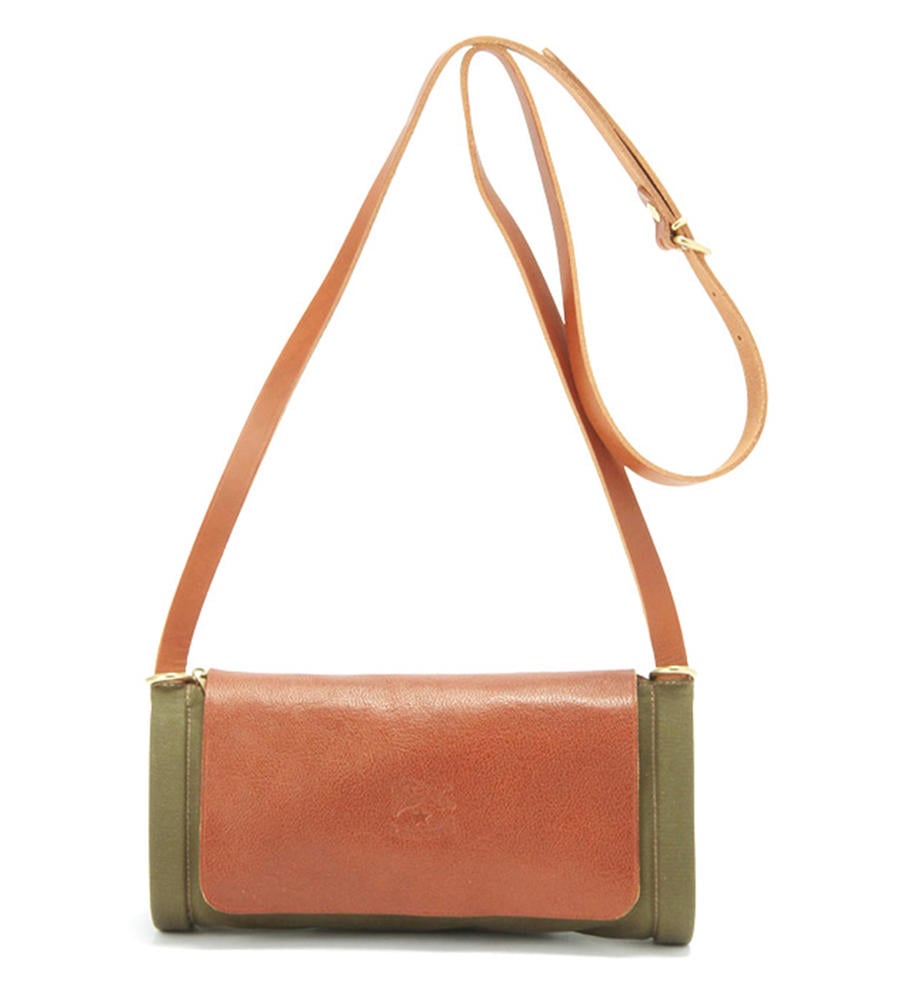 キャンバスの筒型バッグは、イルビゾンテを代表するロングセラーバッグの1つです。開口部はジップで開閉できるので、物が落ちる心配がありません。コロンとした小ぶりなサイズで、ちょっとした外出にも持ちたくなるキュートなバッグです。