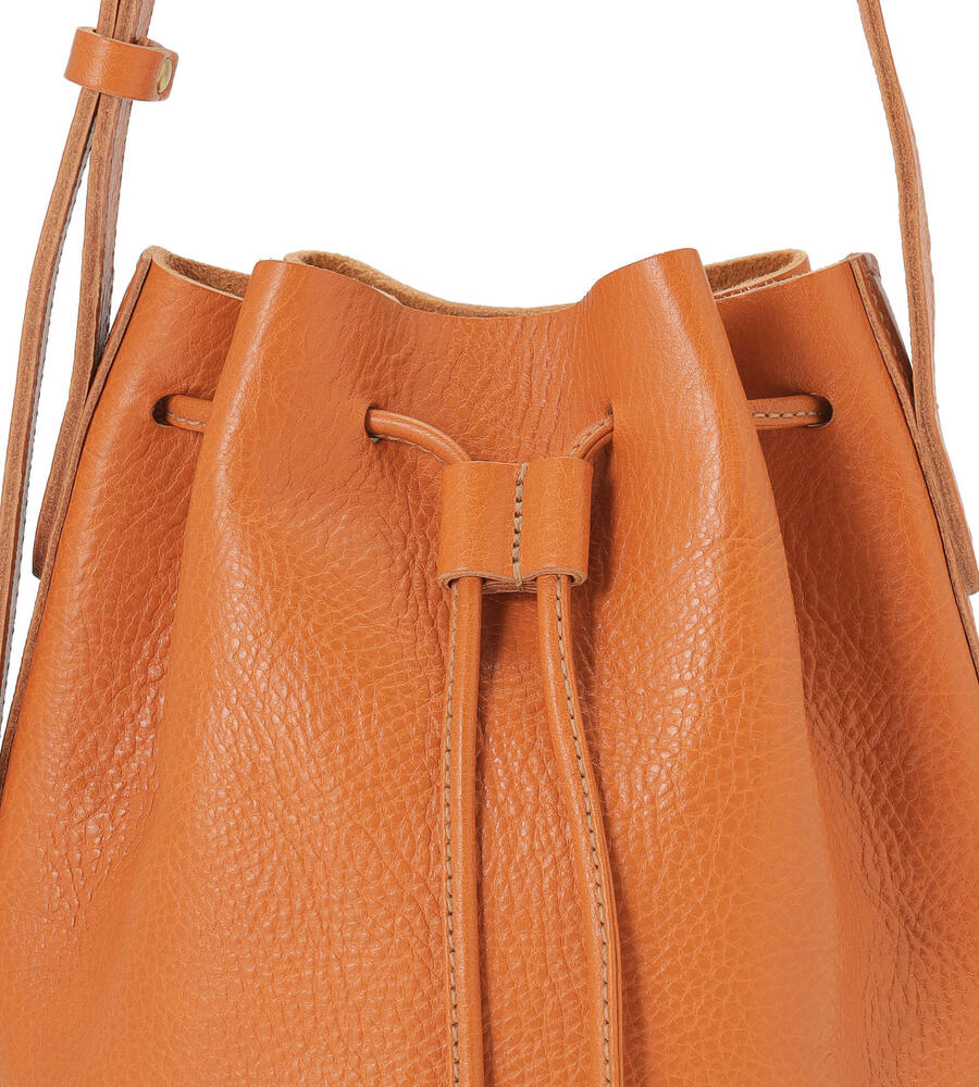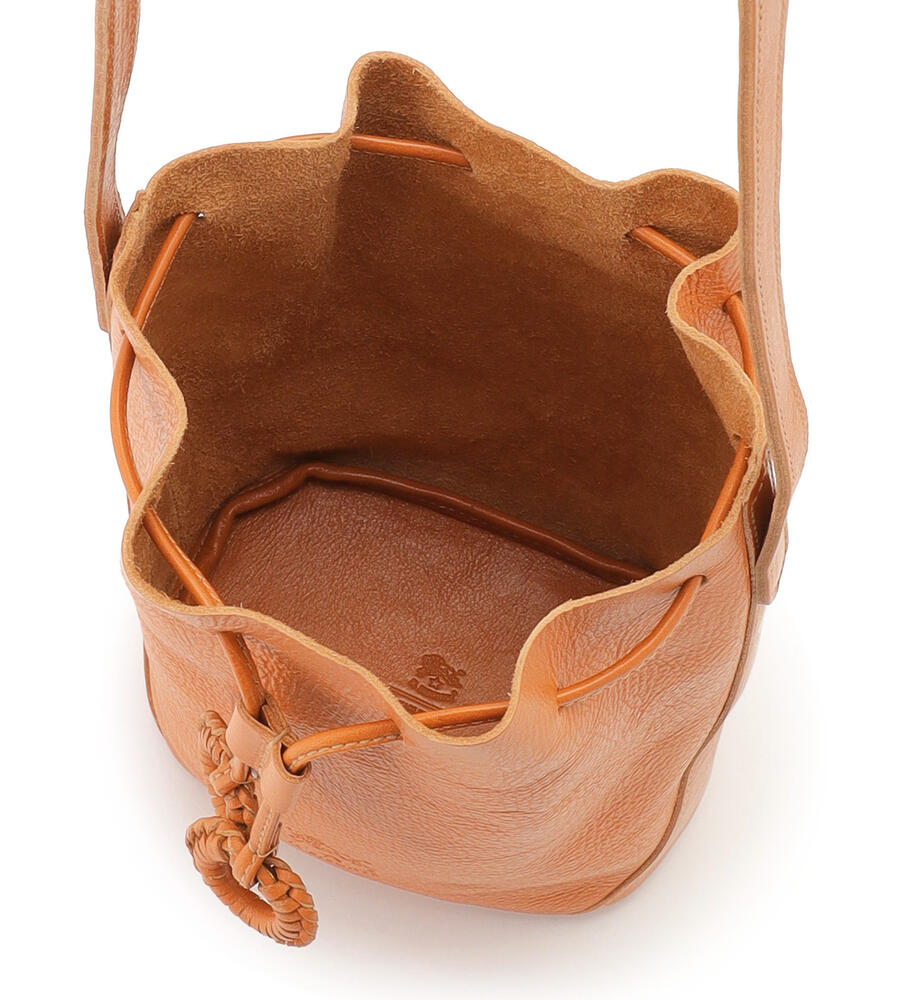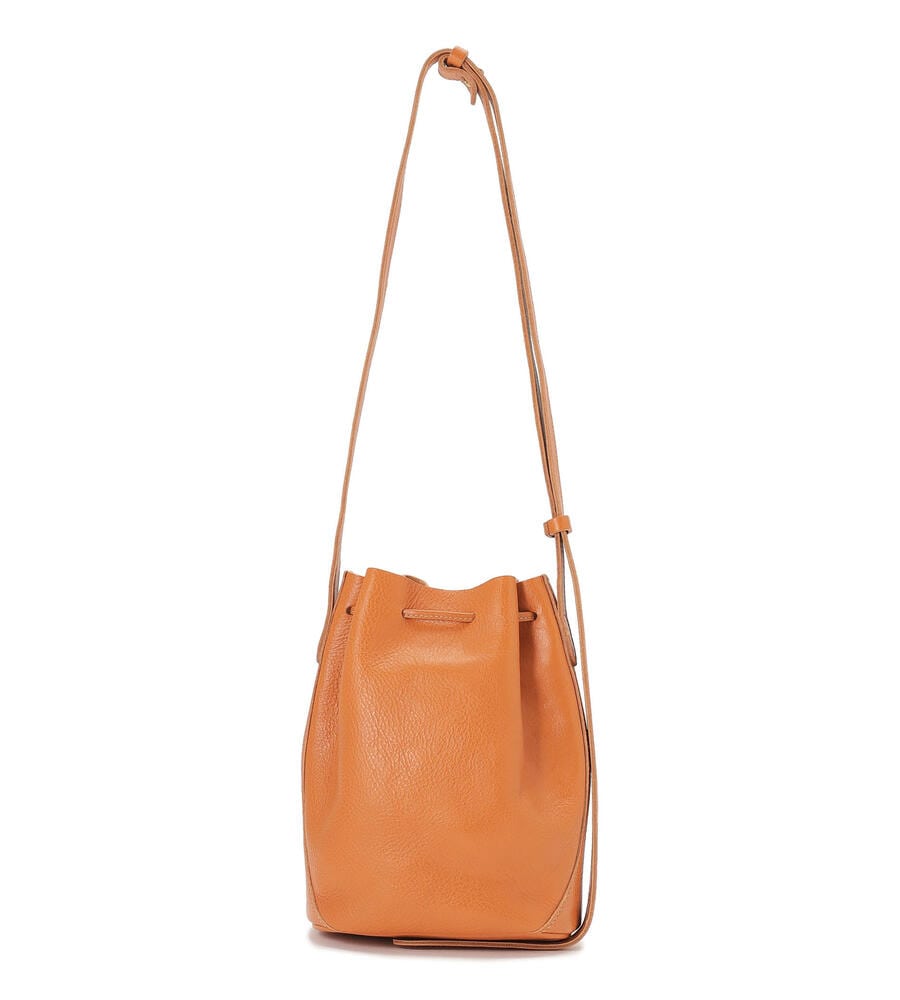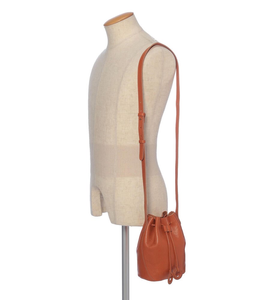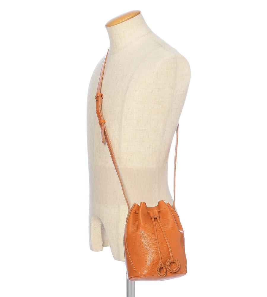 筒状フォルムが目を引く、ショルダーバッグ。巾着仕様の個性的なフォルムでありながら、全体のカラーを統一することで洗練された雰囲気に仕上げました。ドローコードの先にはリングモチーフをあしらい、遊び心をプラスしました。