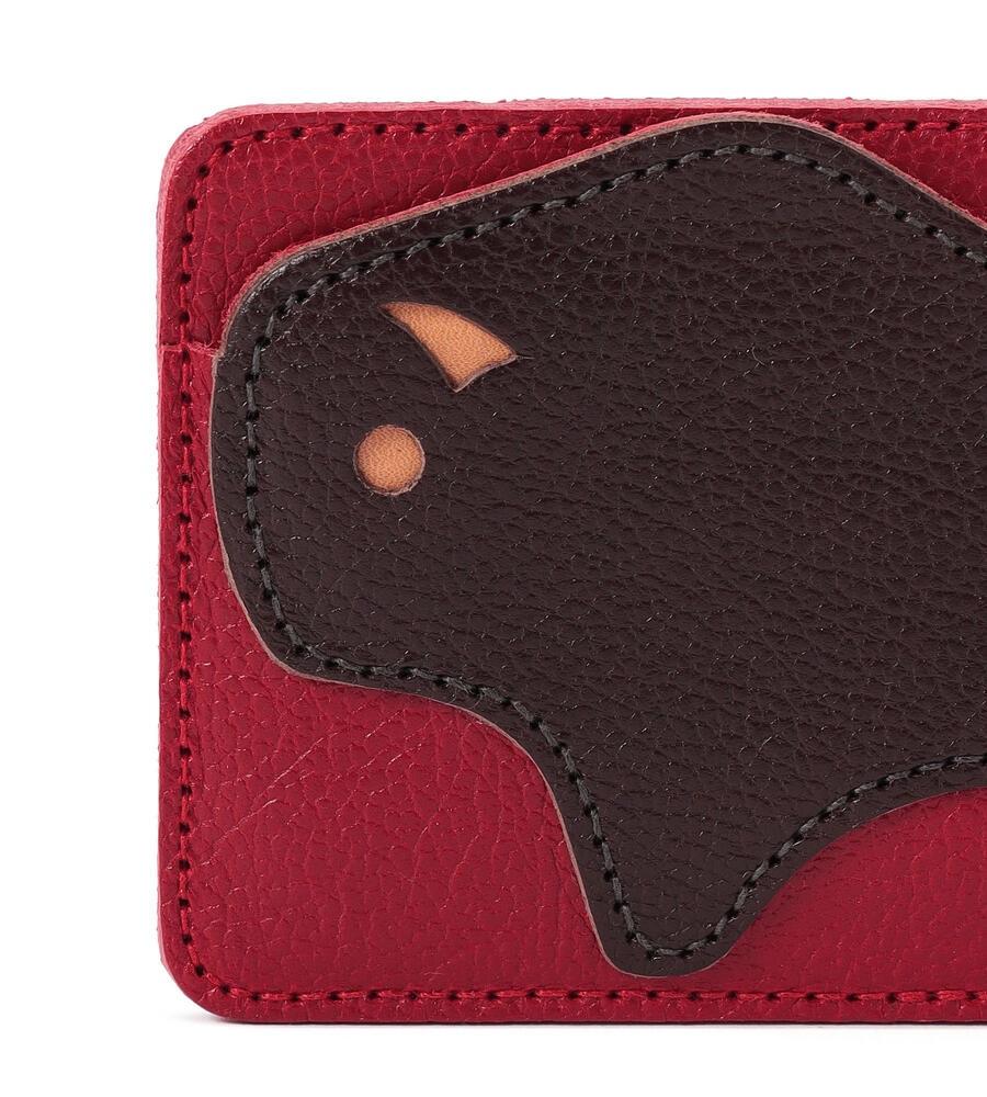デフォルメされたバッファローが、可愛らしくも遊び心あふれるアイコンになったカードケース。ボトムのポケットにも収まるスリム設計で、日常での持ち歩きが可能です。ICカードや名刺など、用途に合わせてお使いいただけます。
